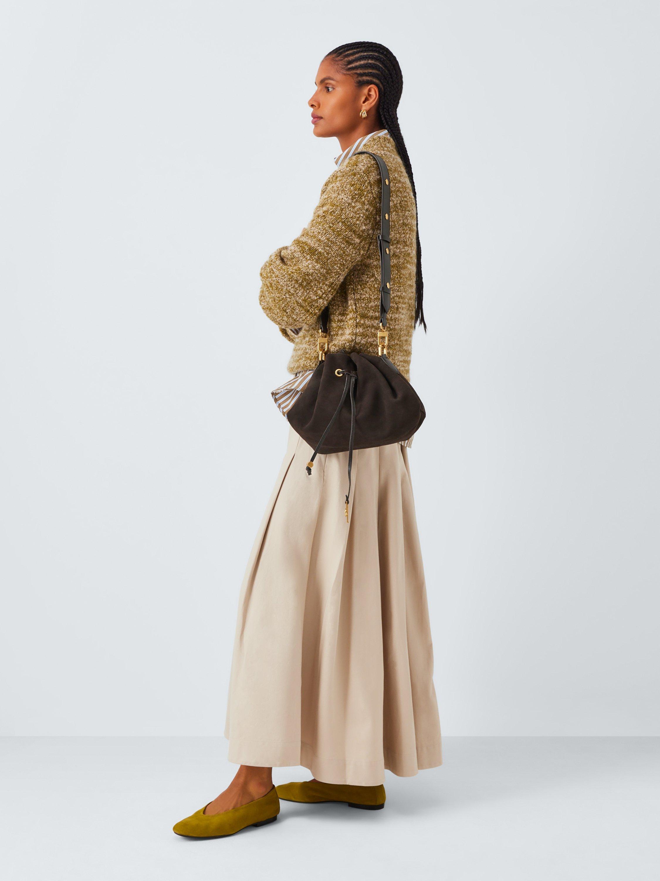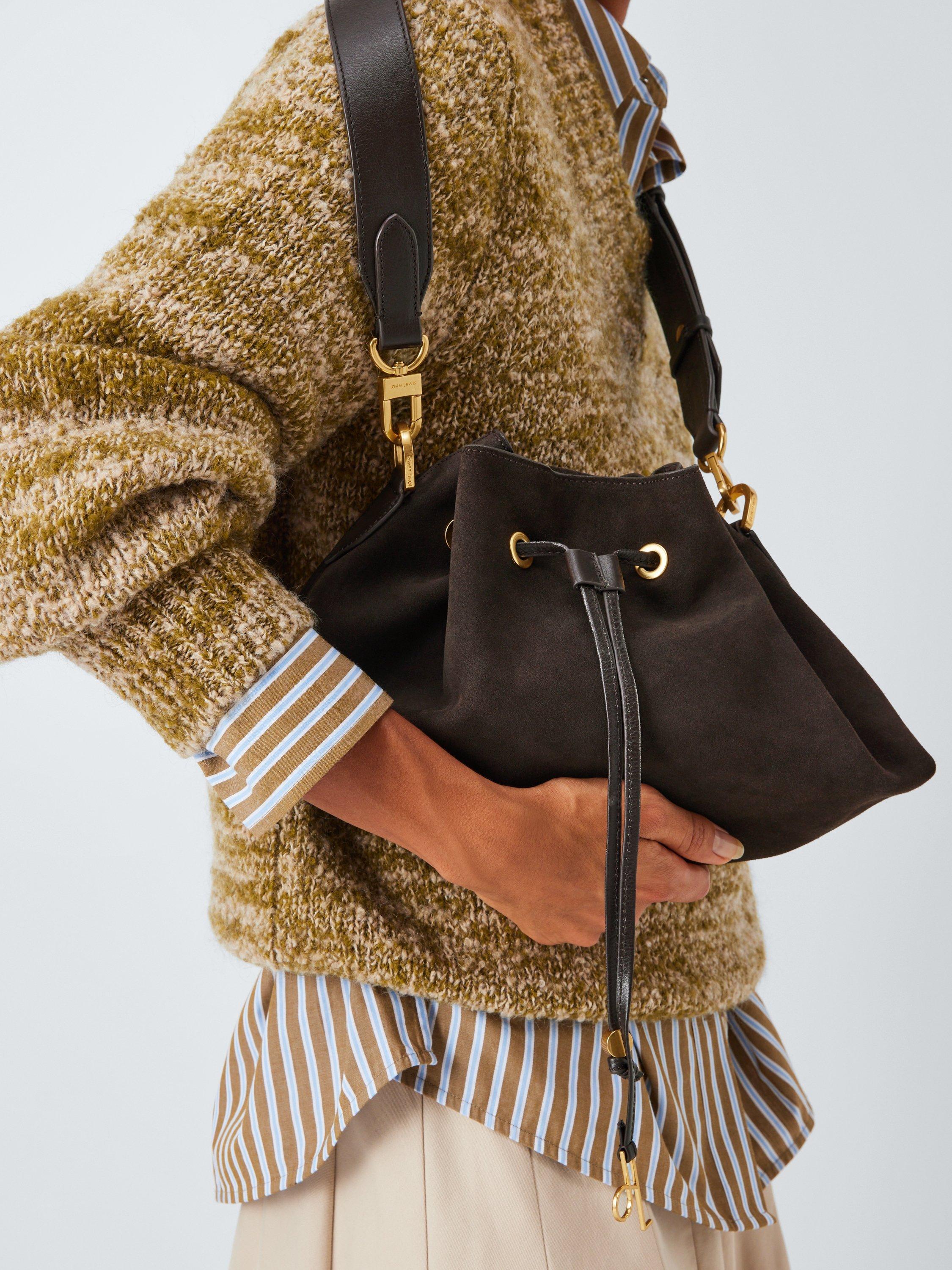 John LewisSuede Medium Drawstring Shoulder Bag, Brown