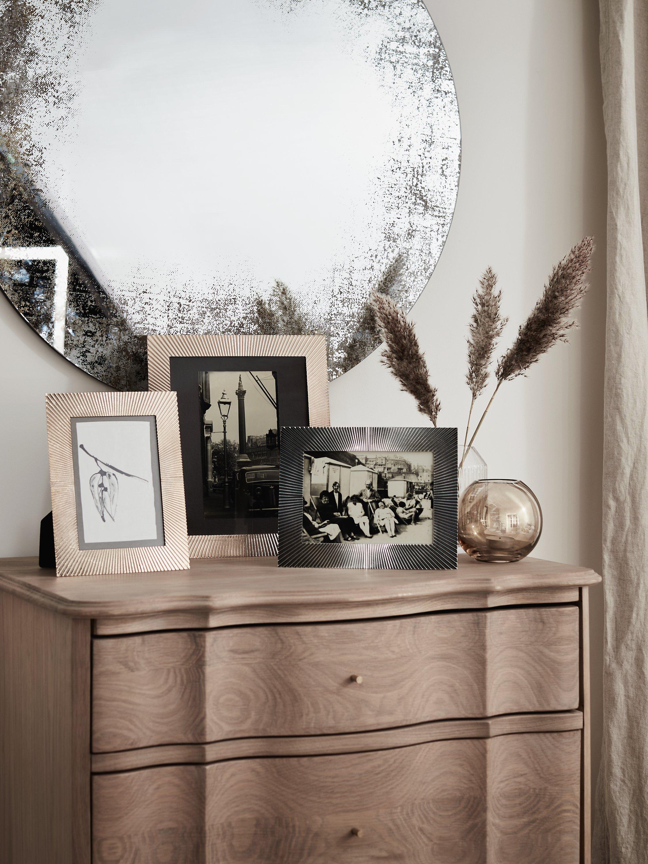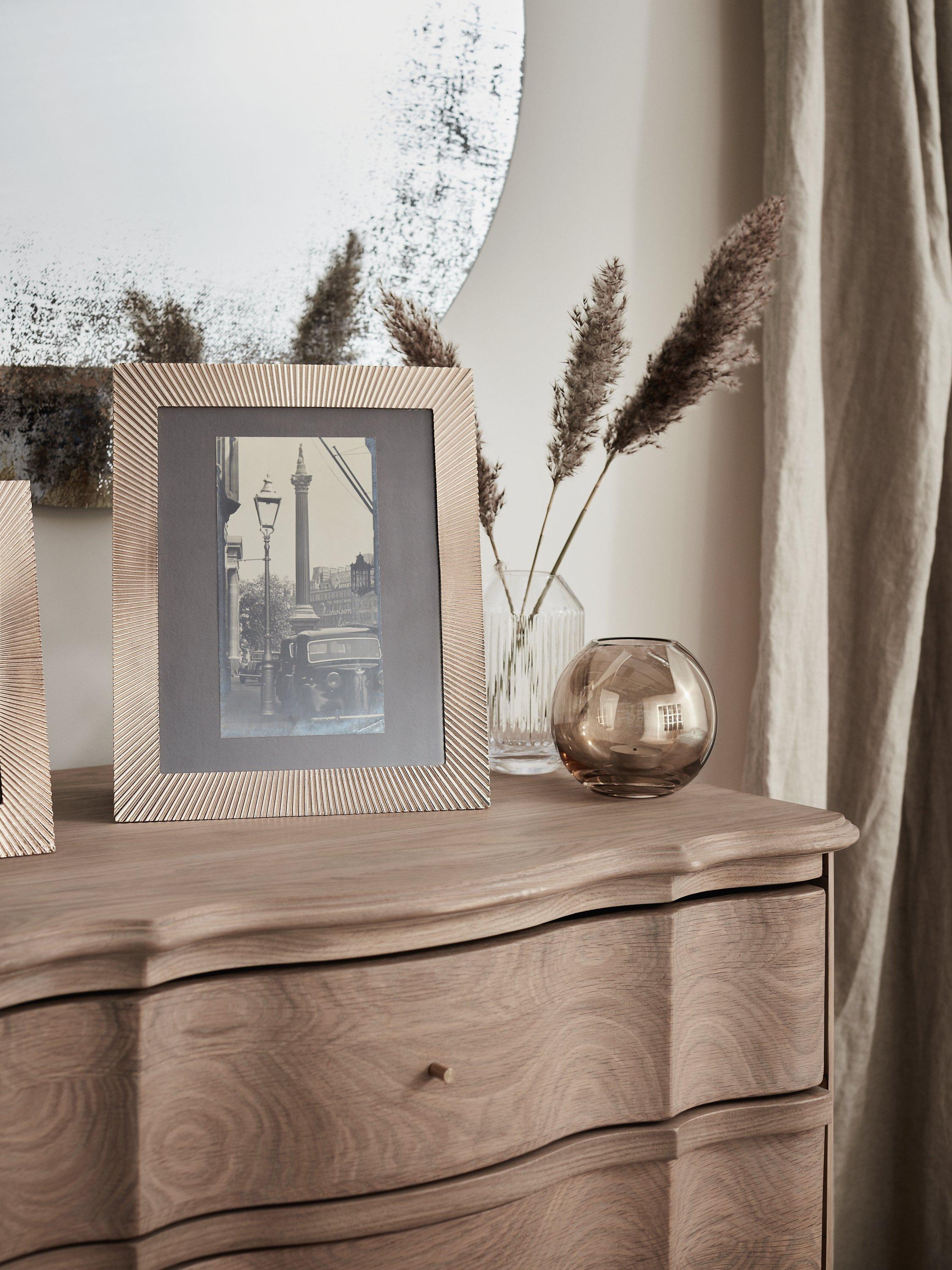 Glistening and contemporary, our sunbeam photo frame is made of metal and inspired by rays of light. Made with a soft velvet backing, it can be displayed freestanding, vertically or horizontally.