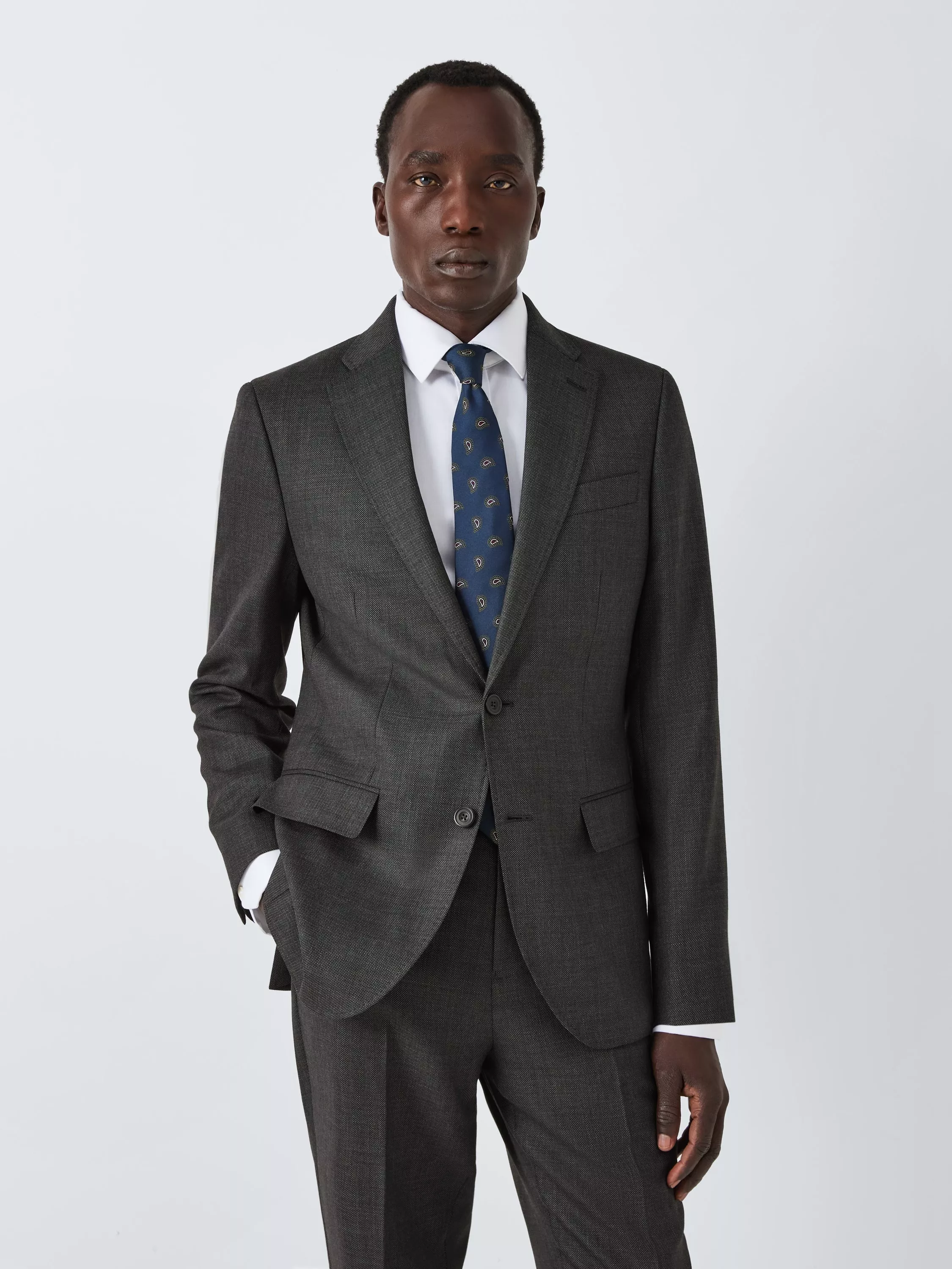 Woven in premium super 100's wool with a modern birdseye design, our suit jacket is styled with a notch lapel, flap pockets at the hip and a welt pocket at the chest.