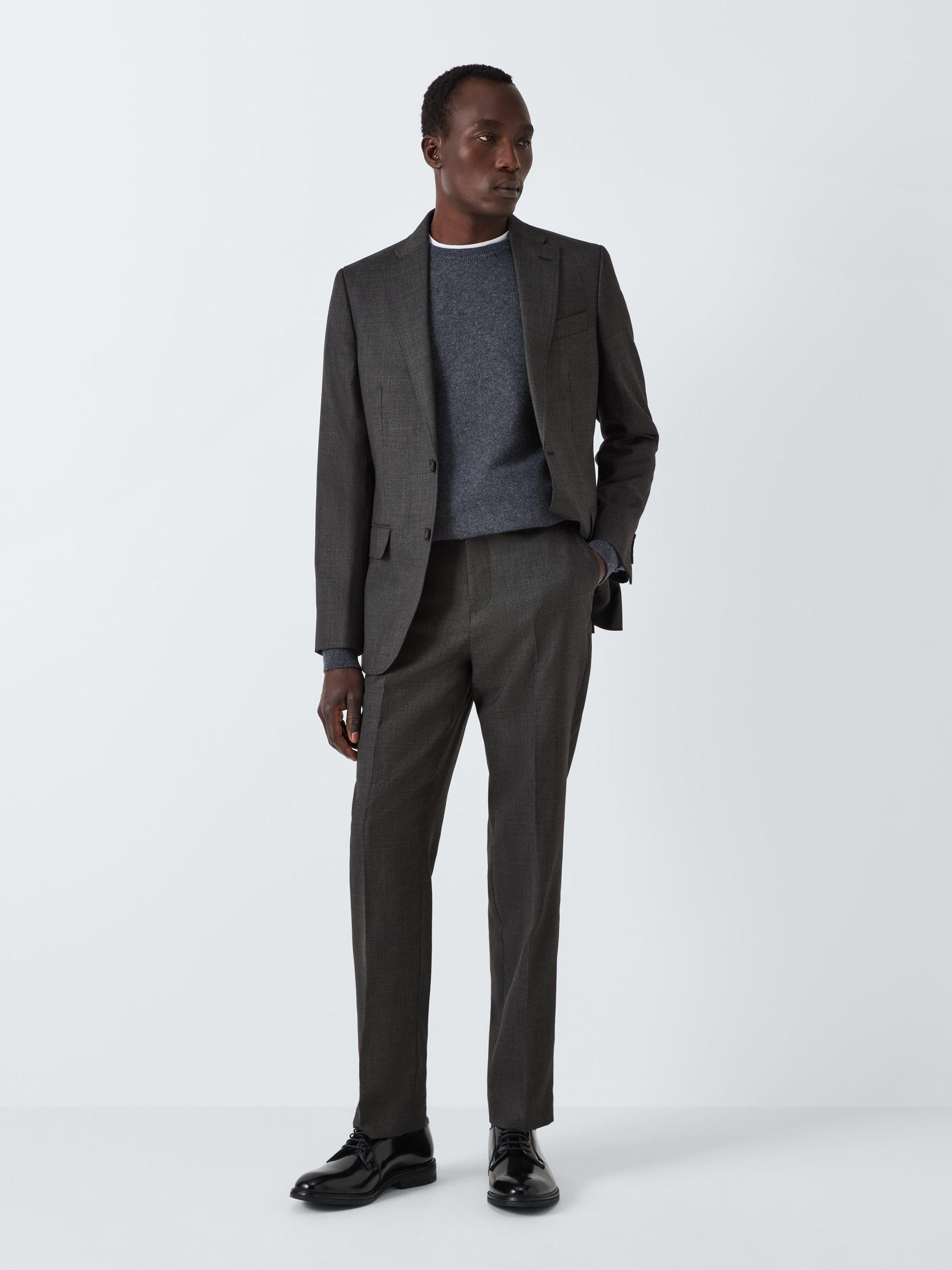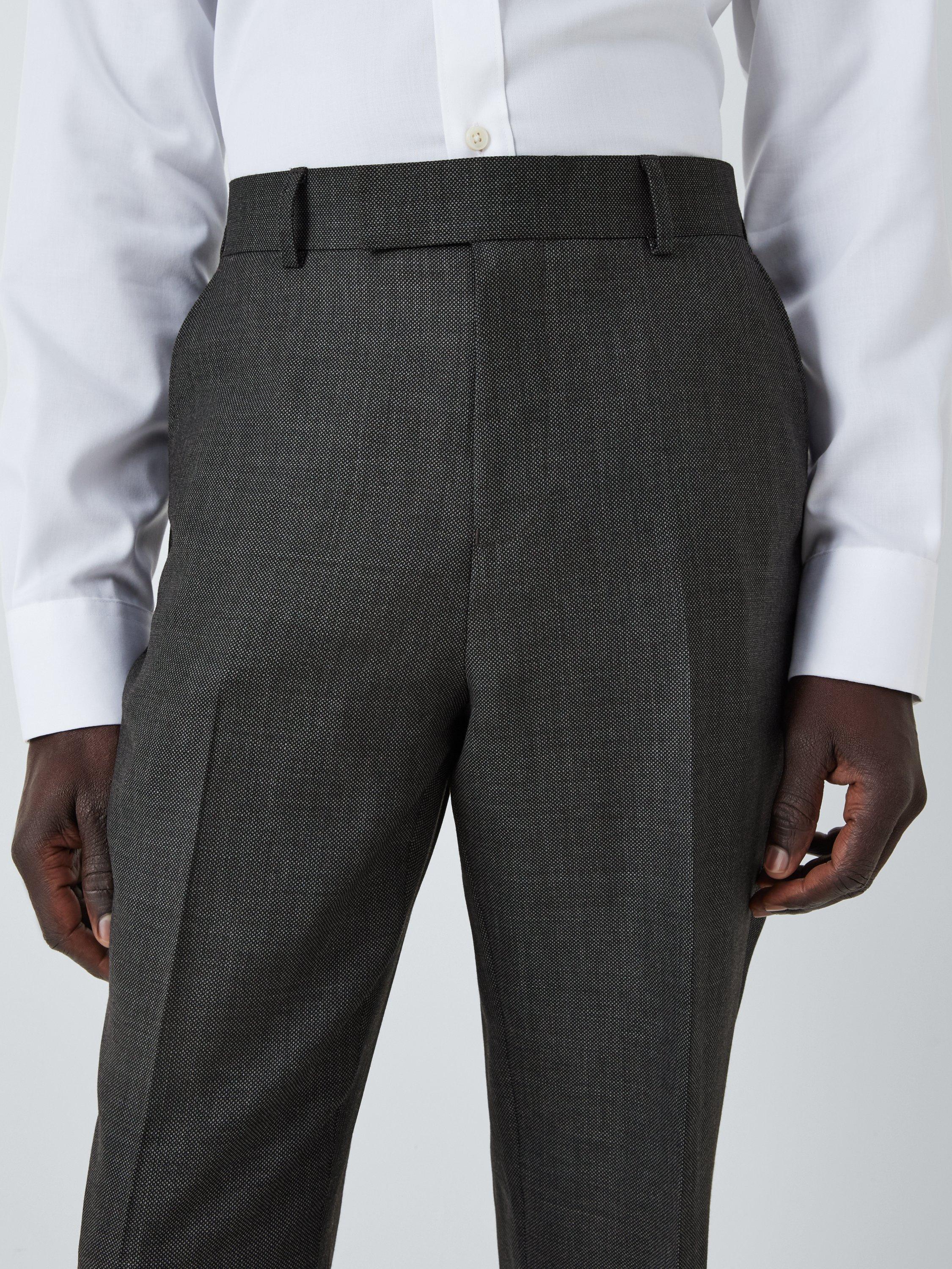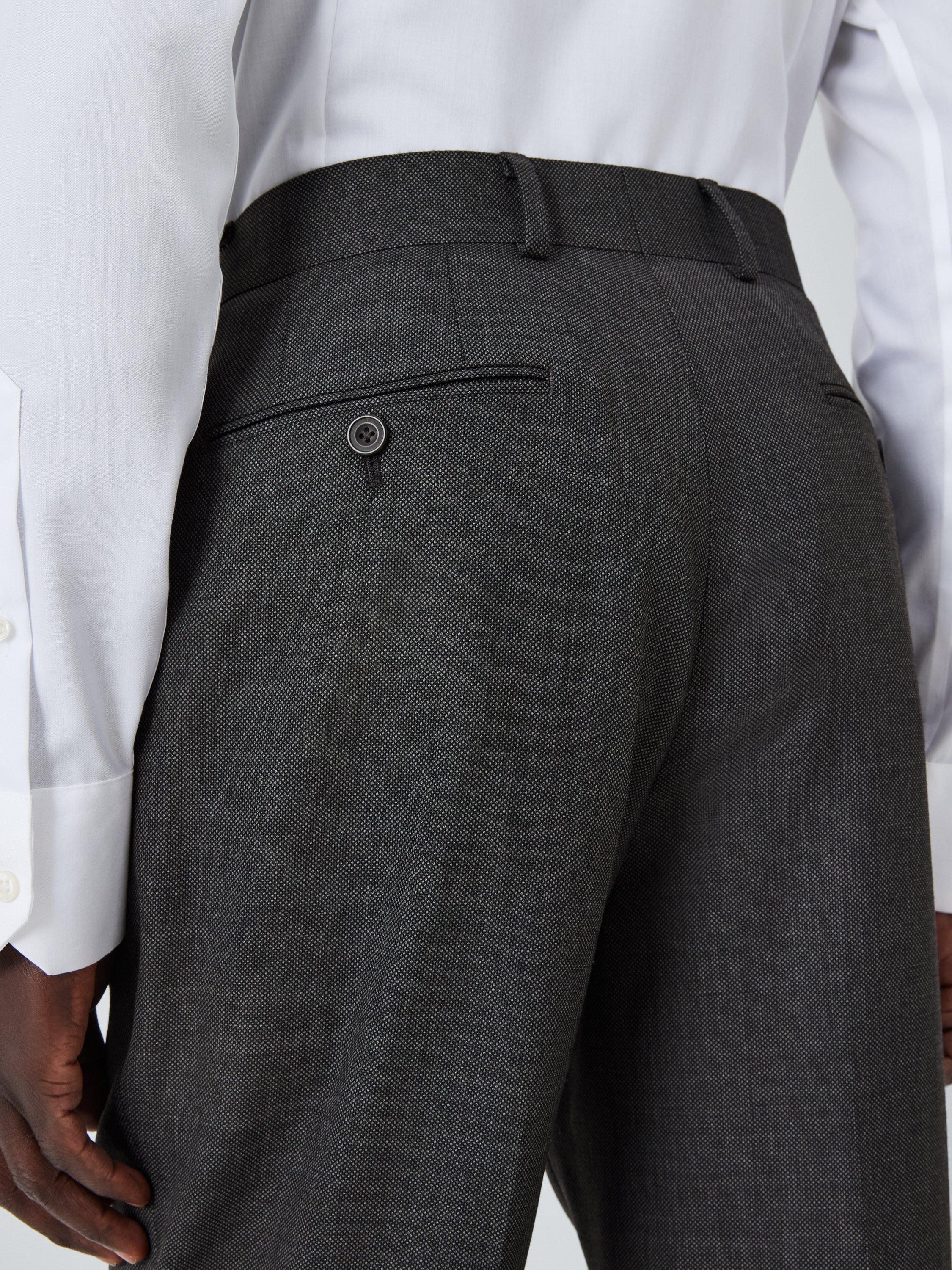 Woven in premium super 100's wool with a modern birdseye design, our suit trouser is tailored to our regular fit specification and features a mid-rise and a straight leg.