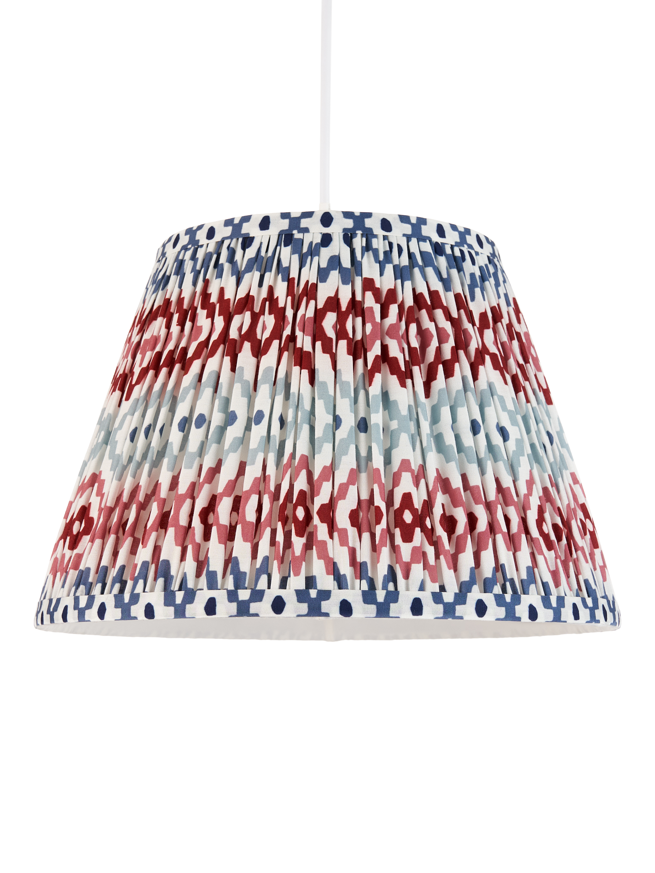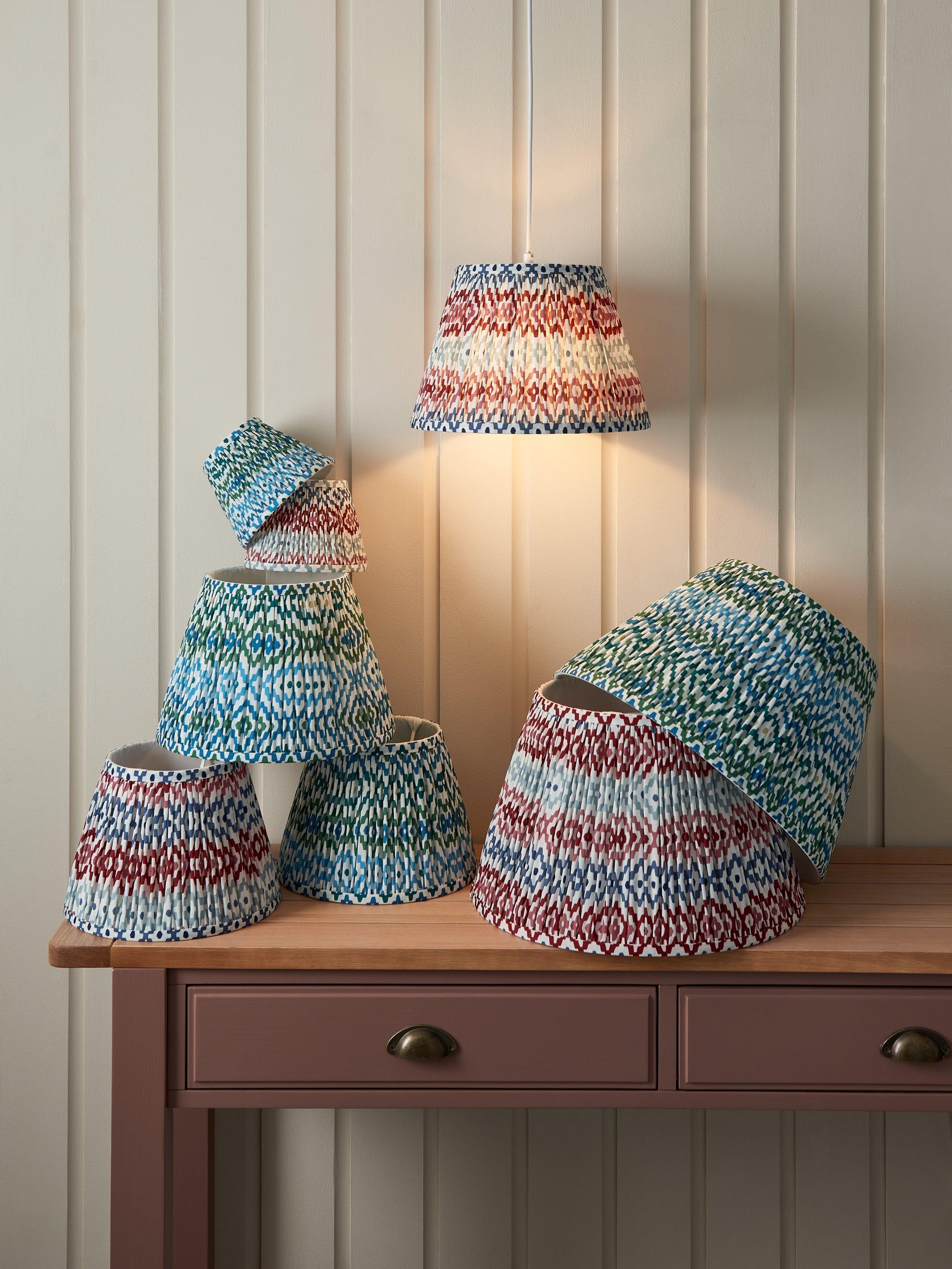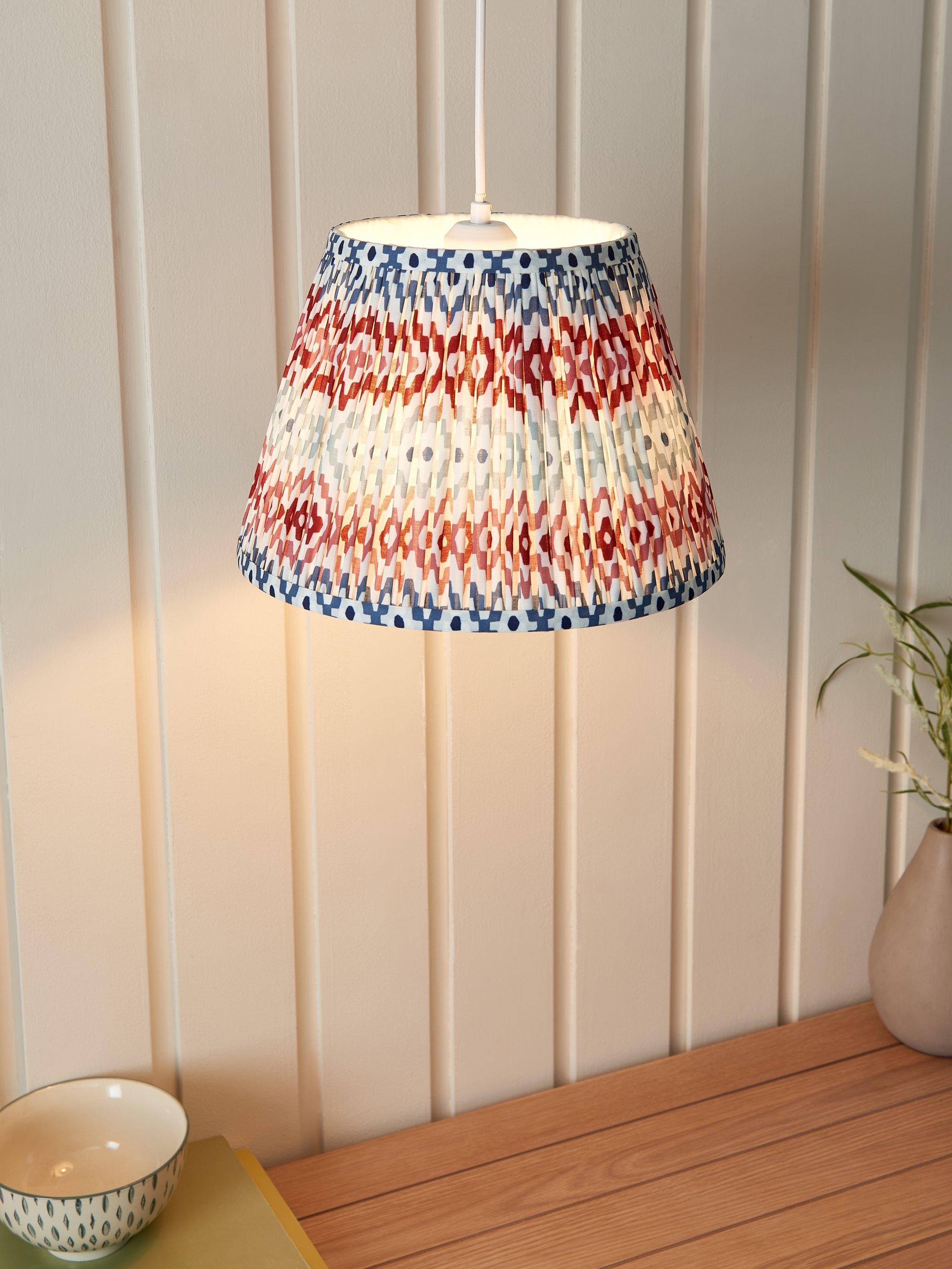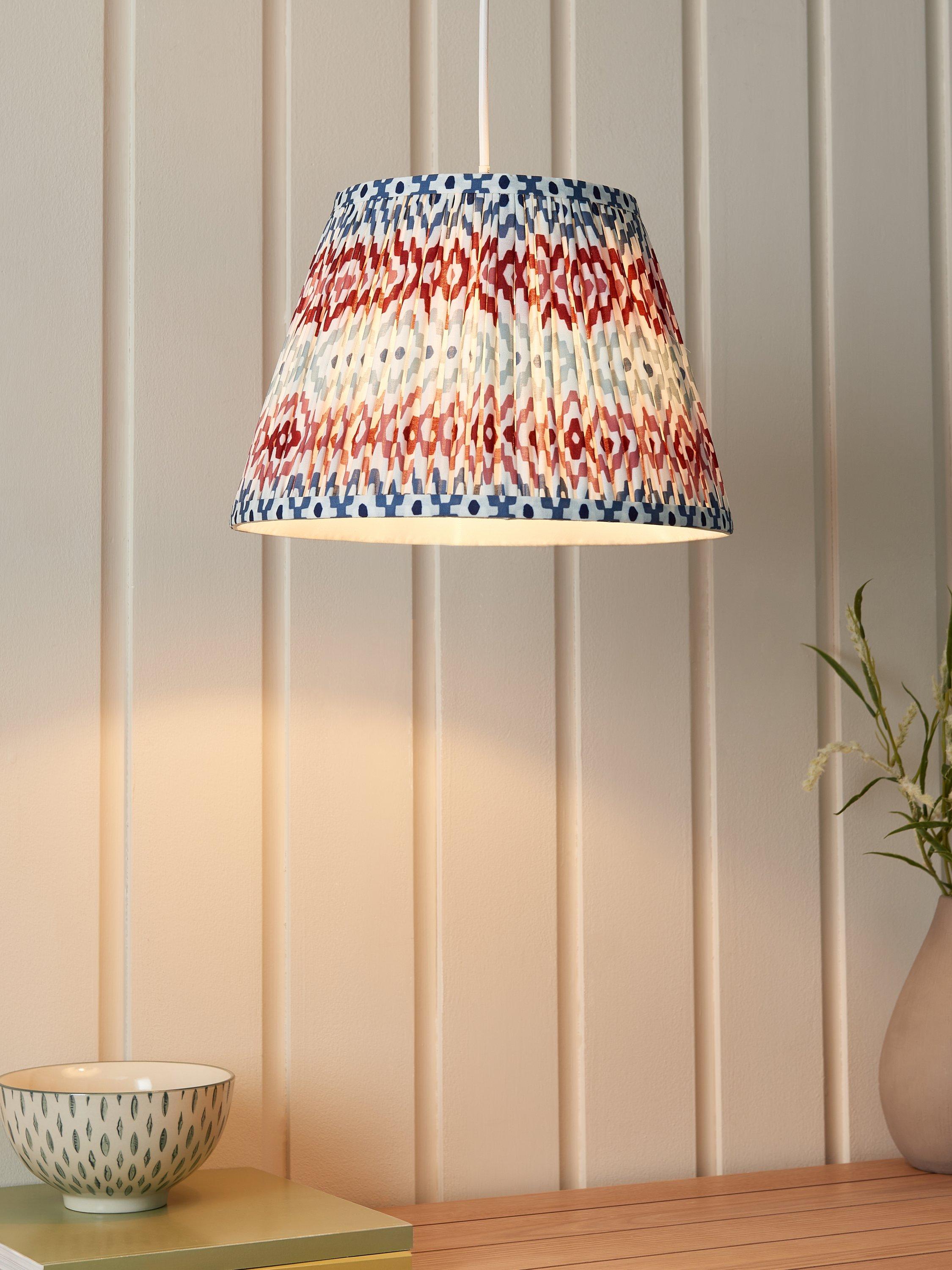 Gathered and pleated, our Suri lampshade adds texture and pattern to your space with its digitally printed geometric design. Made from a faux-silk fabric, the soft texture brings out the pattern when lit.