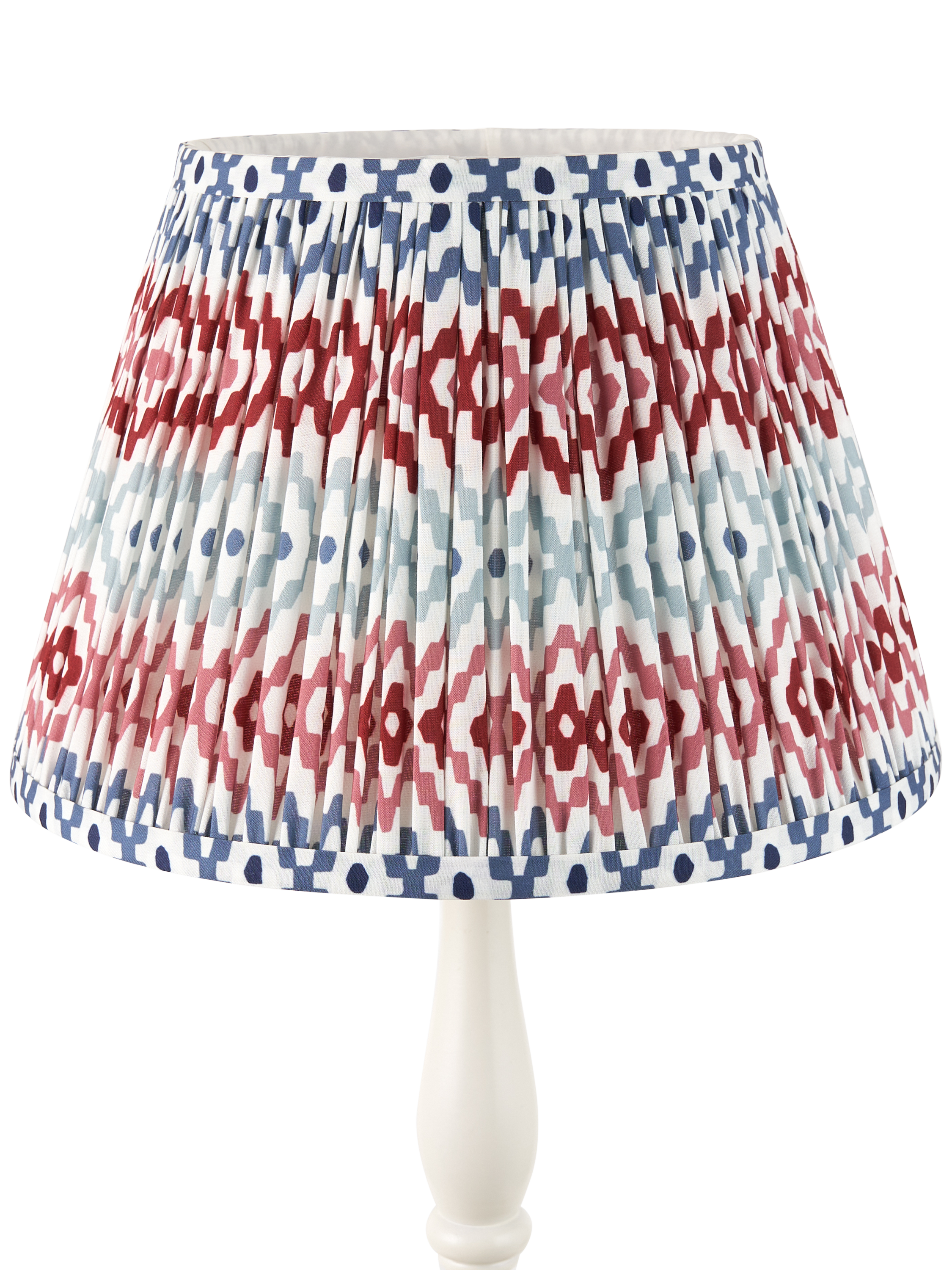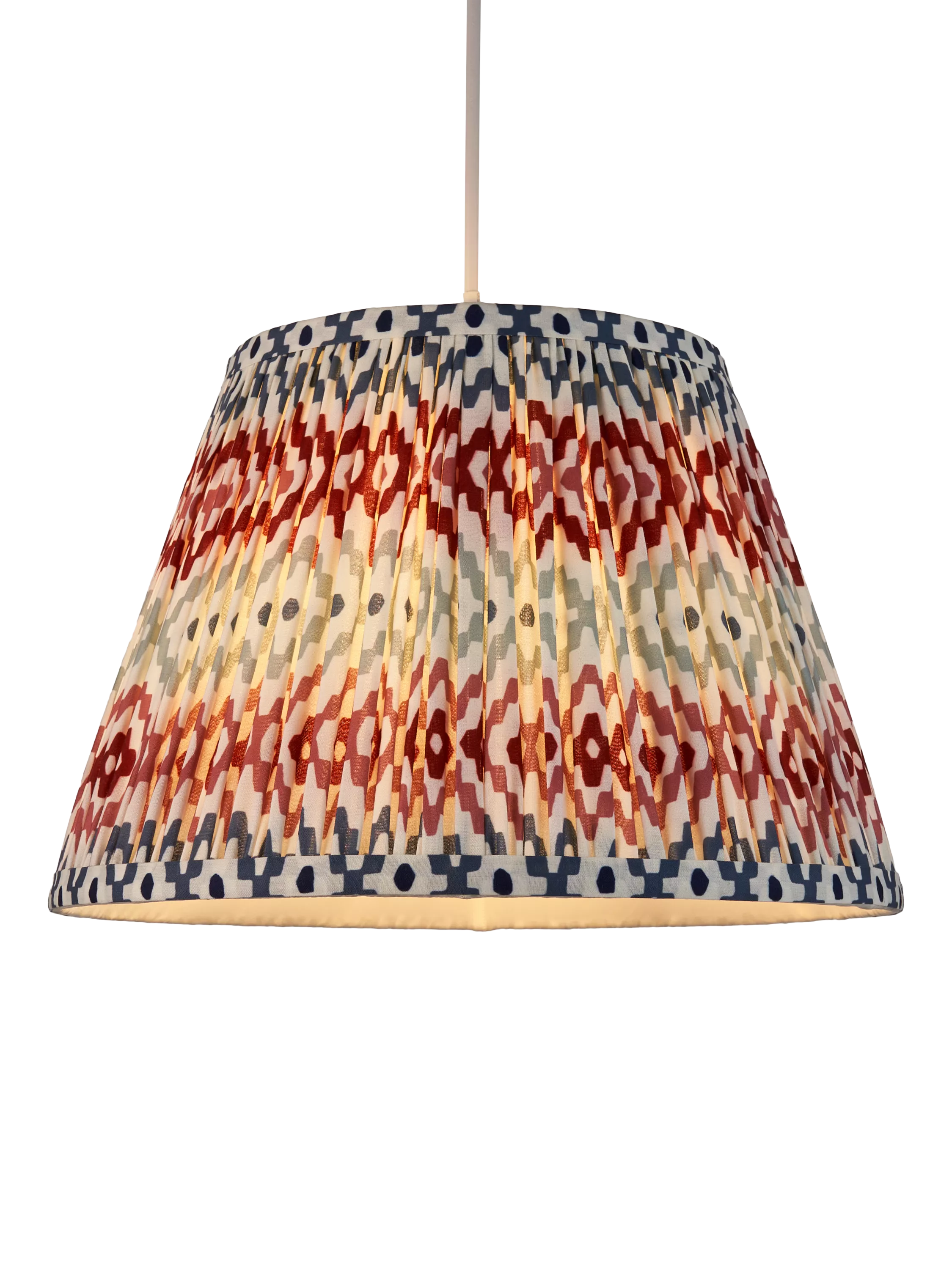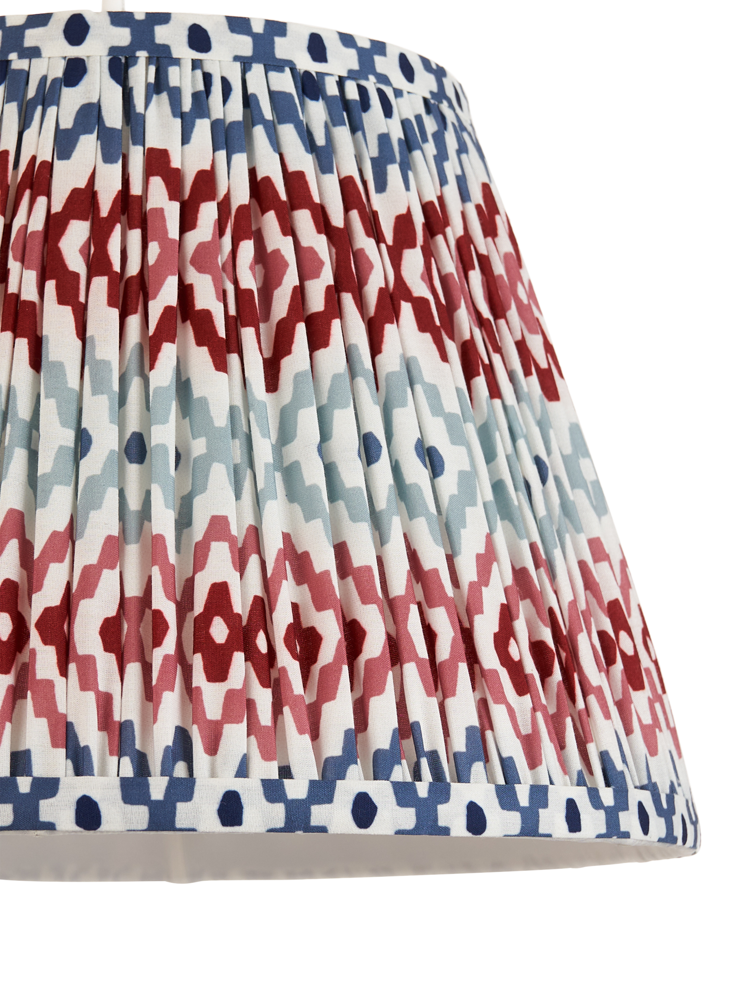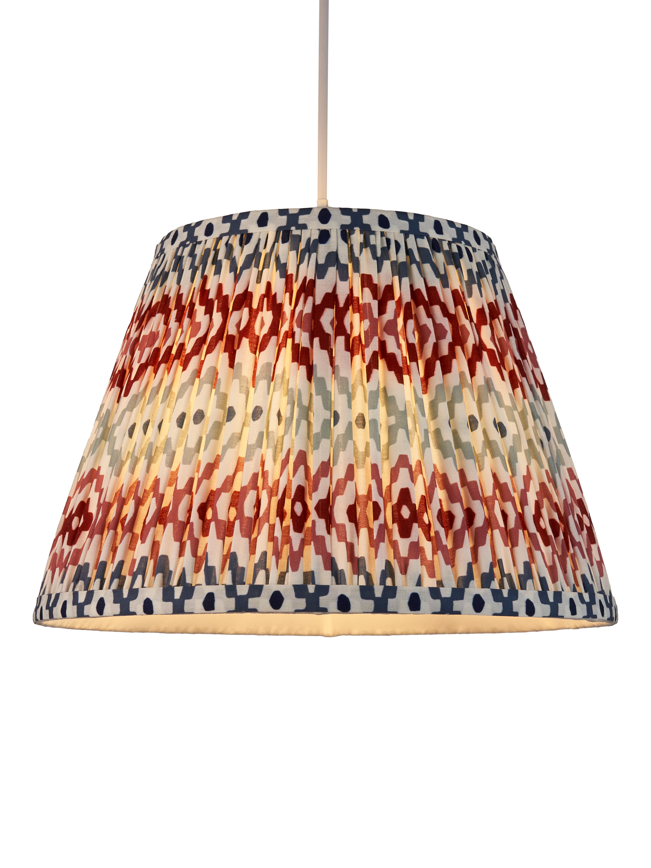 Gathered and pleated, our Suri lampshade adds texture and pattern to your space with its digitally printed geometric design. Made from a faux-silk fabric, the soft texture brings out the pattern when lit.