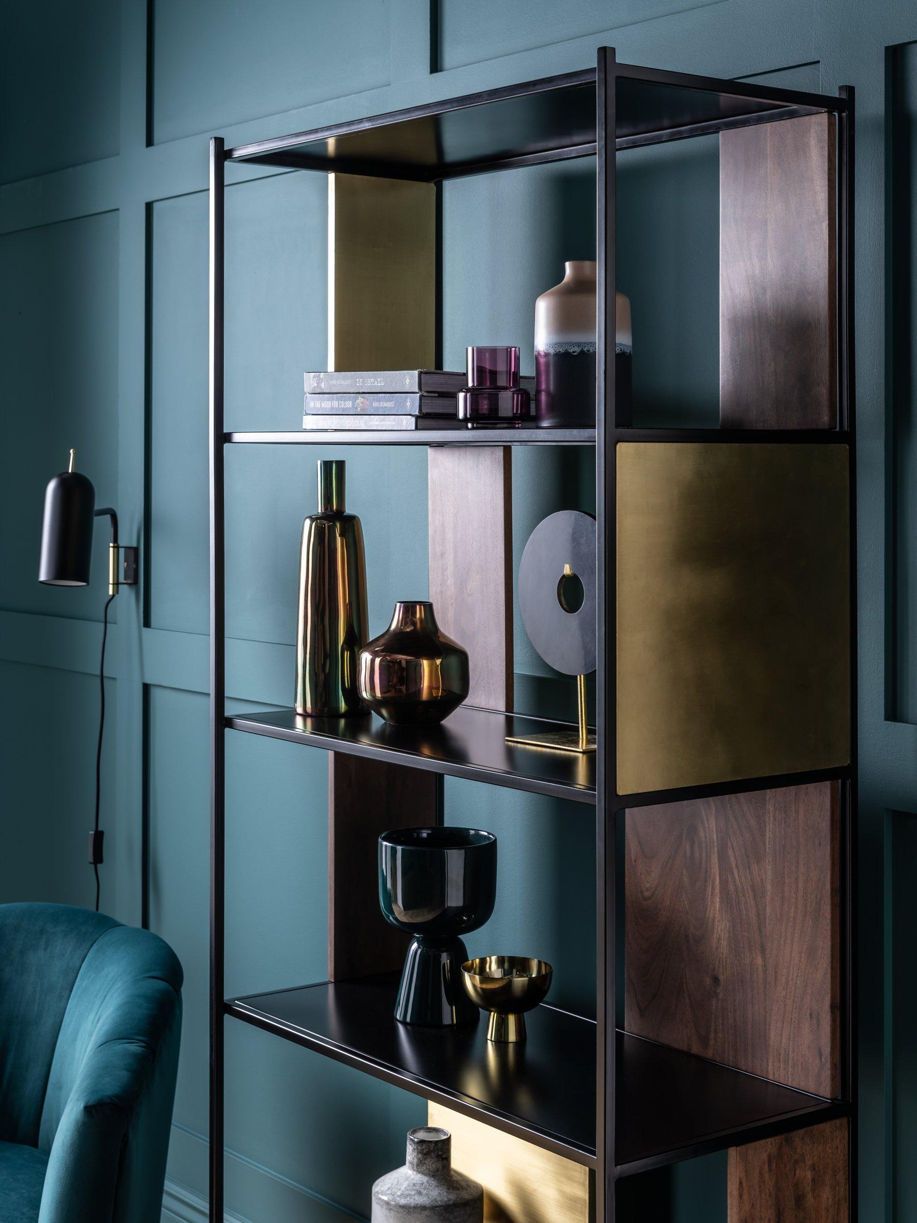 Designed by Swoon, made by us. With a shared commitment to exceptional design and quality, we've collaborated to create an exclusive furniture collection for the modern home. This shelving unit is retro, functional and incredibly robust, perfect for displaying your best books, healthiest house plants and sentimental treasures. Made entirely from metal in a powder-coated finish, each shelf is designed with panel detail or dividers made from brass cladding or acacia walnut, giving the overall frame a unique look. Each shelf can support a maximum load of 25kg.