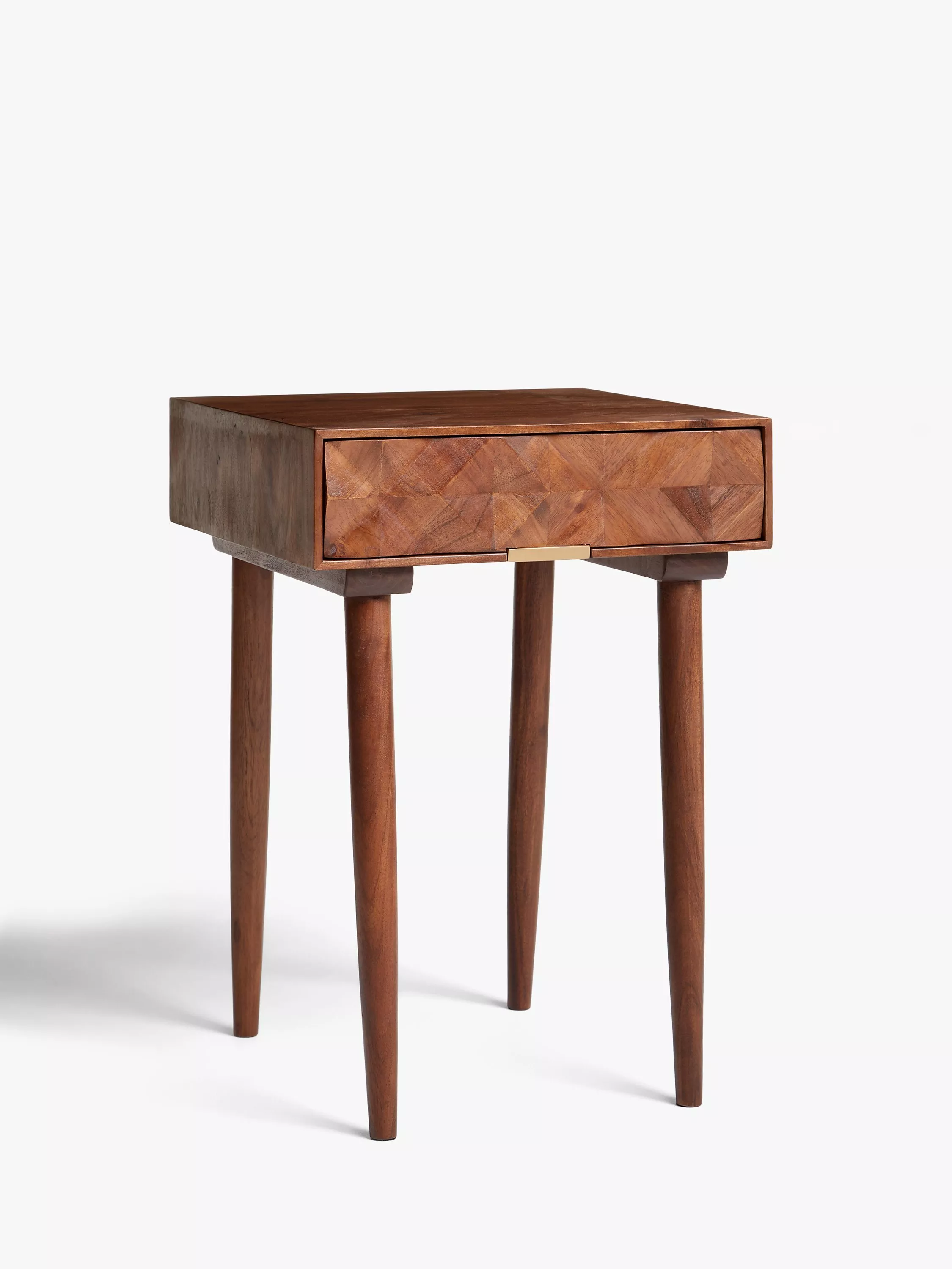 Designed by Swoon, made by us. With a shared commitment to exceptional design and quality, we've collaborated to create an exclusive furniture collection for the modern home. The Franklin side table uses marquetry techniques to create a tactile, geometric facade. Crafted from wood that's been cut at angles and then reassembled, it plays with light and shadows in a tessellated design that highlights the variety of its natural wood grains.