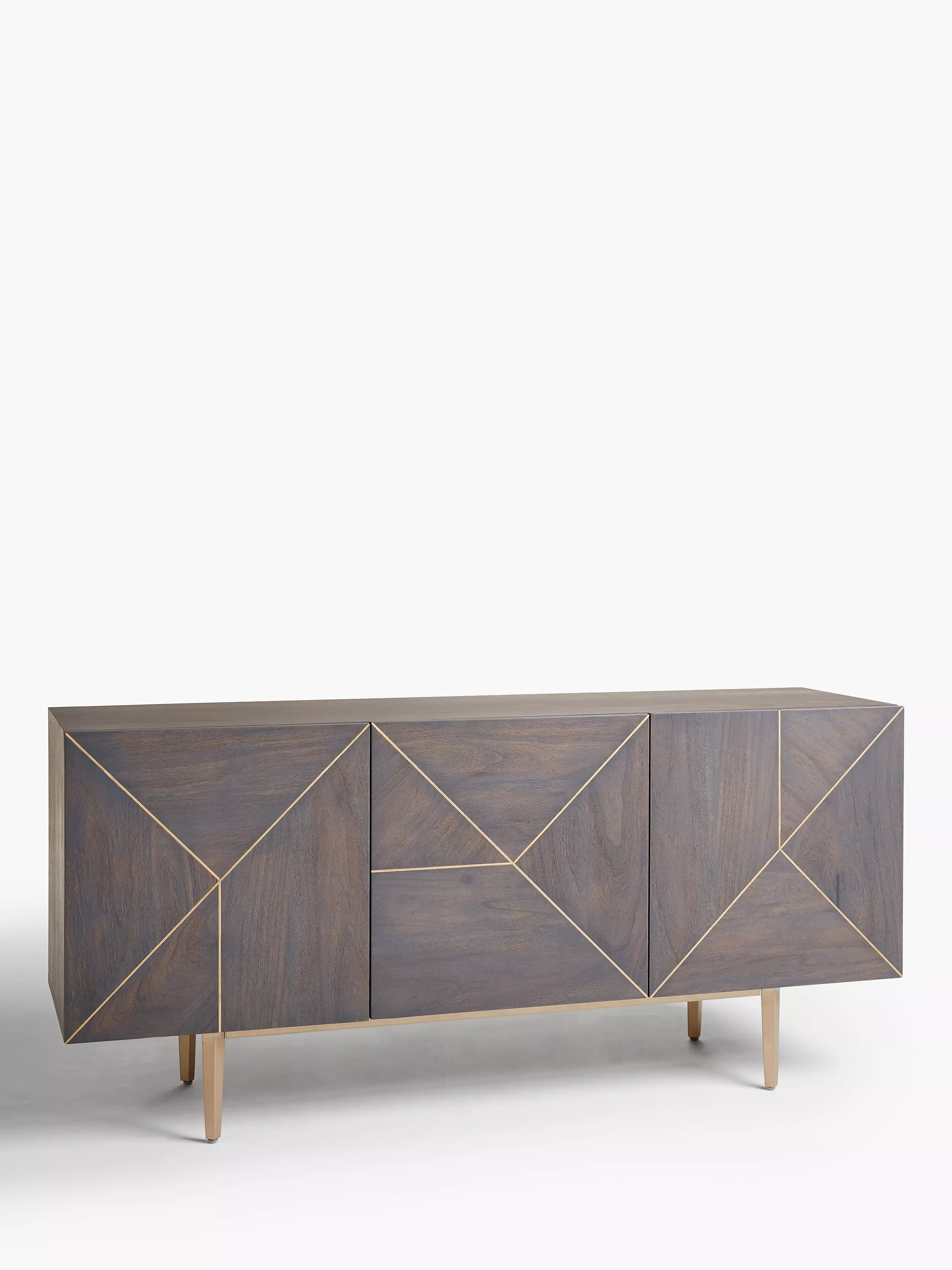 Designed by Swoon, made by us. With a shared commitment to exceptional design and quality, we've collaborated to create an exclusive furniture collection for the modern home. The Mendel sideboard marries an impressive wood construction with subtle highlights of Art Deco-inspired design. An offset grain direction emphasises the natural beauty of its acacia wood and veneer profile, that's accented with sleek, geometric inlaid lines of brass.