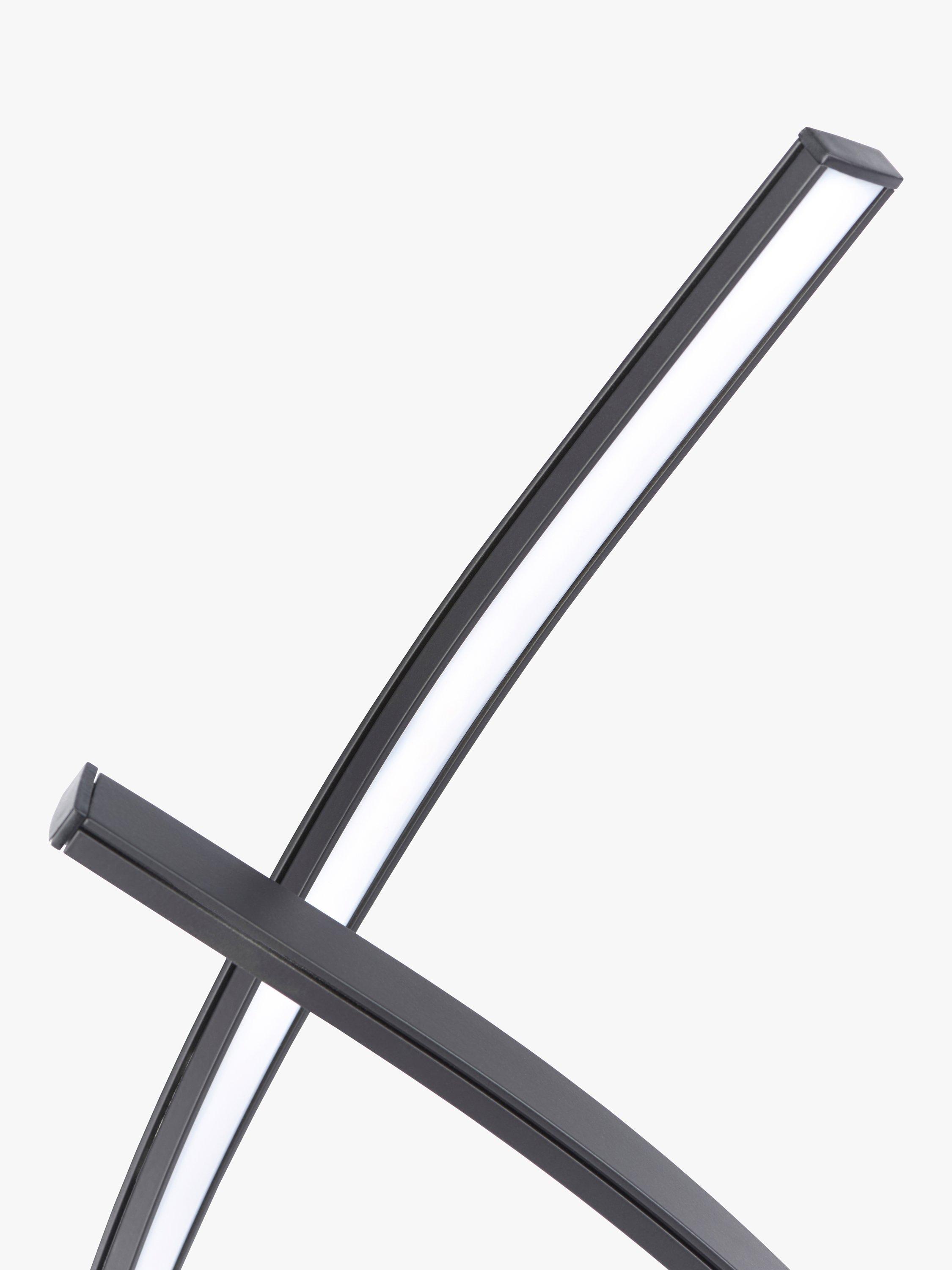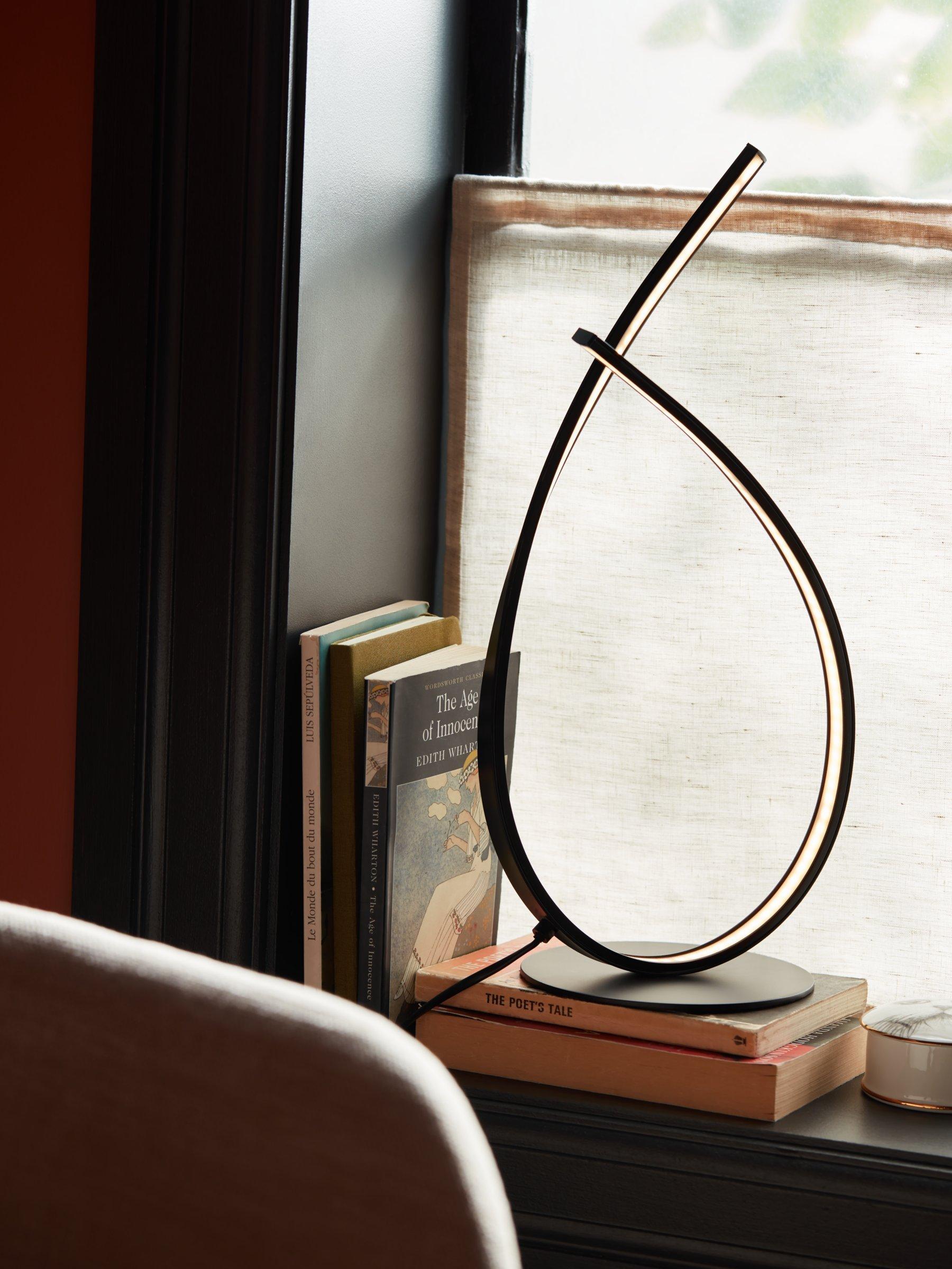 With a lovely sculptural silhouette shape, the Swoop LED table lamp is painted black with a white diffuser. It is compact and energy saving and will make a great addition to a modern interior.