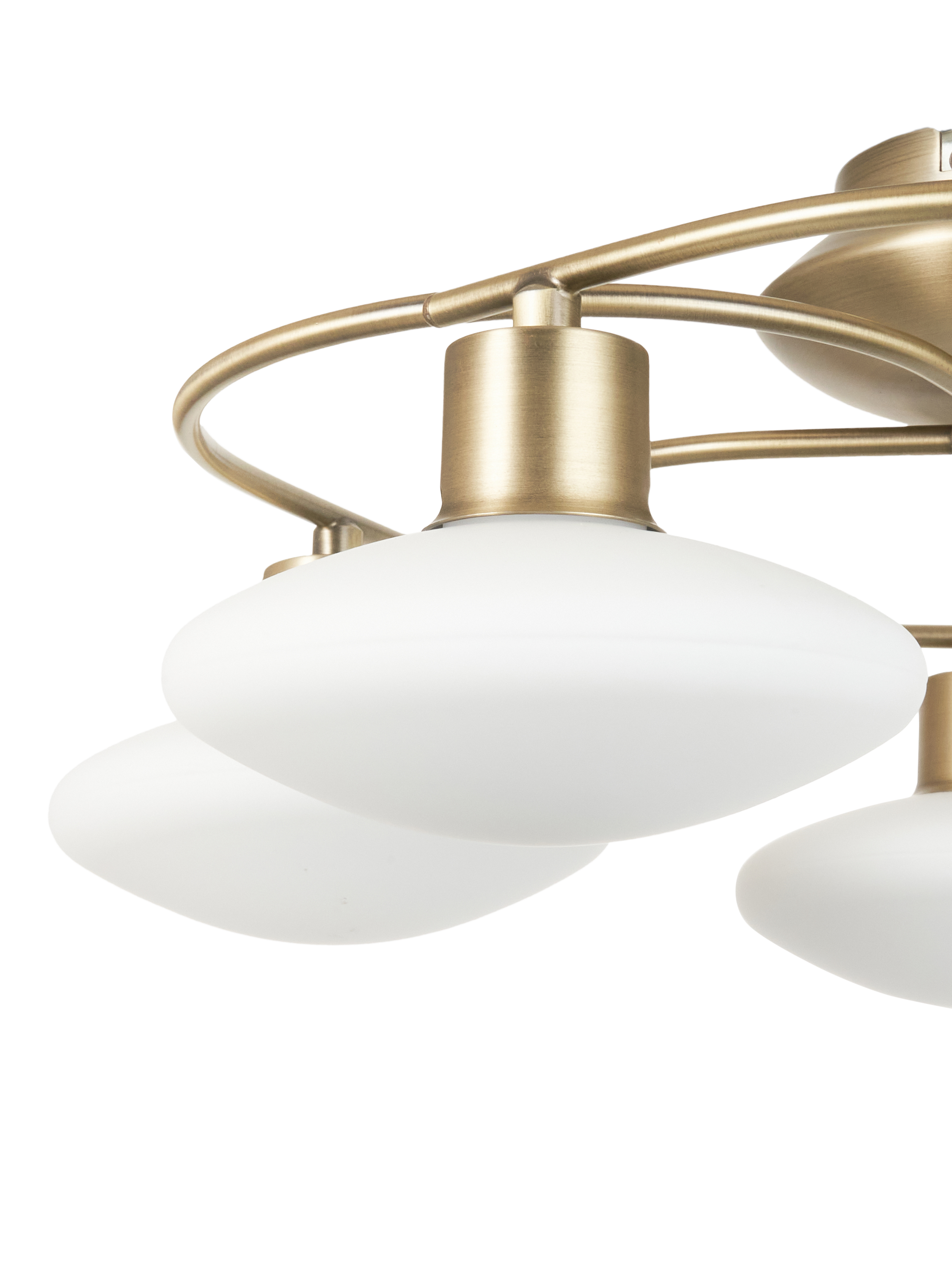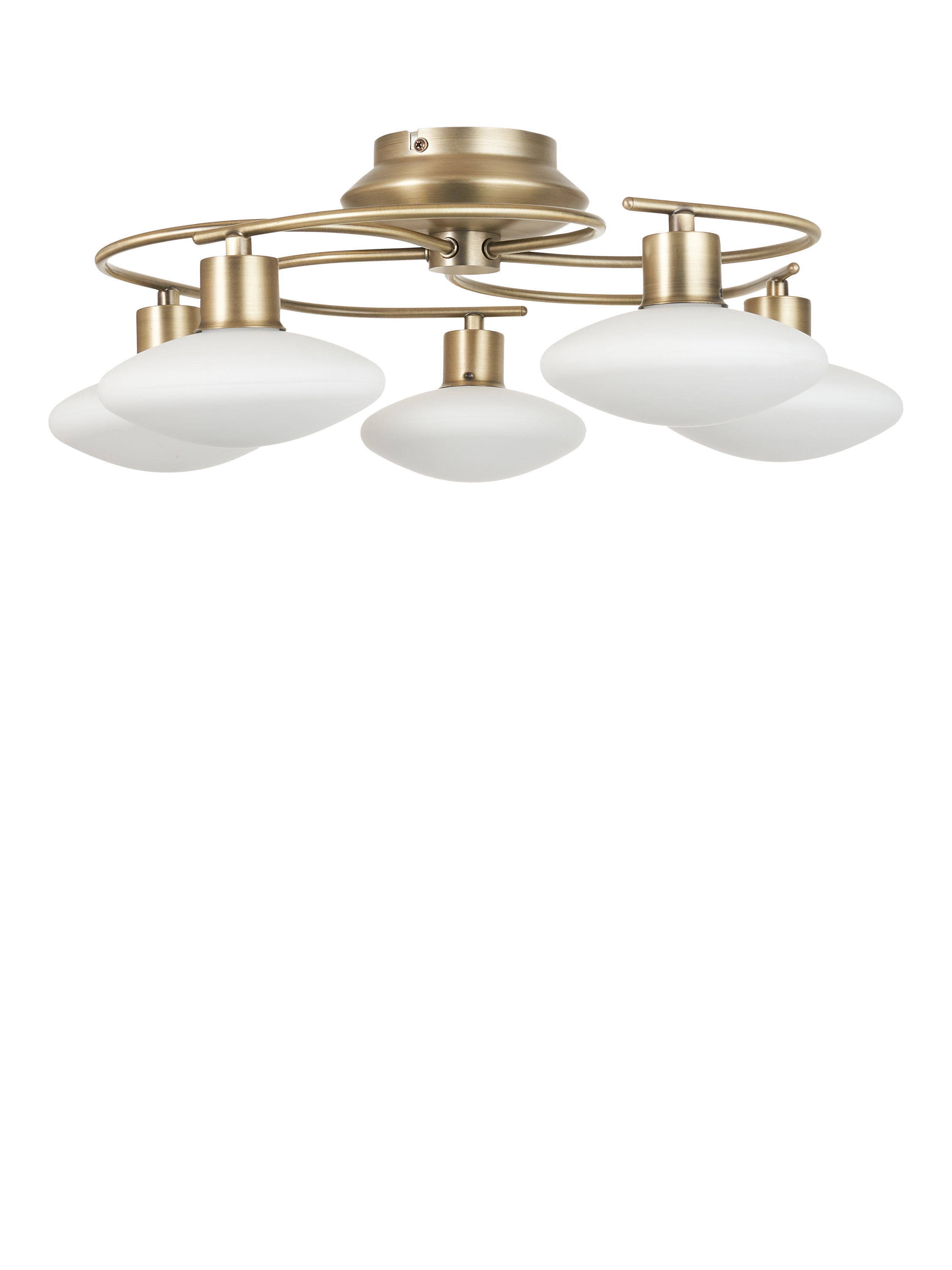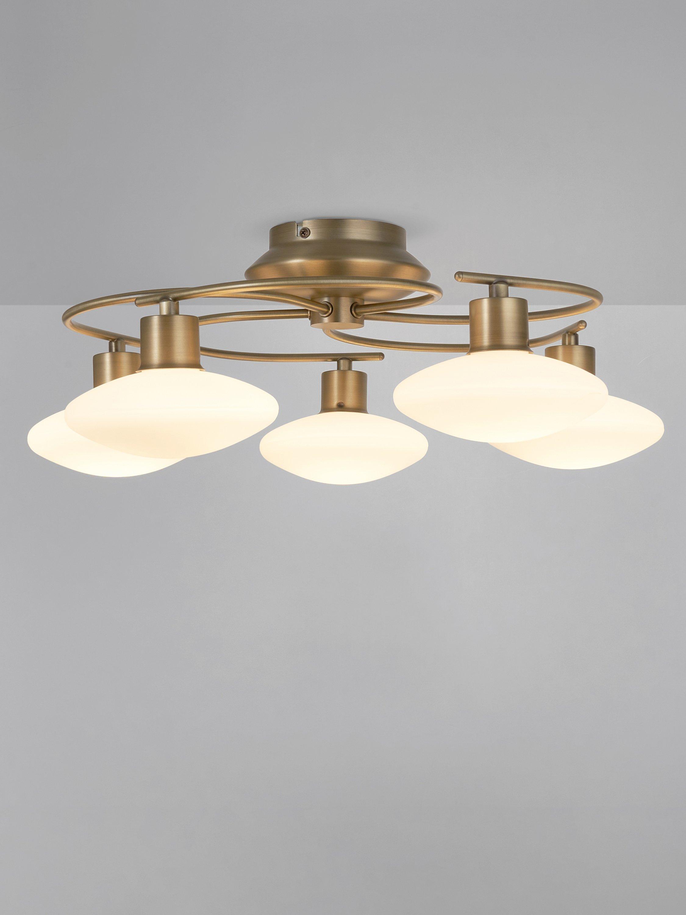 Thoroughly modern, our Tameo flush ceiling light features five swirling arms in a contemporary metallic finish. Each arm is completed with an opal glass disc-shaped shade. Fitted with LED bulbs, this light offers low maintenance costs, a cool running temperature with low energy consumption and a high light output.