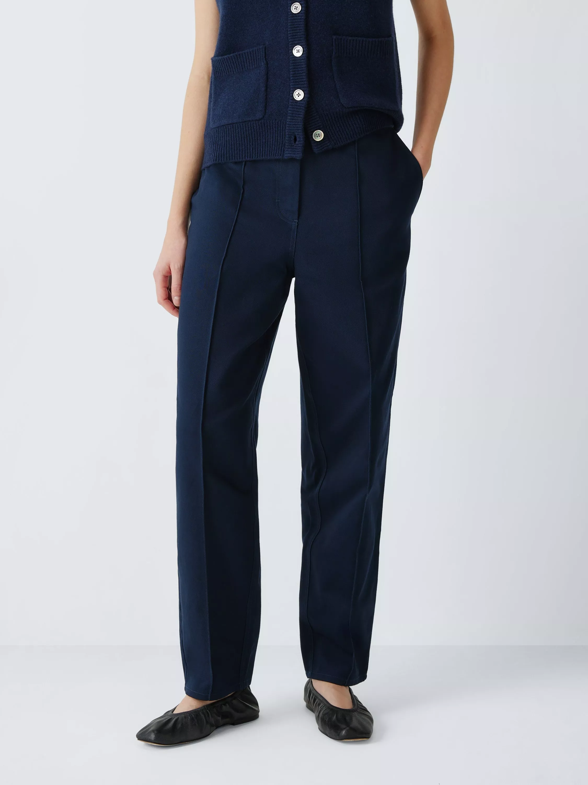 Tapered-leg trousers made of a hard-wearing twill weave fabric from cotton with a touch of stretch for comfortable wear. A reverse seam detail down the leg adds a modern twist.