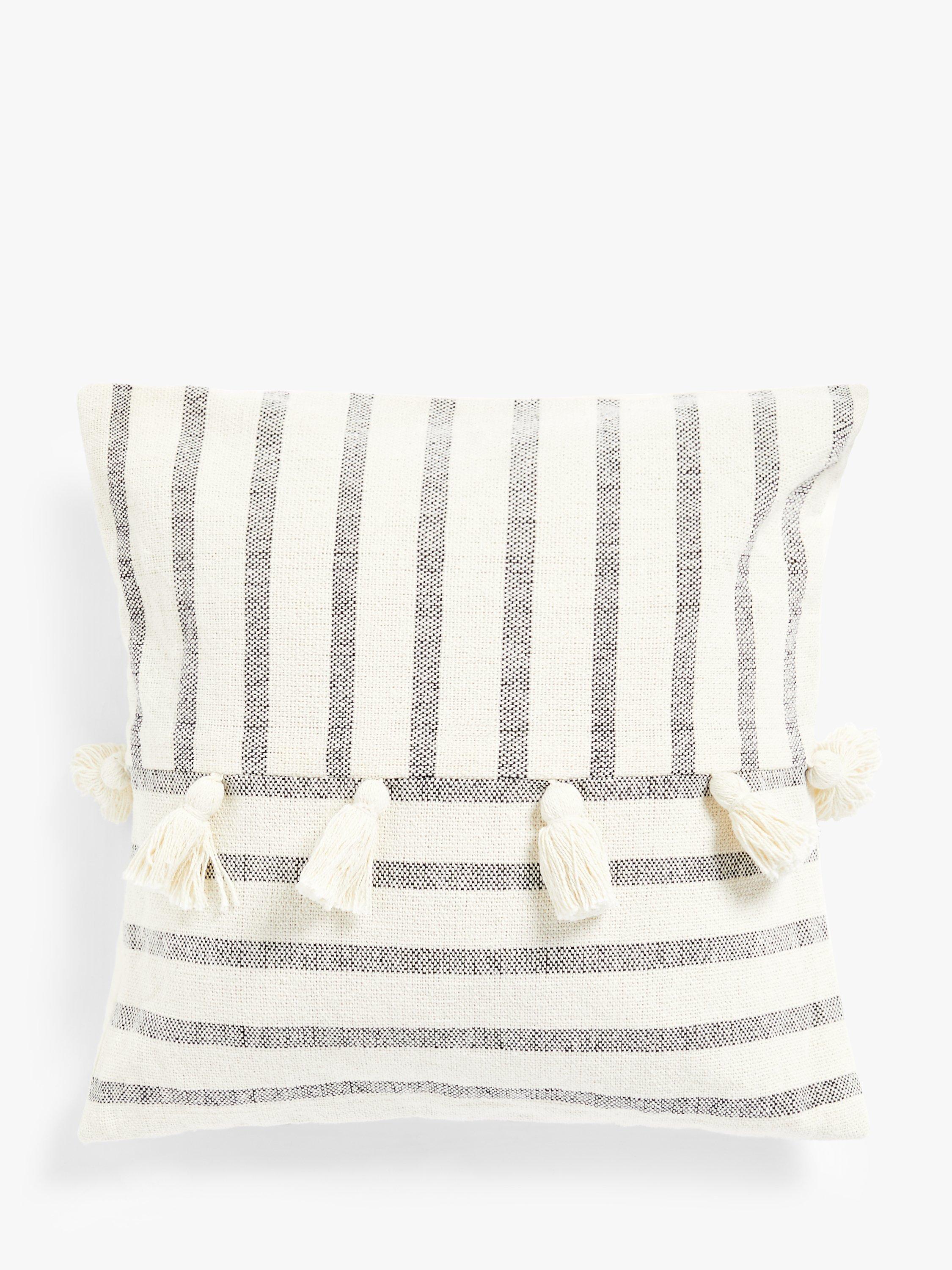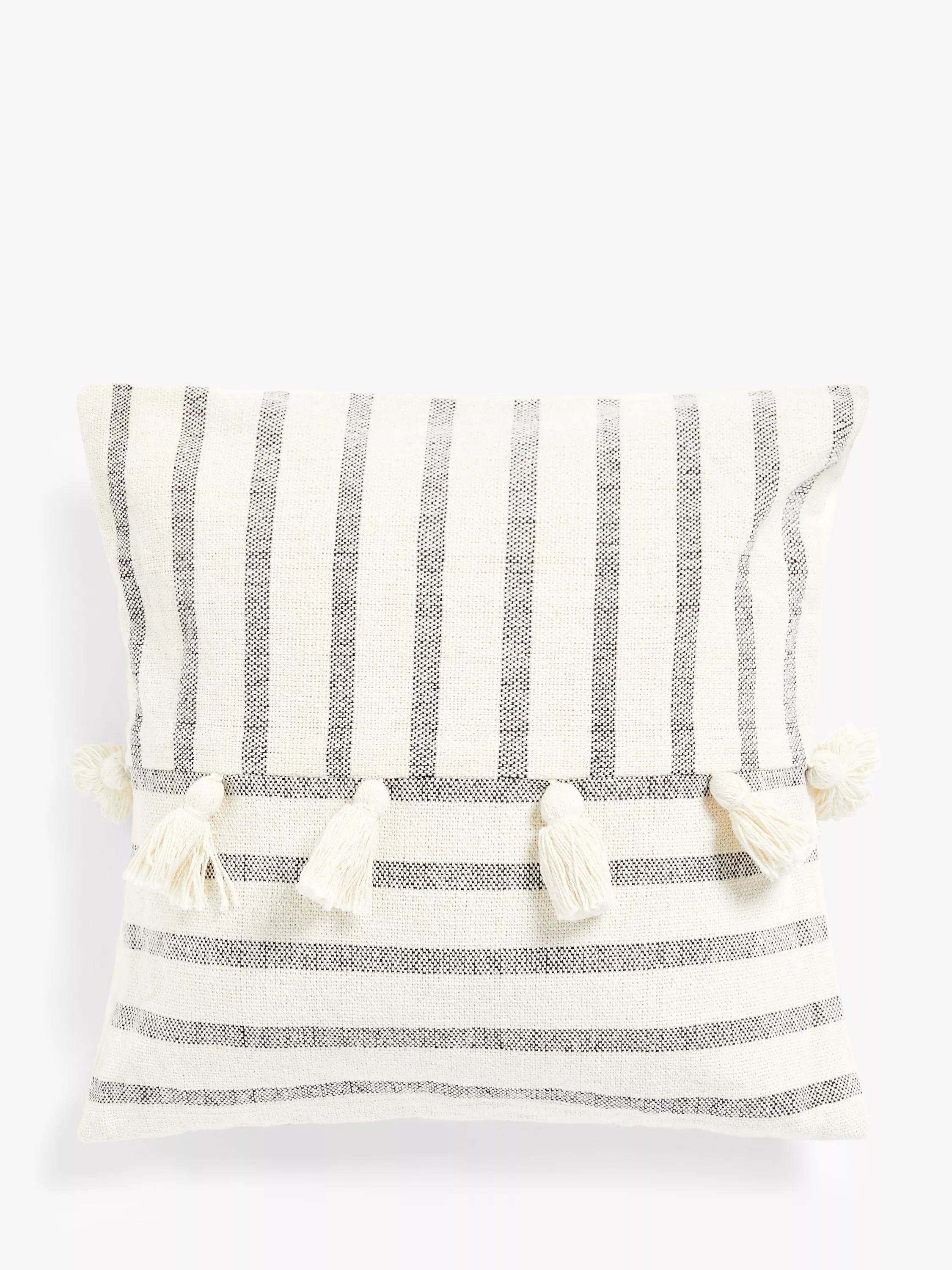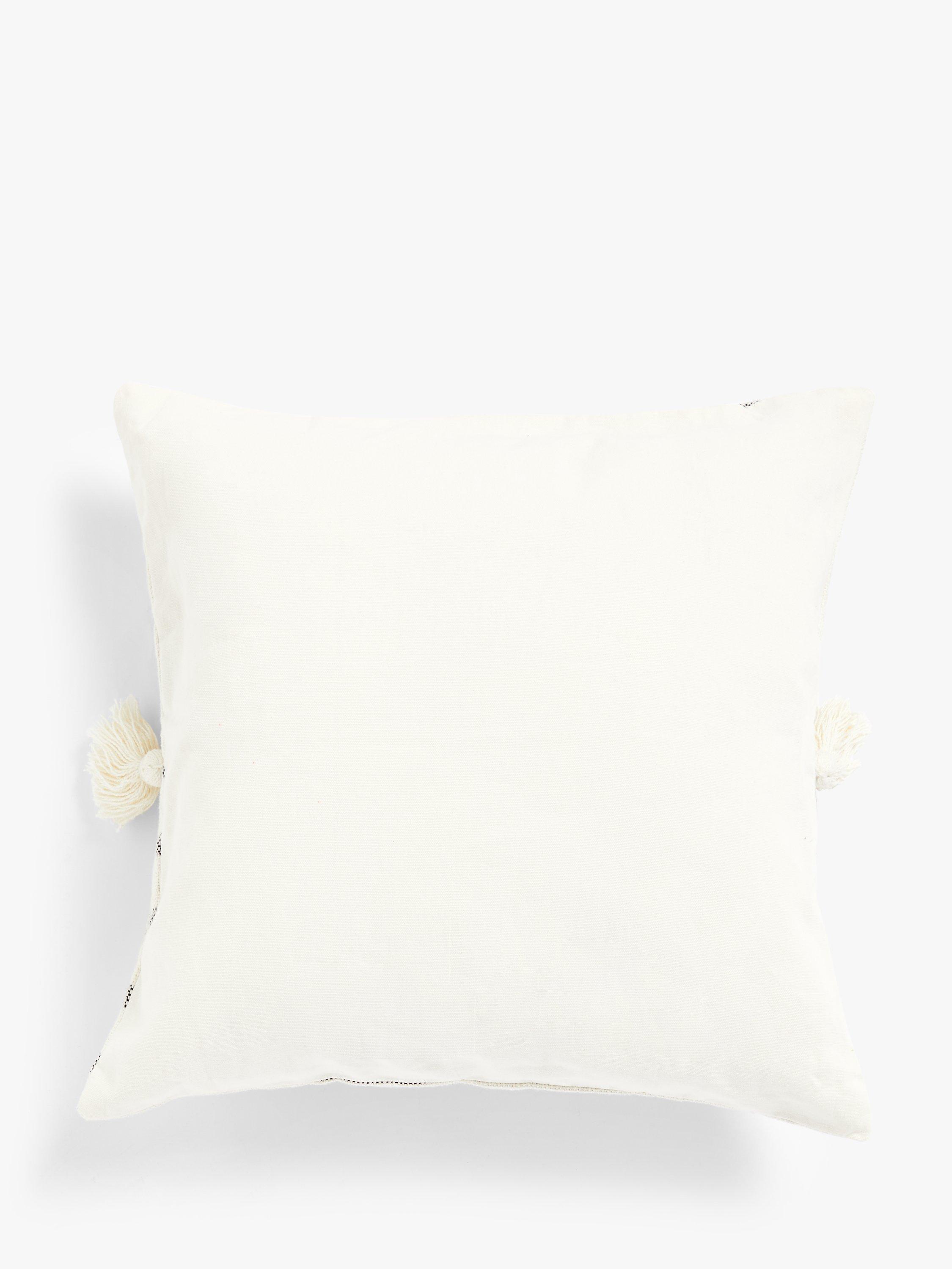 A hand-loomed, woven cushion with soft, tassel detail for a relaxed look.
