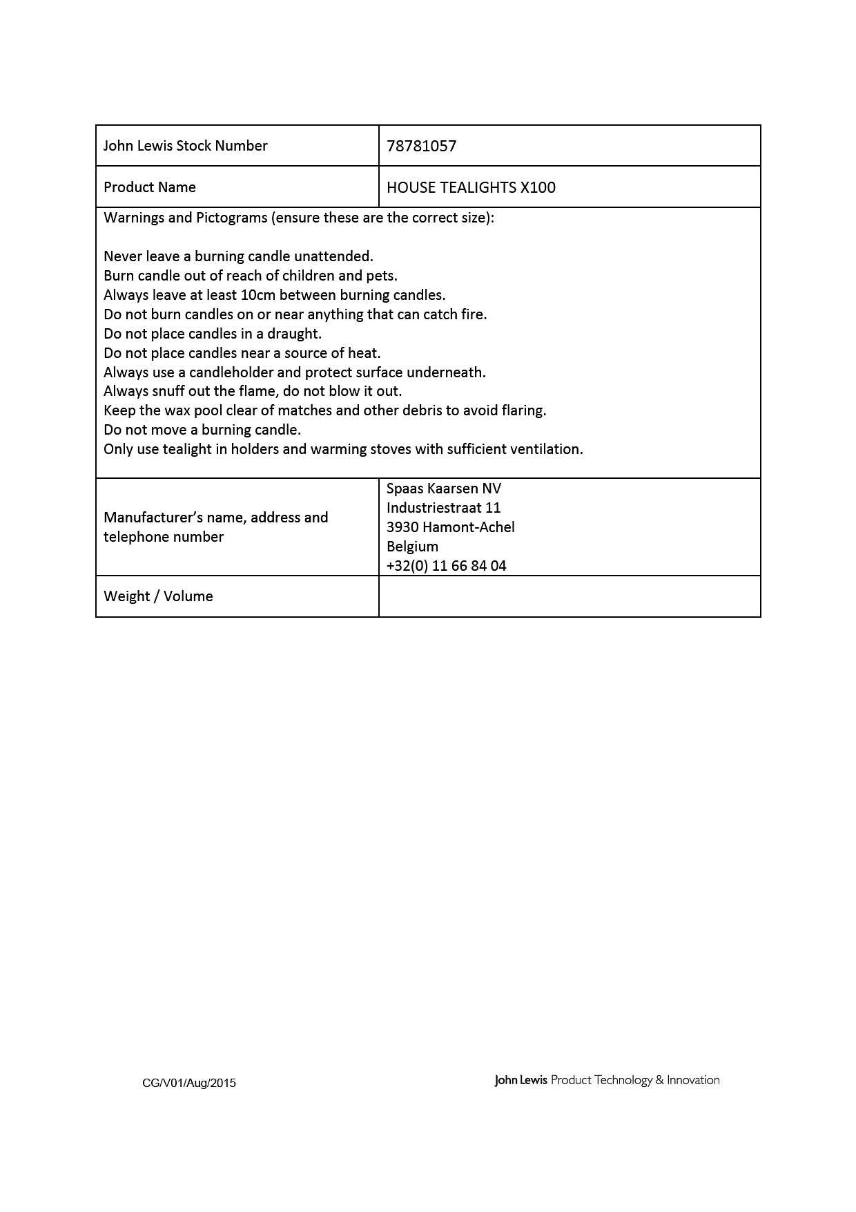 Product specification