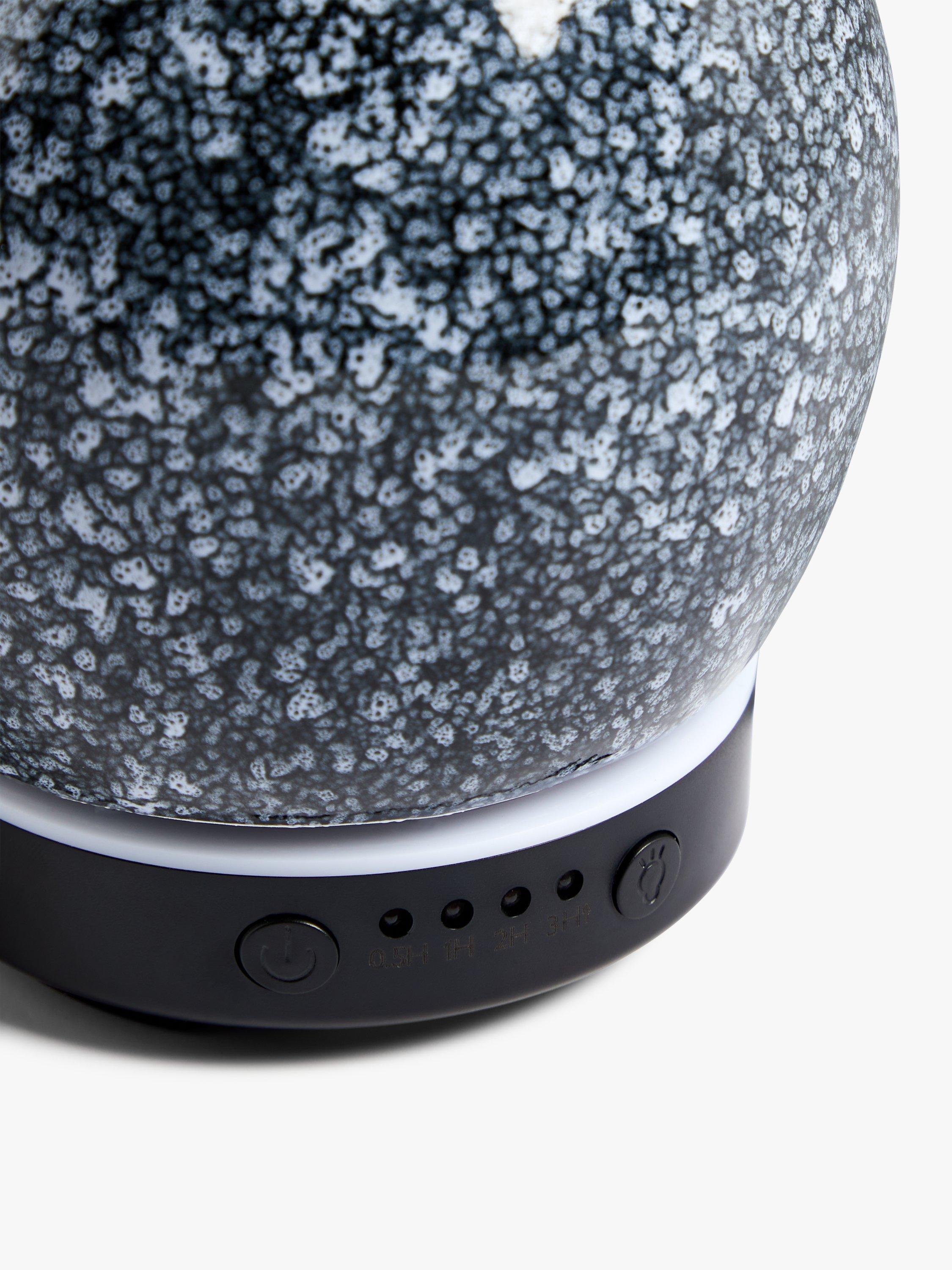Made from stoneware with a glazed finish, it also features different coloured lights in the based to help create a warm glow as you relax.