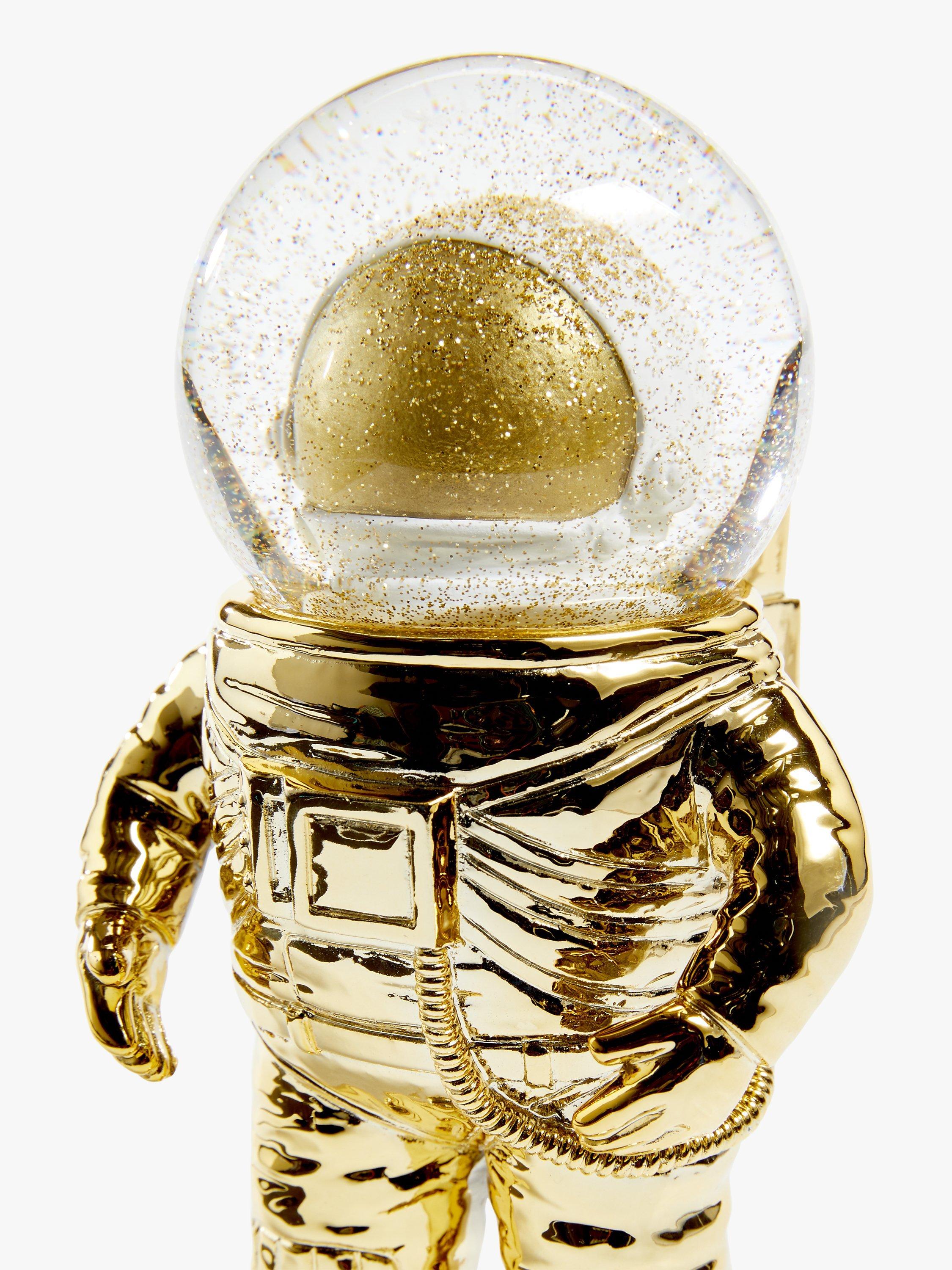 Dressed in a glamorous gold spacesuit, this astronaut with attitude has a snow globe space helmet filled with swirling glitter.