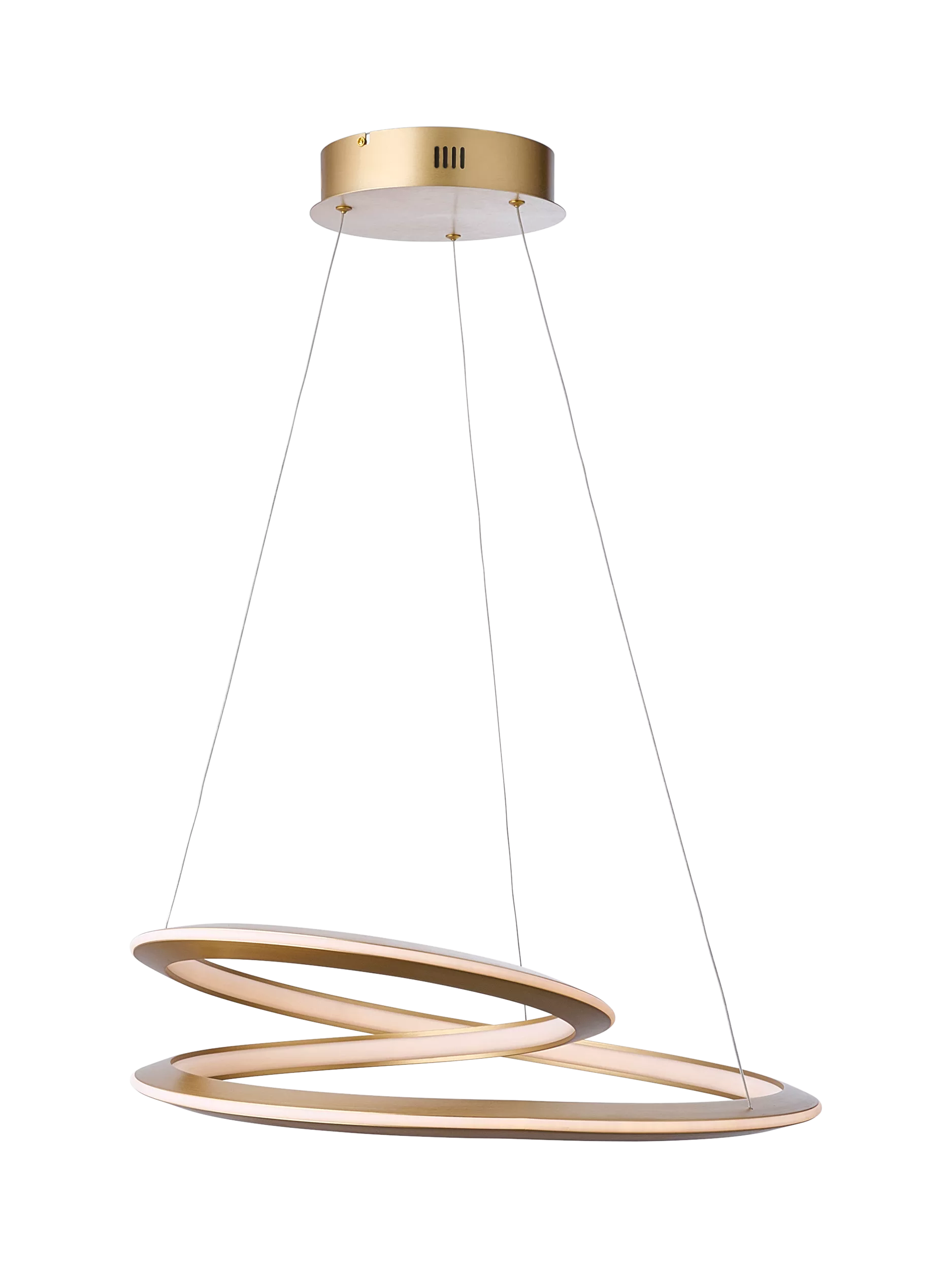 The Tempesta pendant is a swirl of modern LED with a unique sculptural form. The warm brass tones and the large size make a modern statement that will brighten up your chosen space. Ideal for a dining or living room, this powerful dual-lit pendant is height-adjustable and dimmable when used with a suitable dimmer switch and bulb.