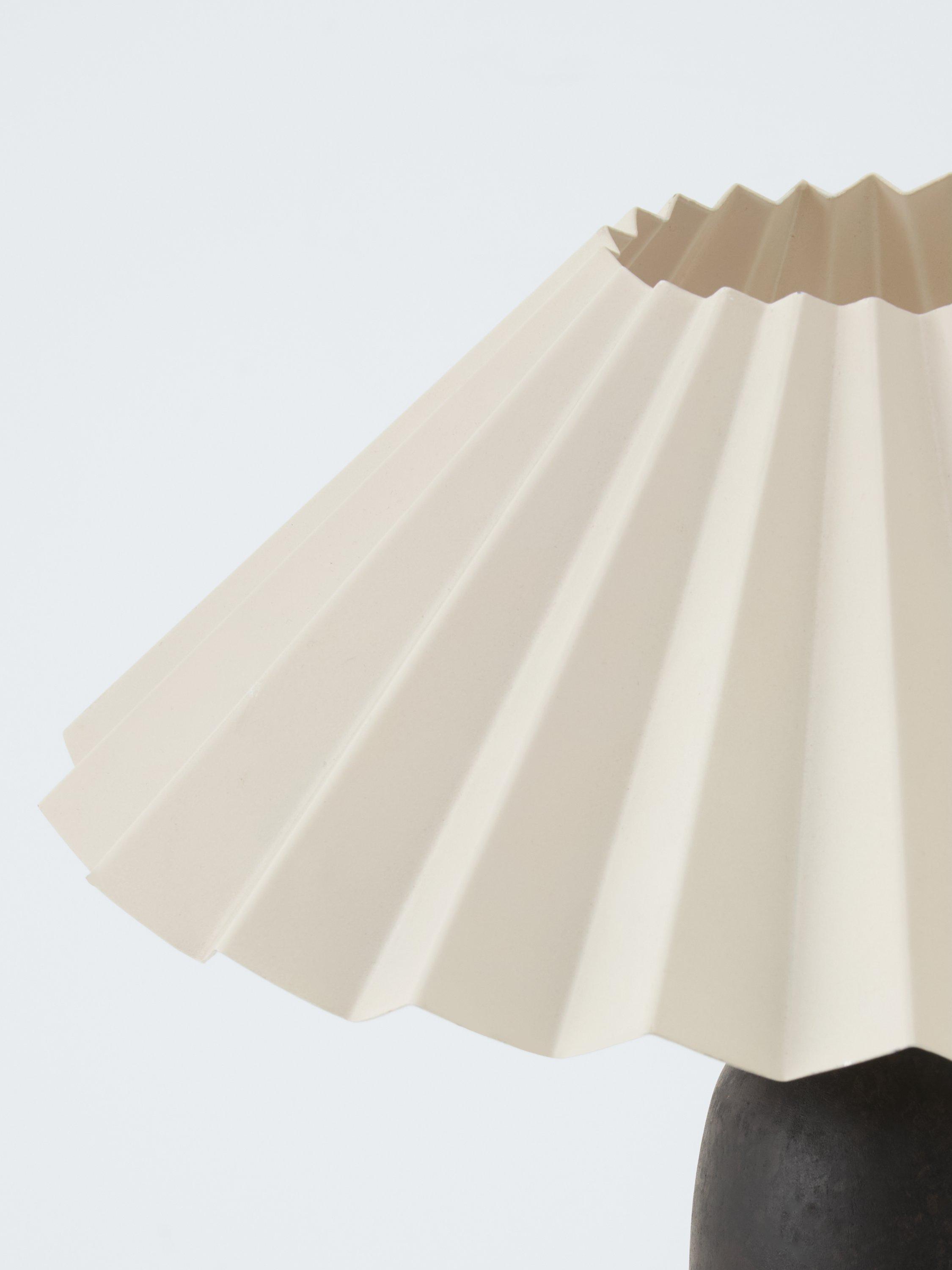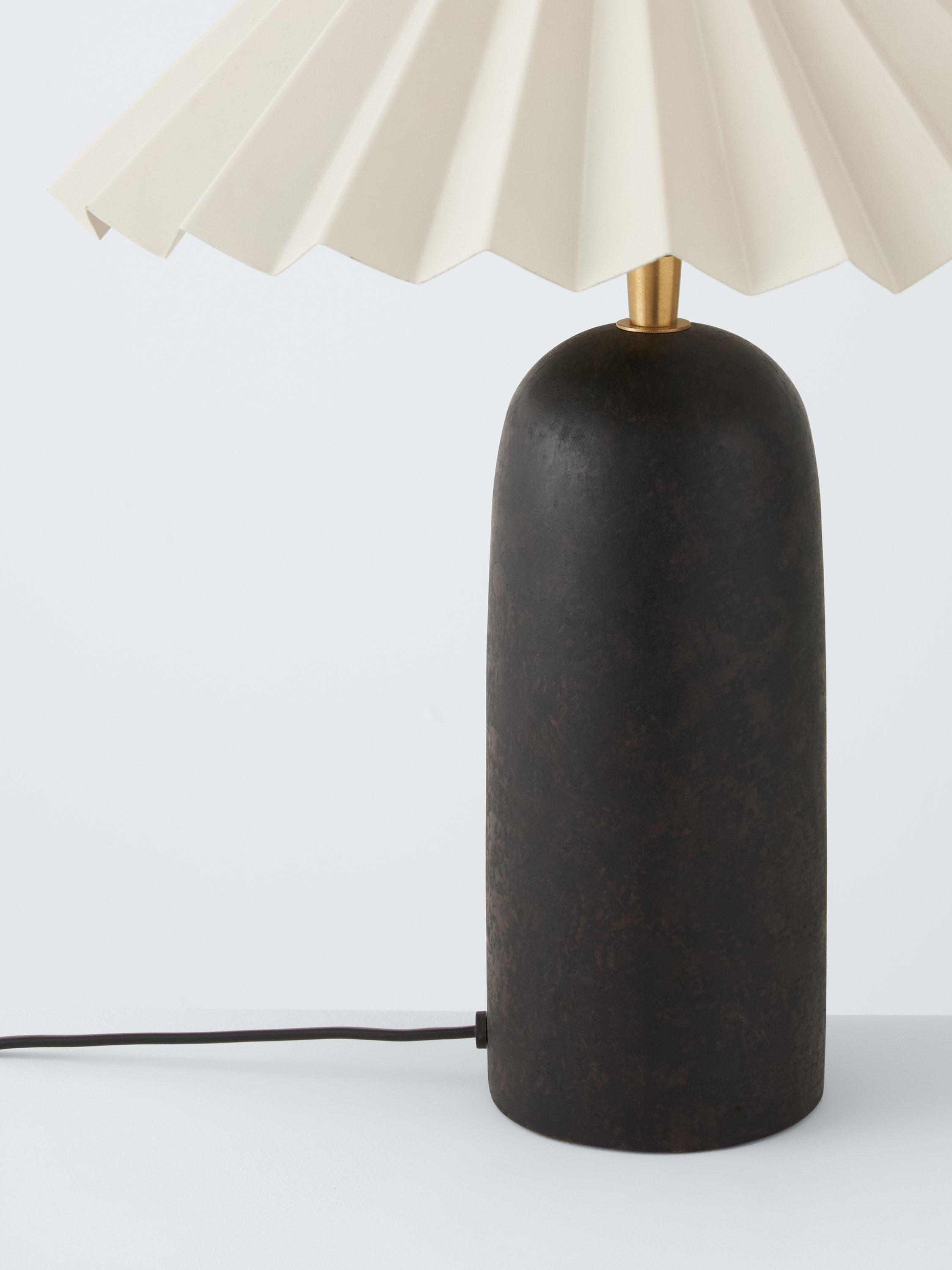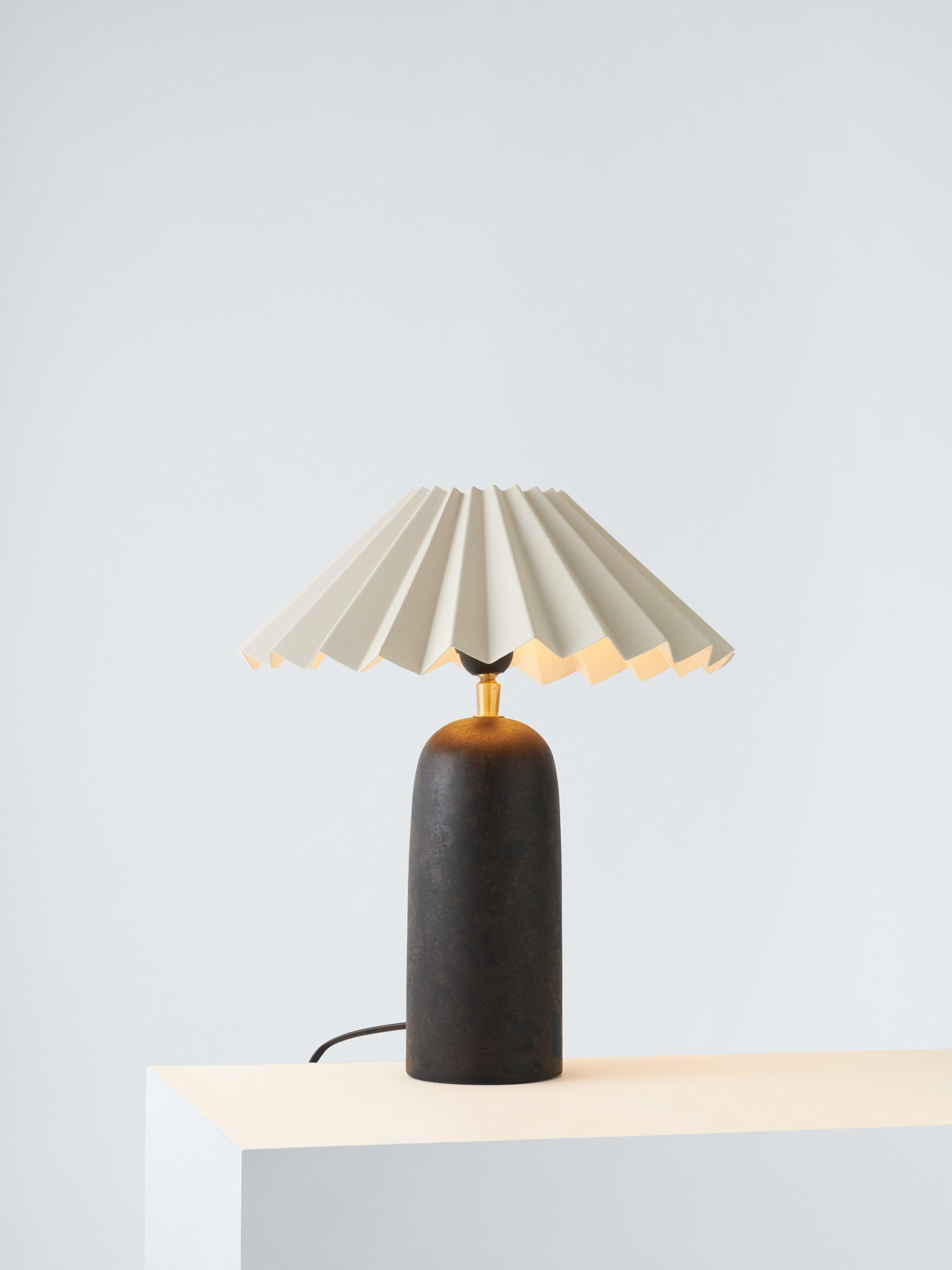 This simple terracotta table lamp is paired with a pleated metal shade for a contemporary take on a traditional table lamp. Ideal in the living room or for use as a bedside lamp.