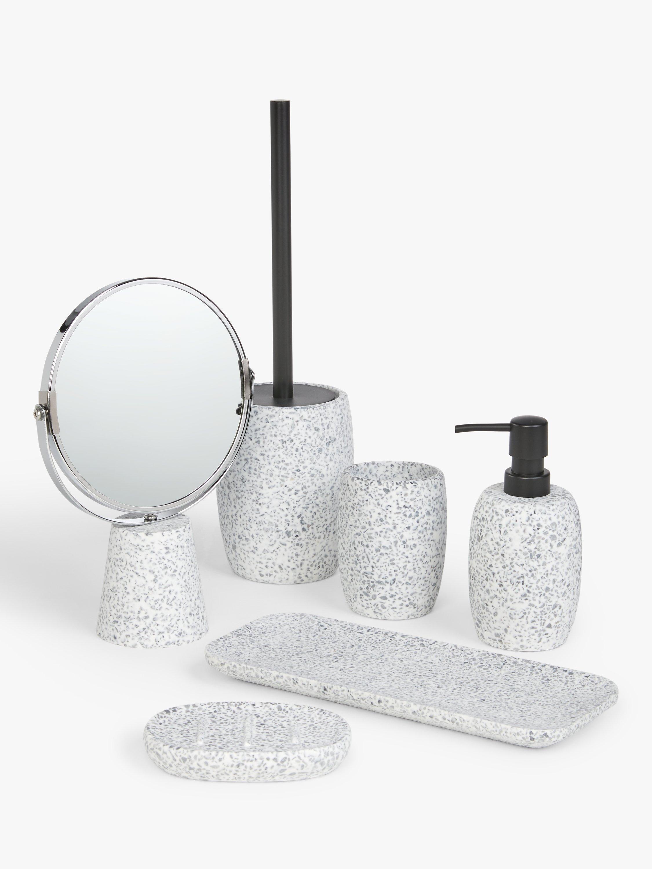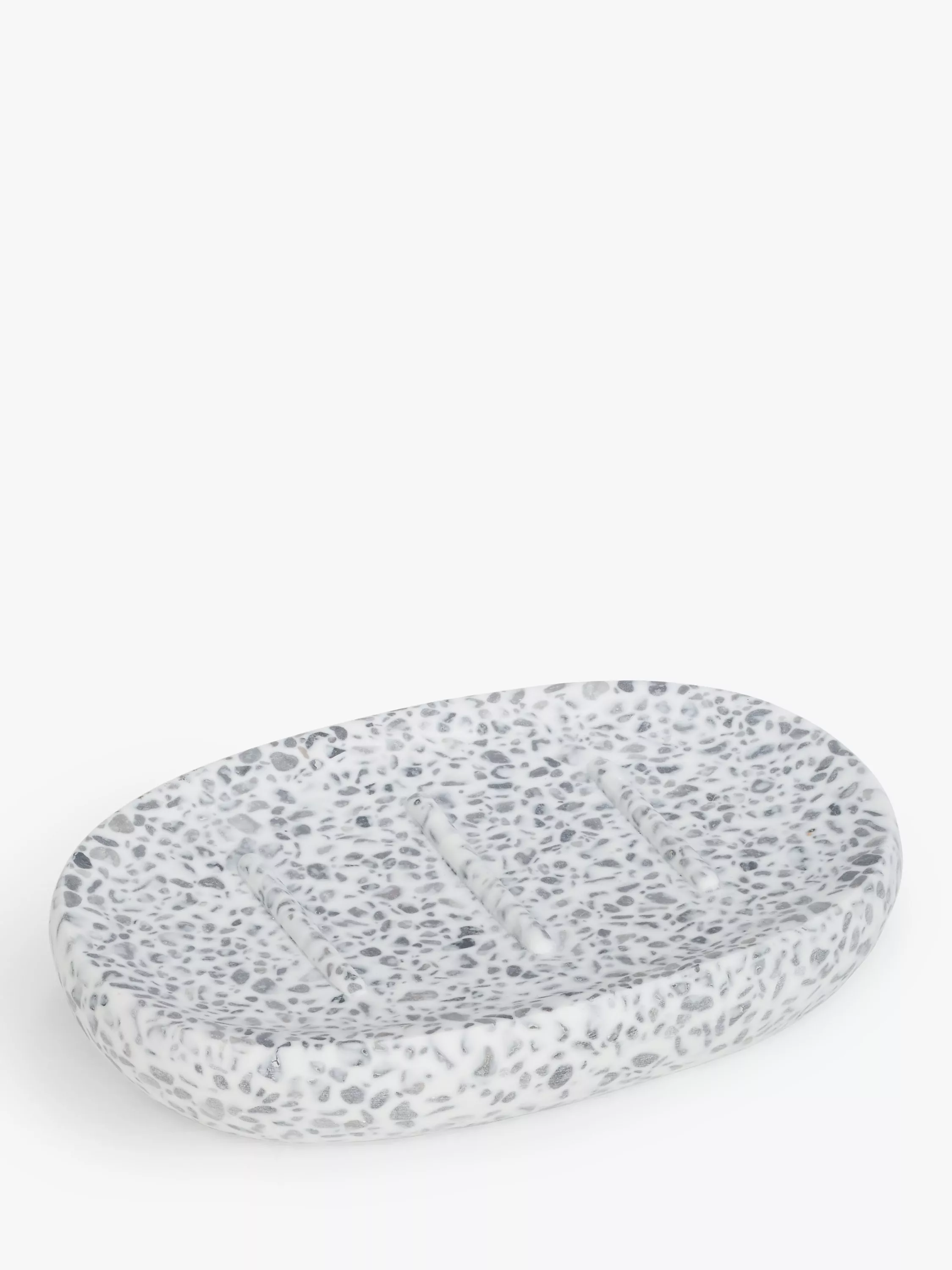 Made from resin with a terrazzo look, this soap dish has a flecked stone, almost mosaic-like design that brings an earthy, textured look to your bathroom.