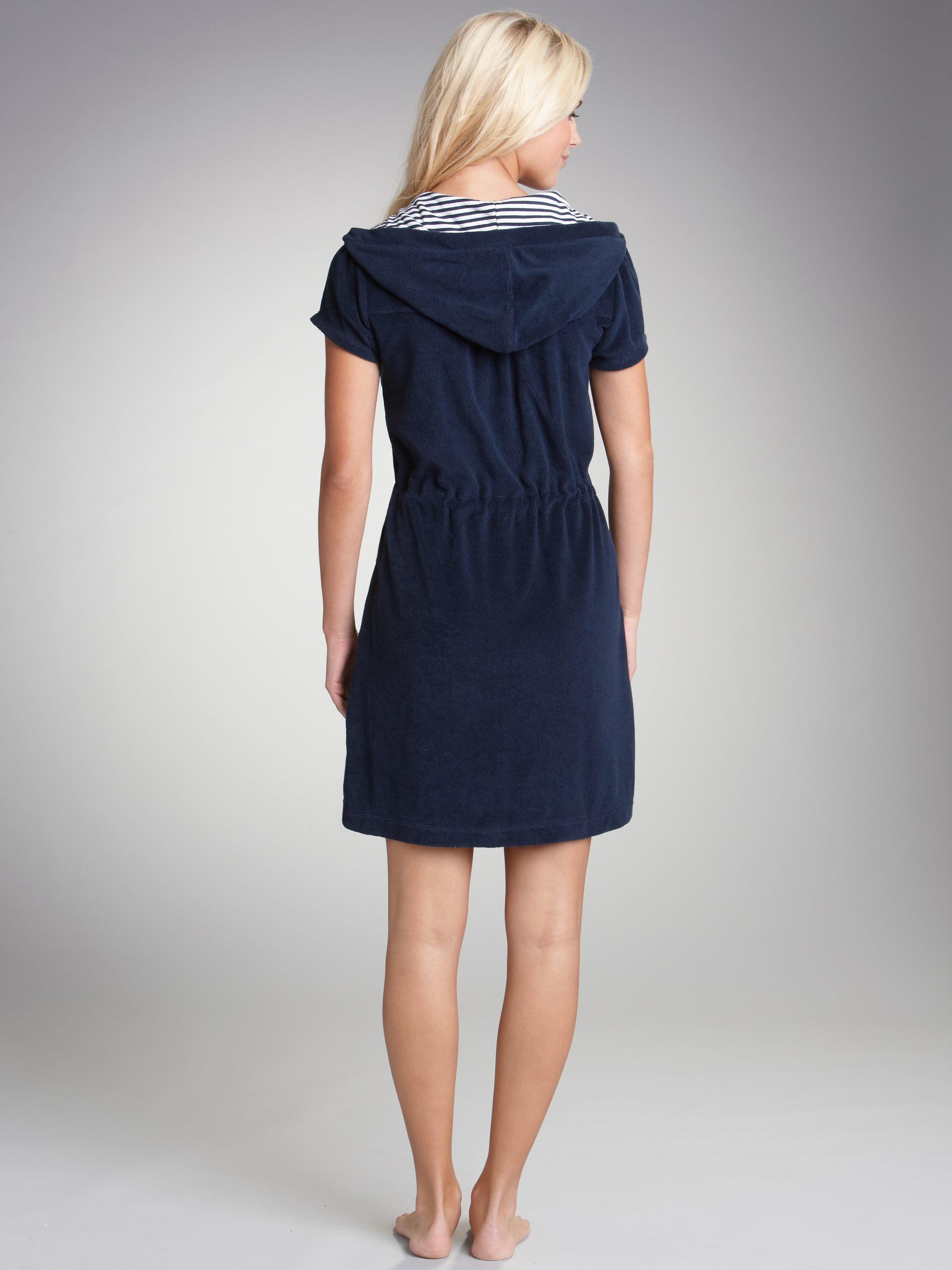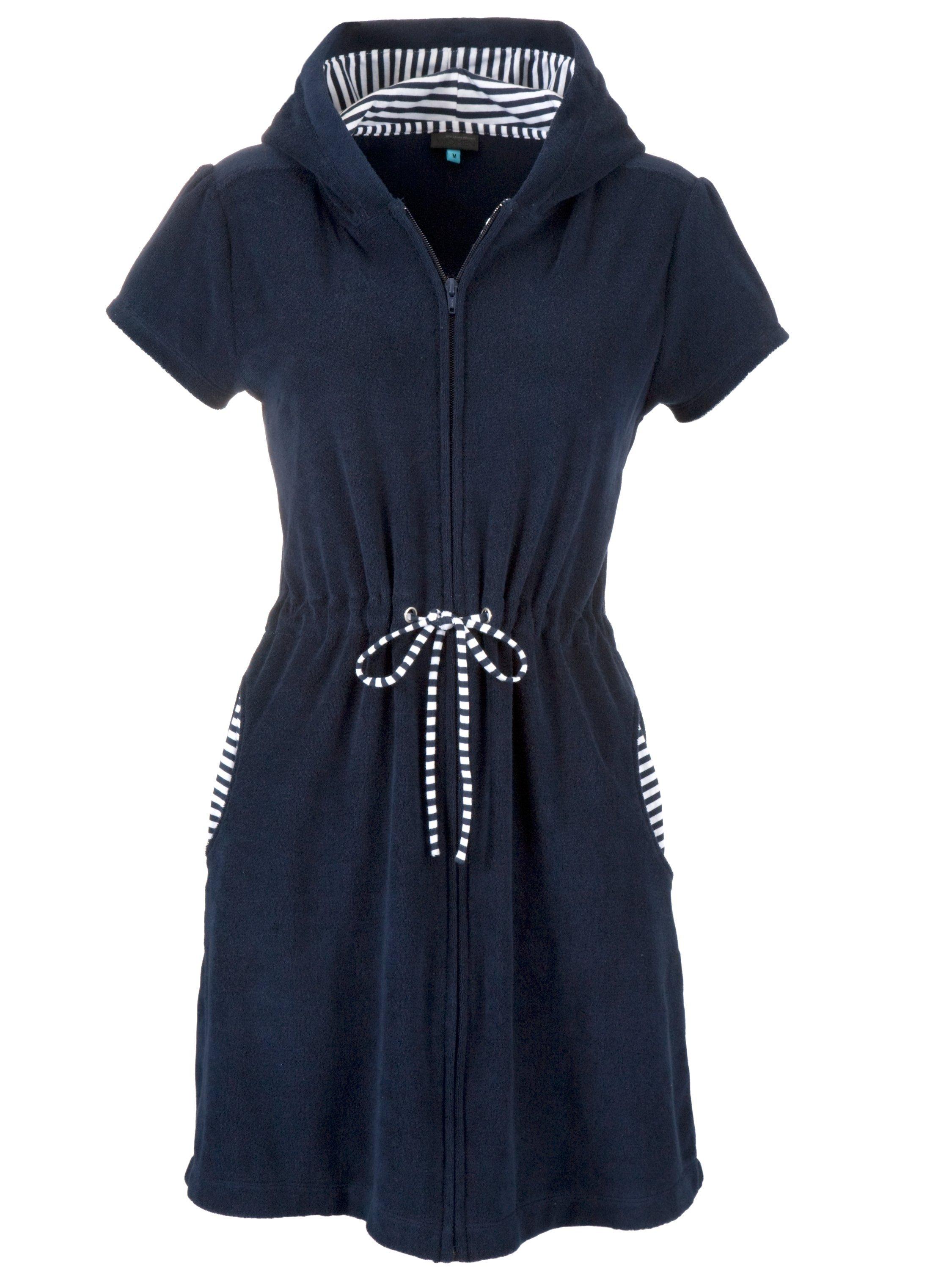 Crafted from super-soft towelling fabric in a chic navy blue hue, it features a zip up front for easy-to-wear style.