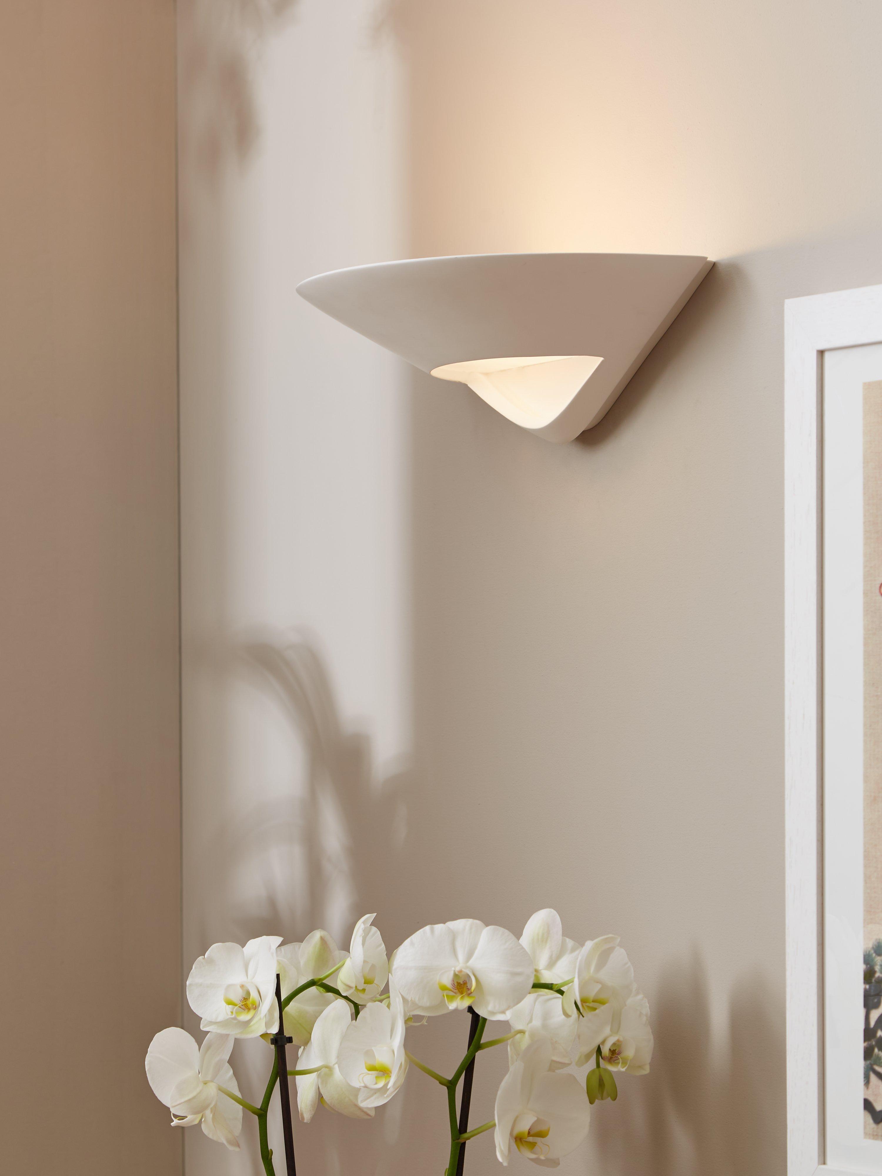 A smooth and simple uplighter crafted from a soft curved plaster for a seamless addition to your wall. It can be painted to match your existing decor, slotting beautifully in with your current interior.