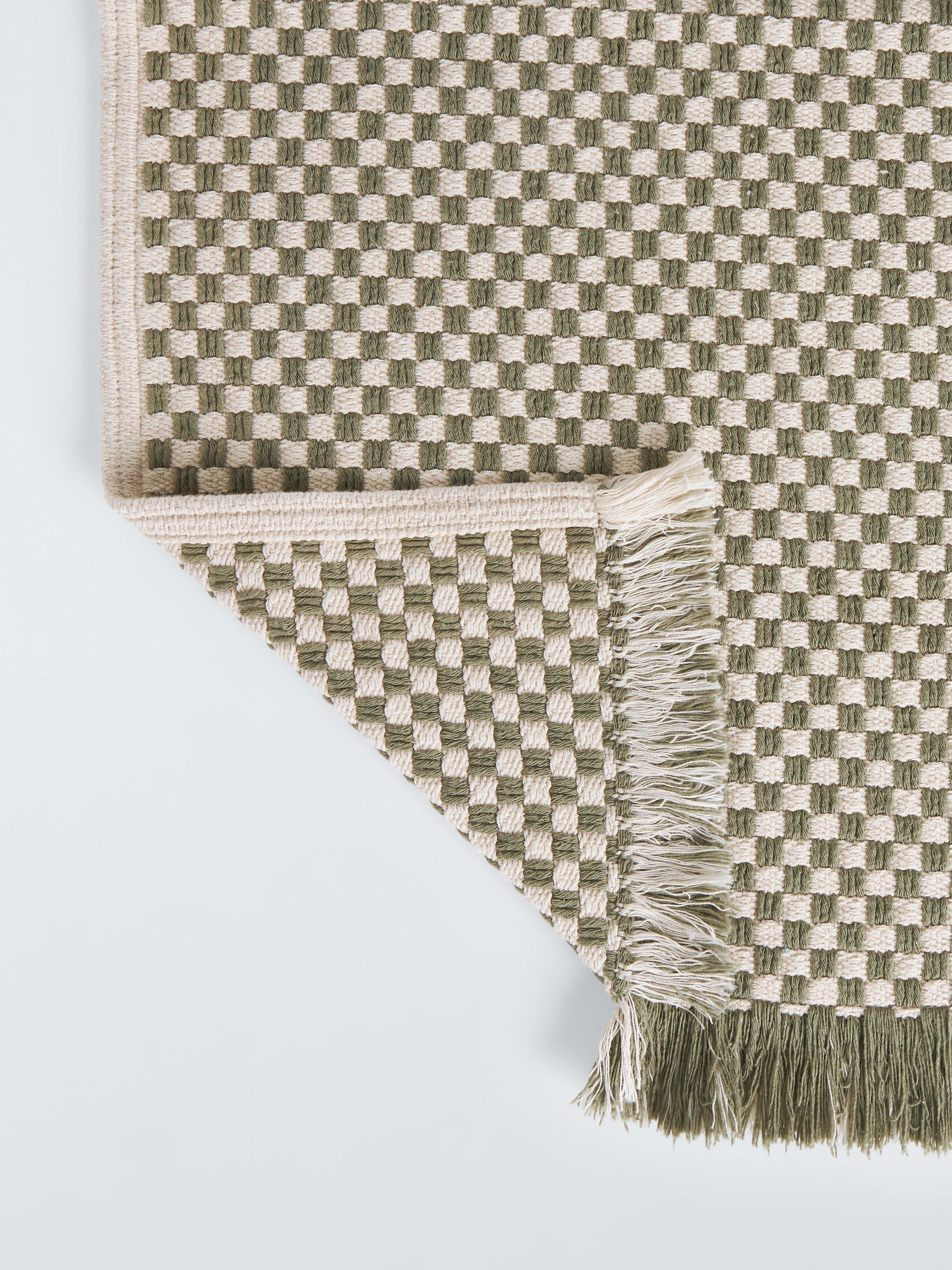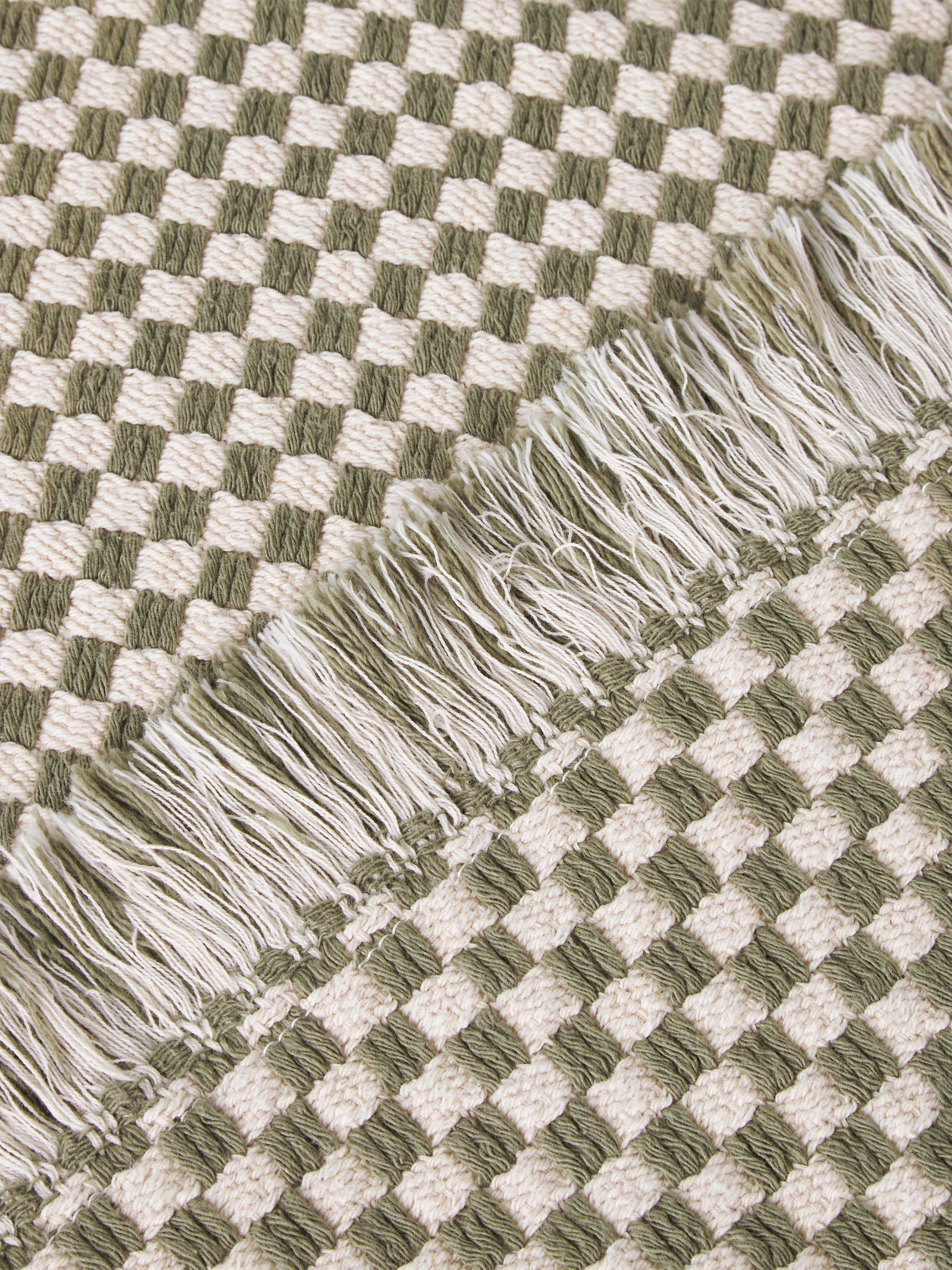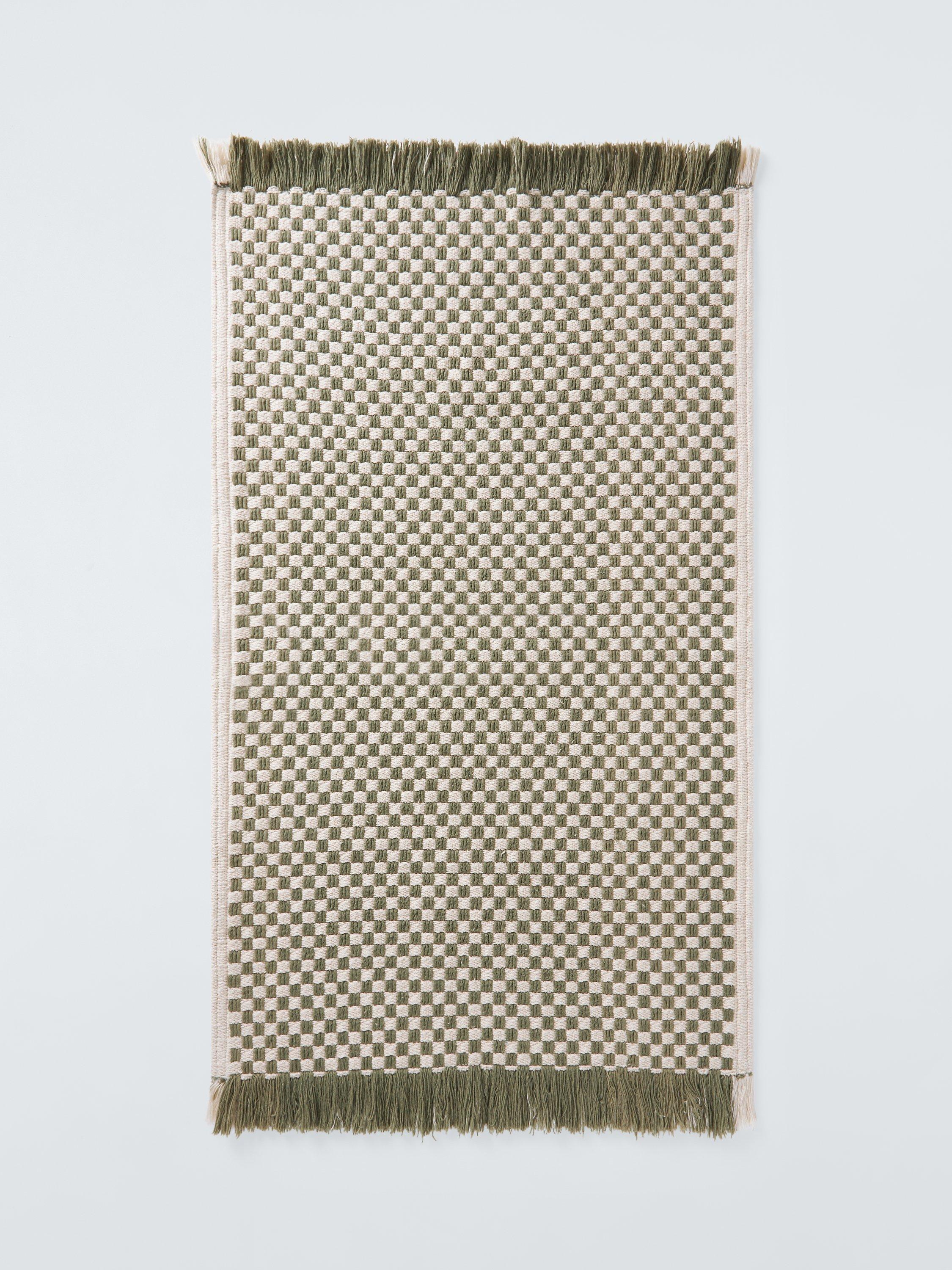 The checks on this bath mat are created through how we've woven it. We've also added a soft, fringed edge for added interest.