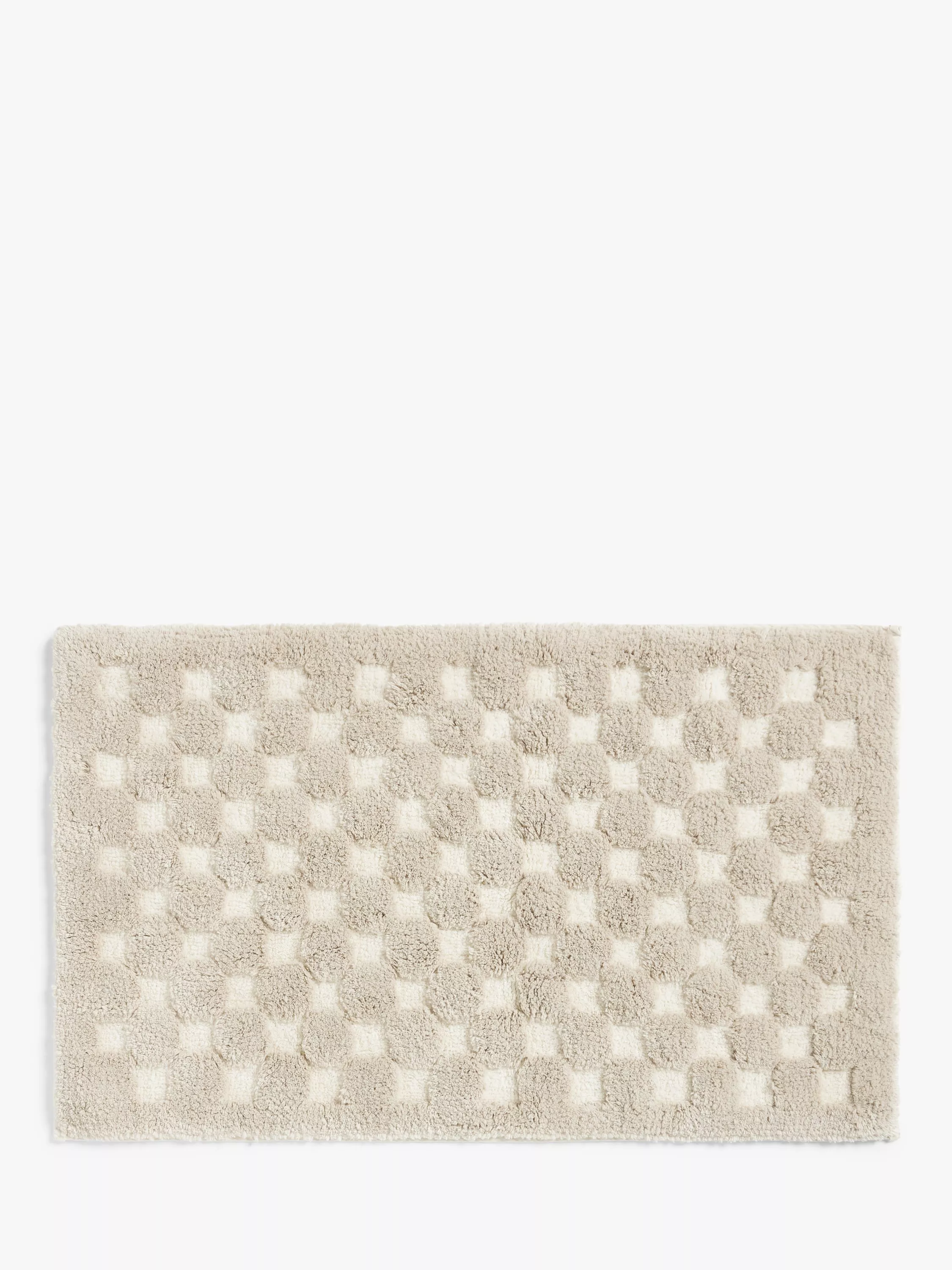 A deeply sculpted pile creates a checkerboard design on this comfy and absorbent bath mat.