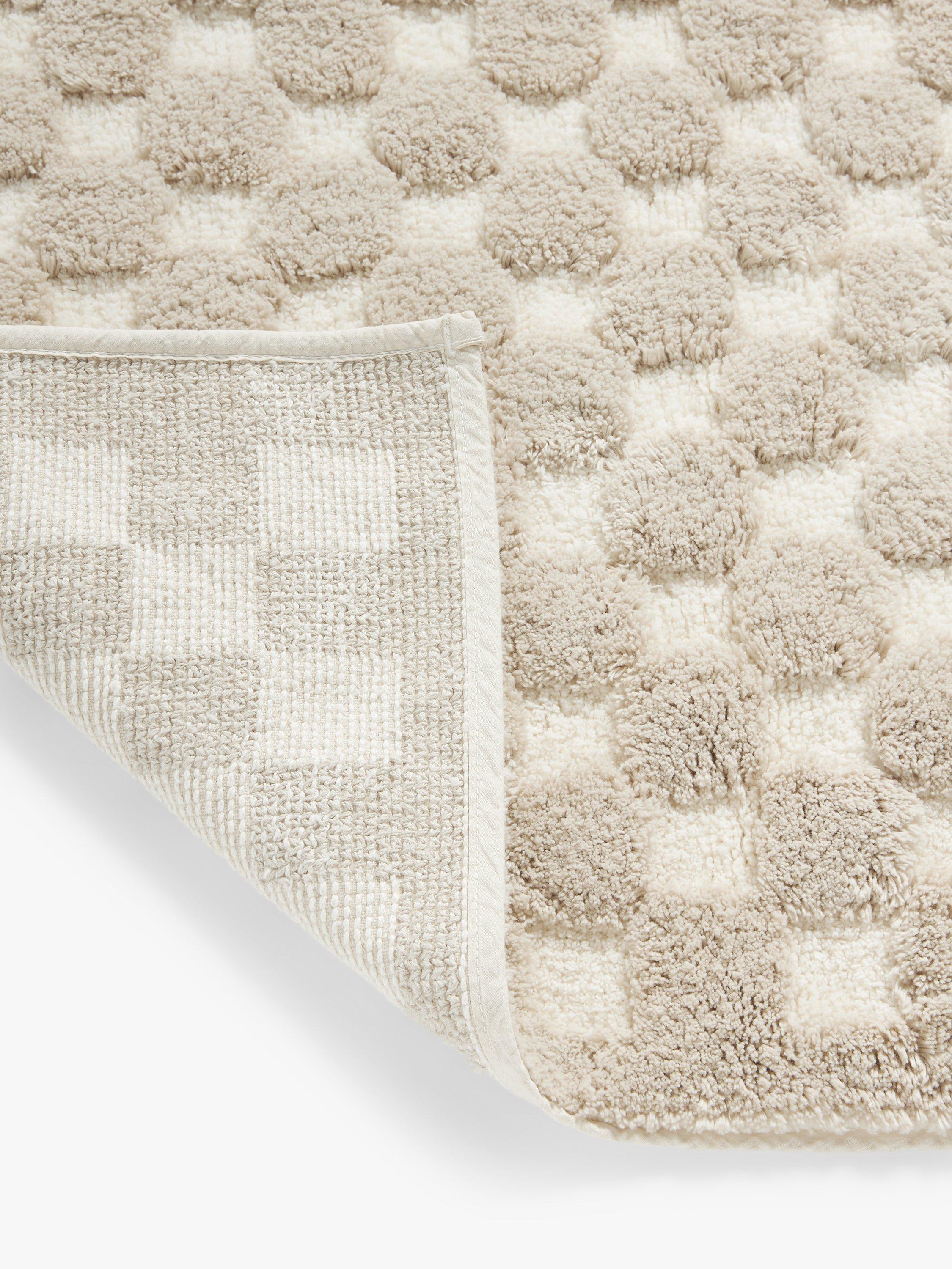 A deeply sculpted pile creates a checkerboard design on this comfy and absorbent bath mat.