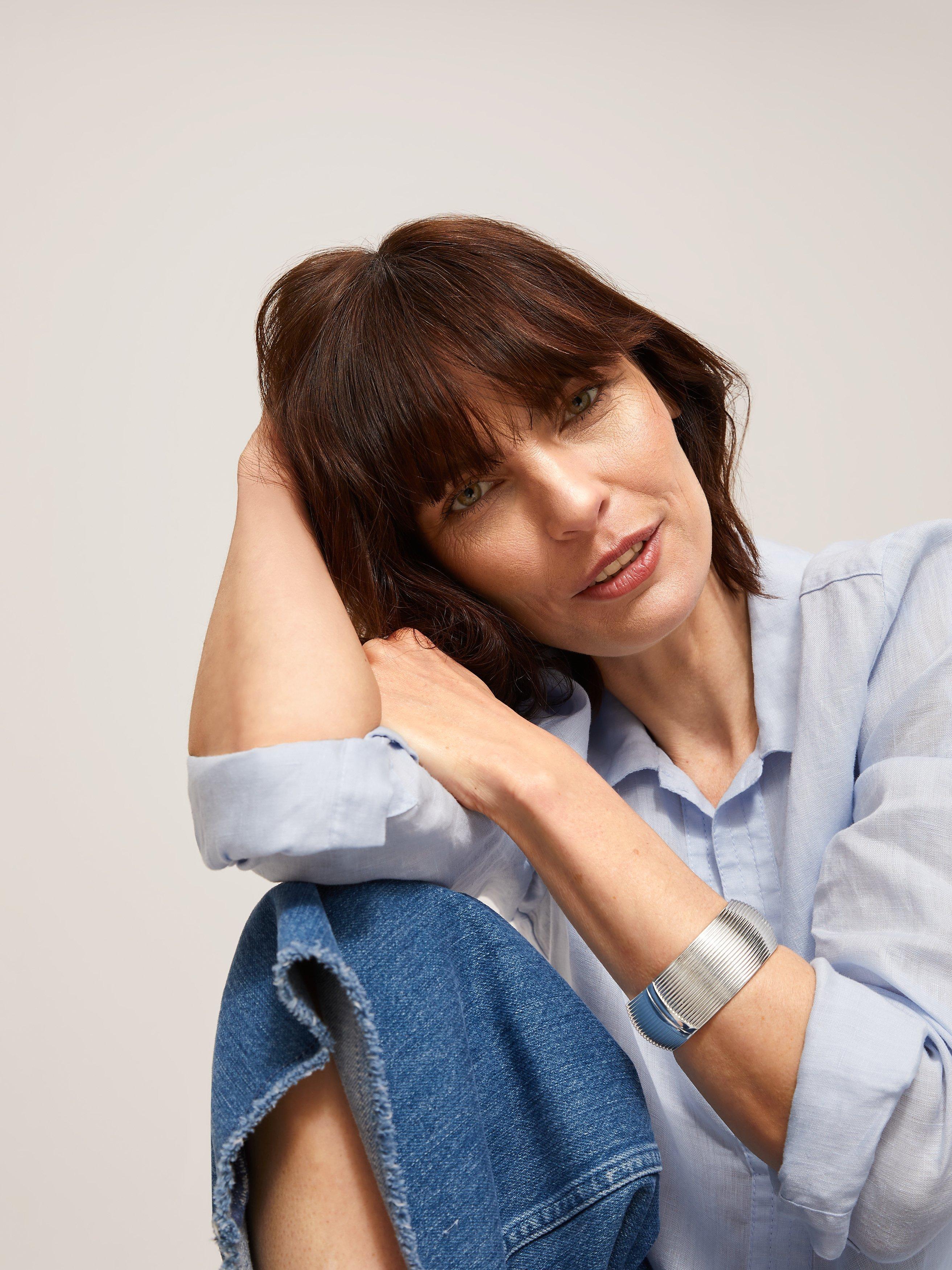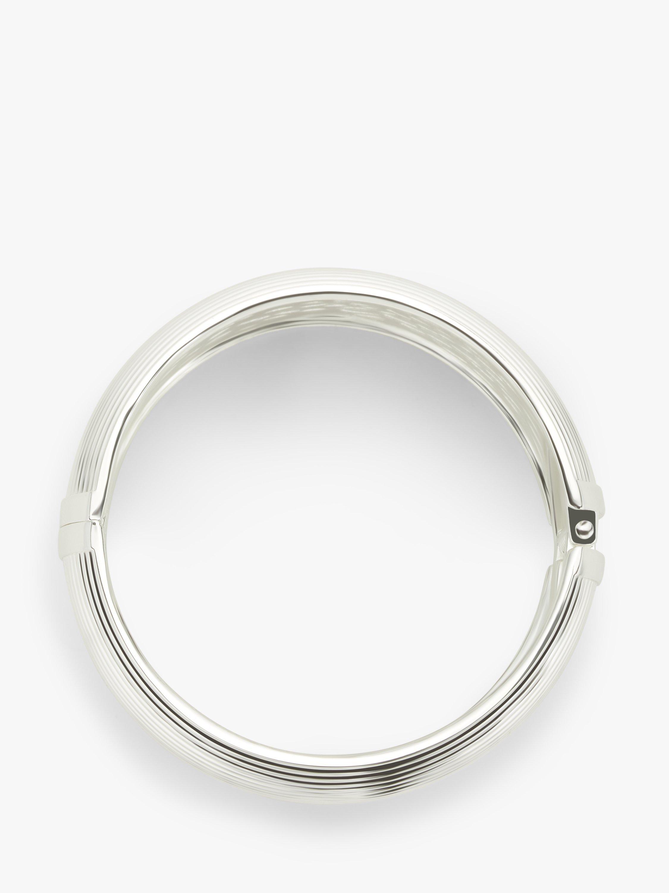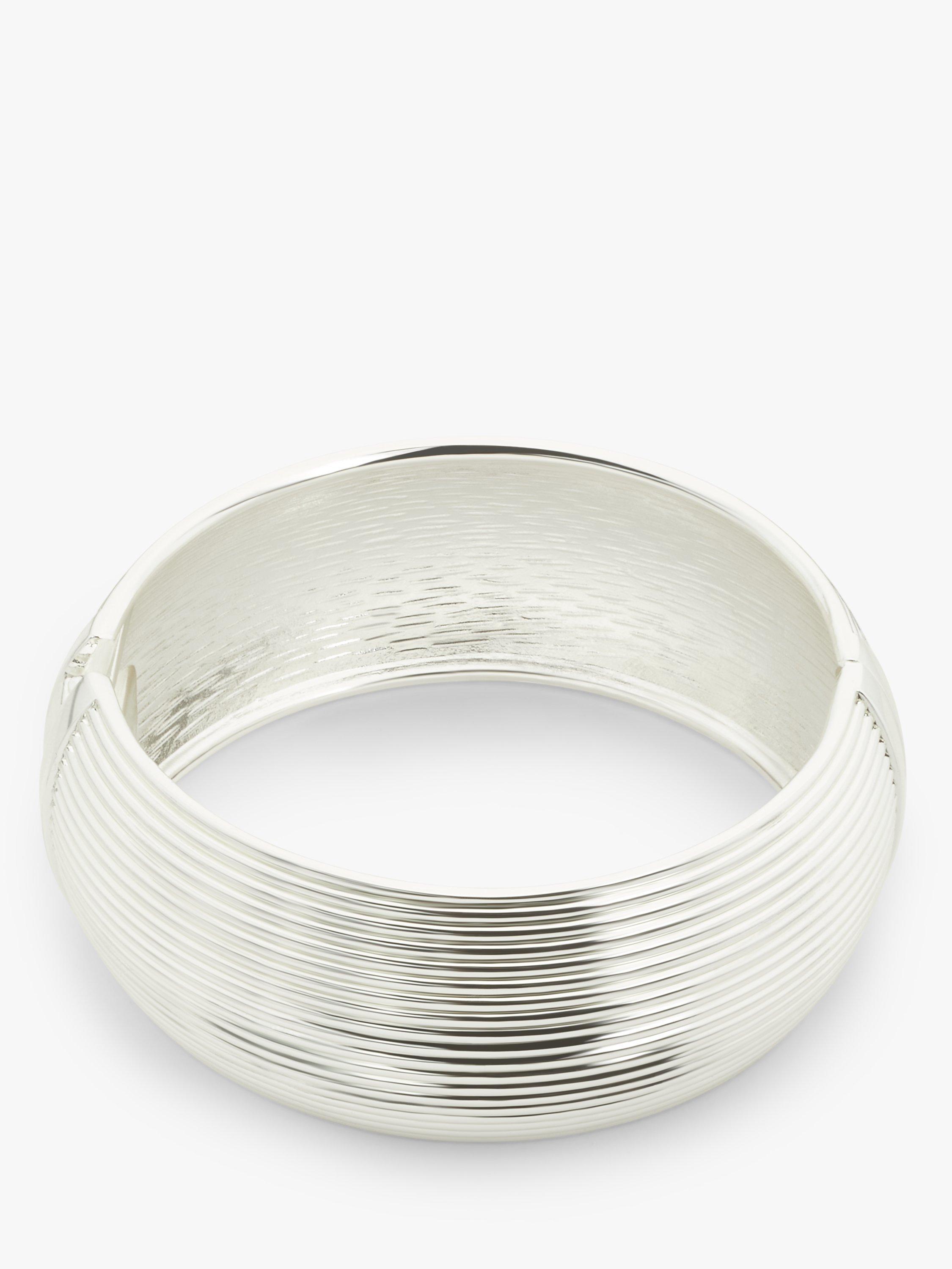 Effortlessly bold, our bangle comes in a wide chunky shape punctuated by striped texture. The bangle has a secure hinge fastening.