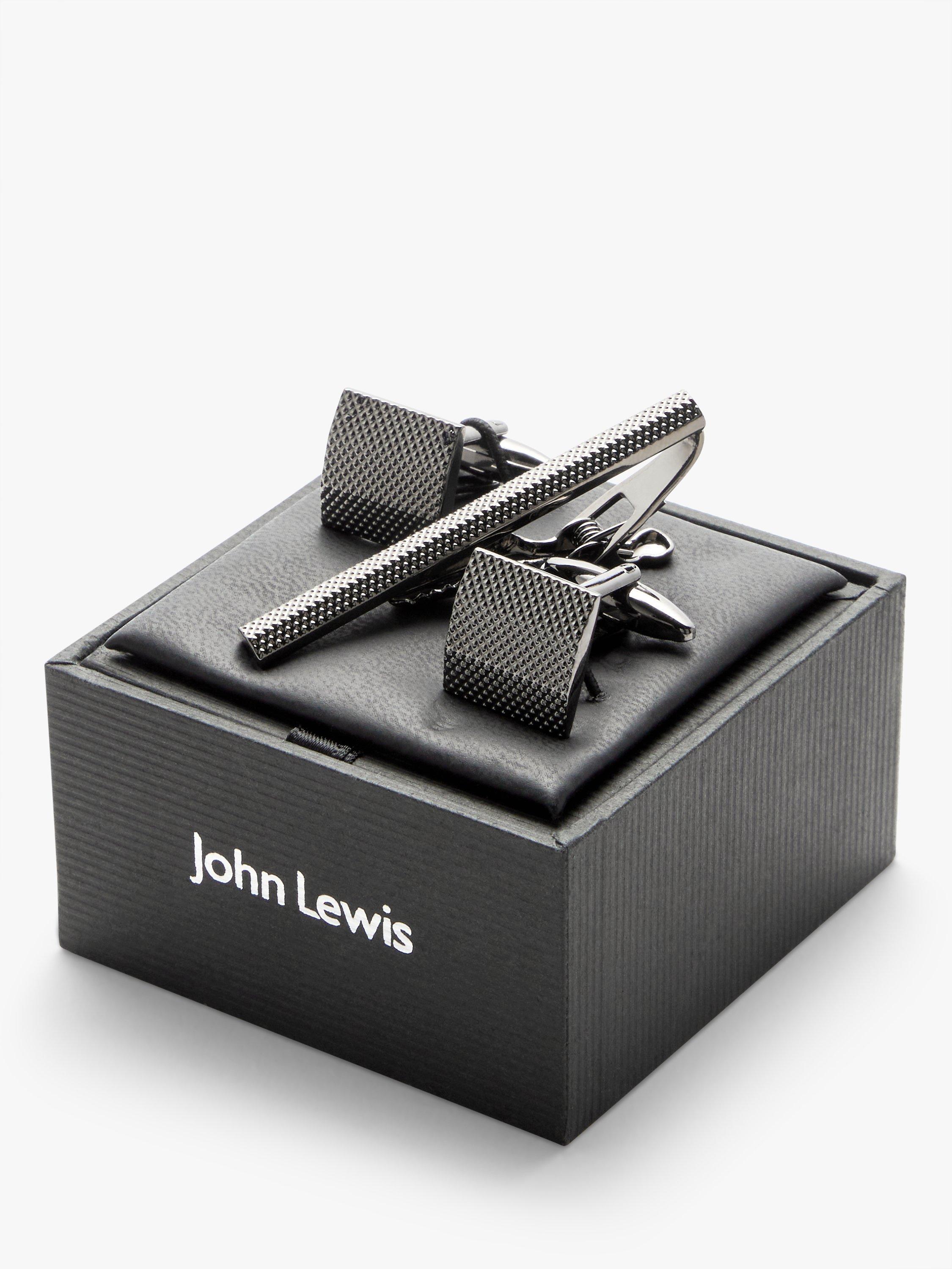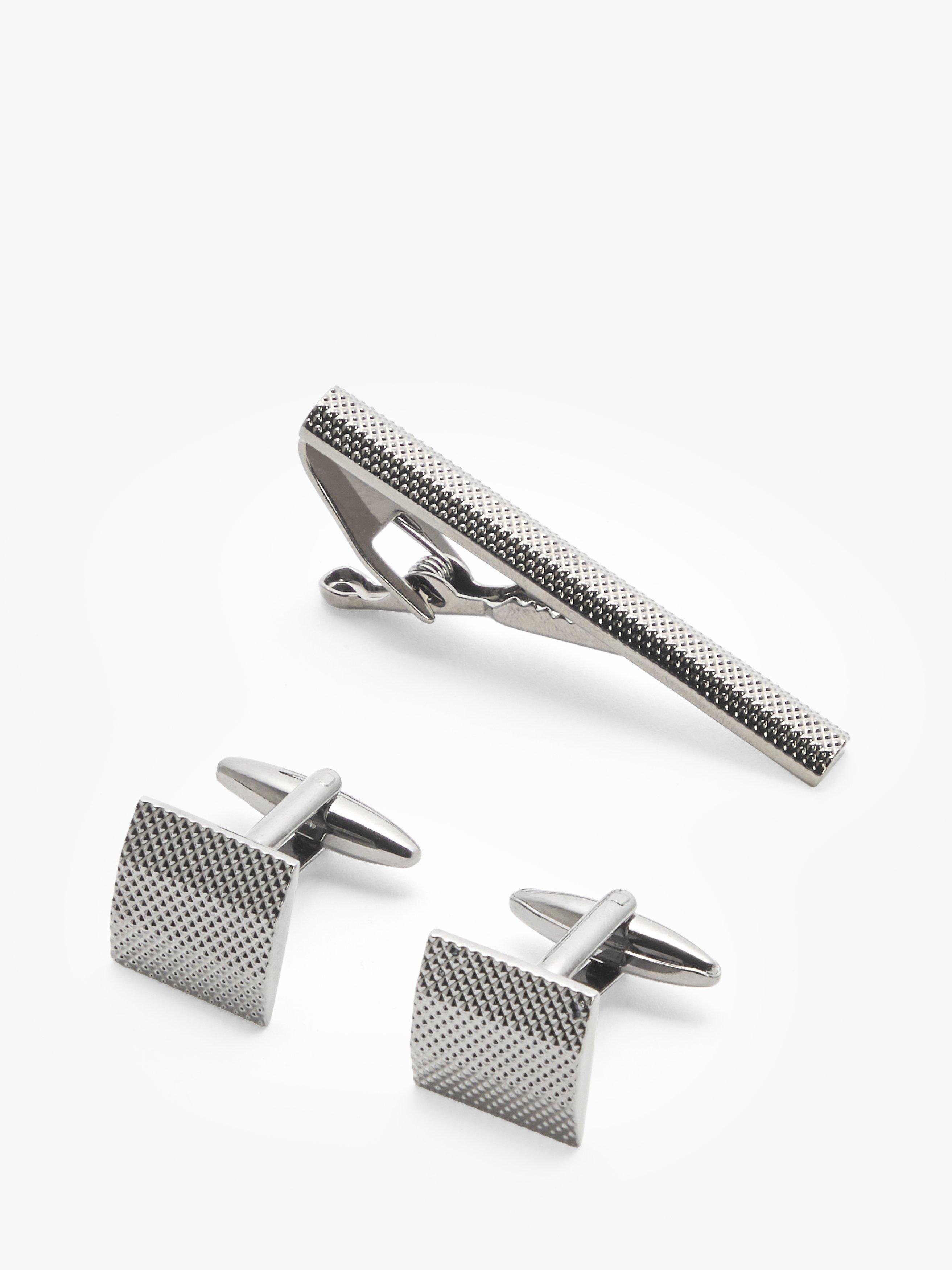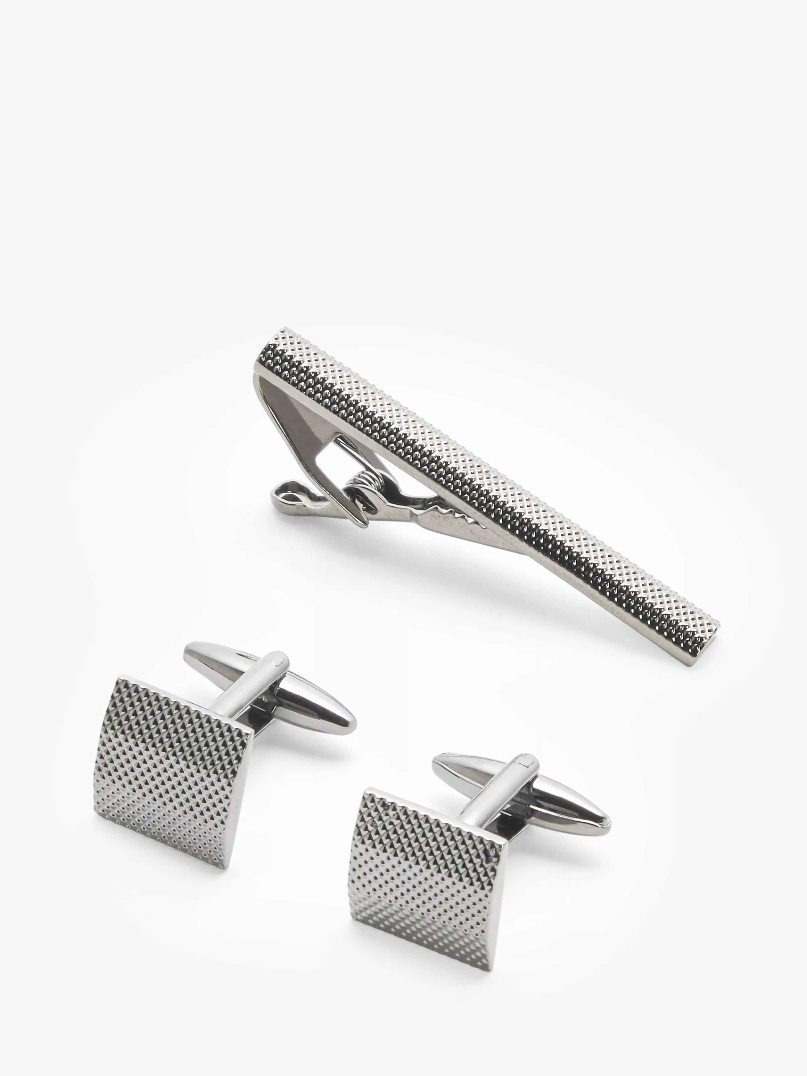 Complete your formal attire with the robust design of these textured square cufflinks, complete with a matching 53mm tie bar.