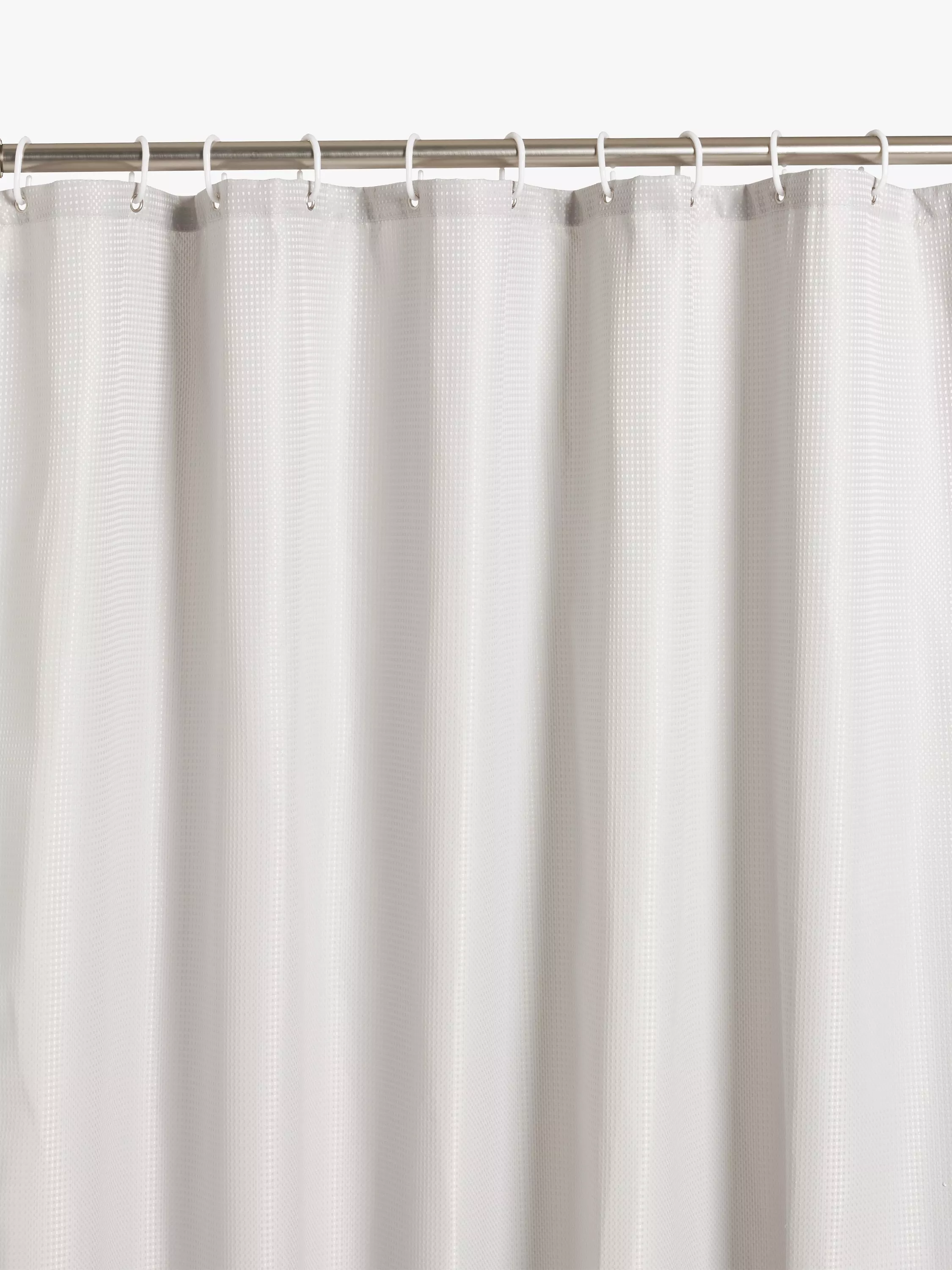 This soft, waffle-textured shower curtain is made from recycled polyester.
