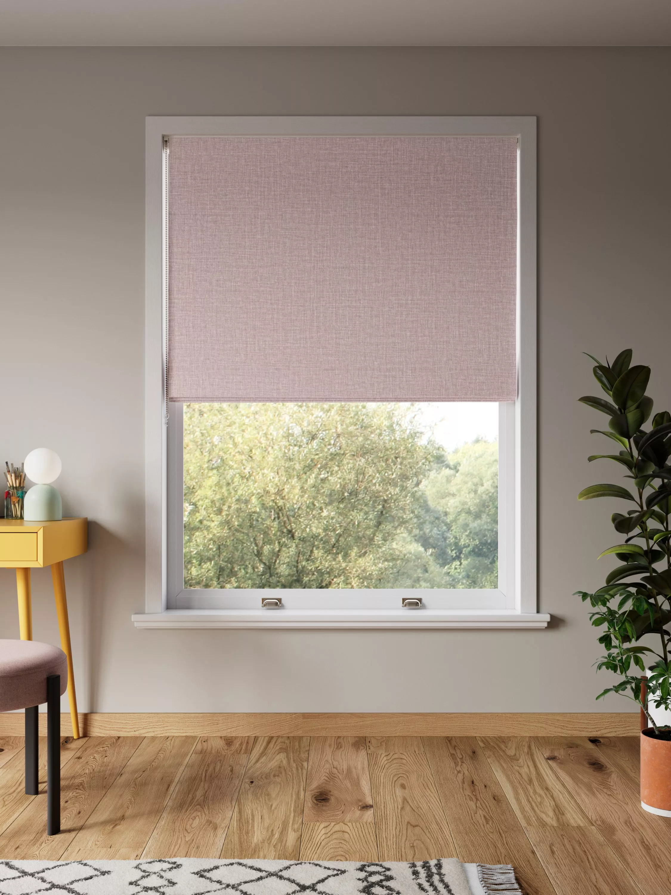 This plain Roman blind's textured design makes it an easy-to-style option. The blackout lining eliminates light so you can get a good night's sleep, it also and gives you complete privacy.