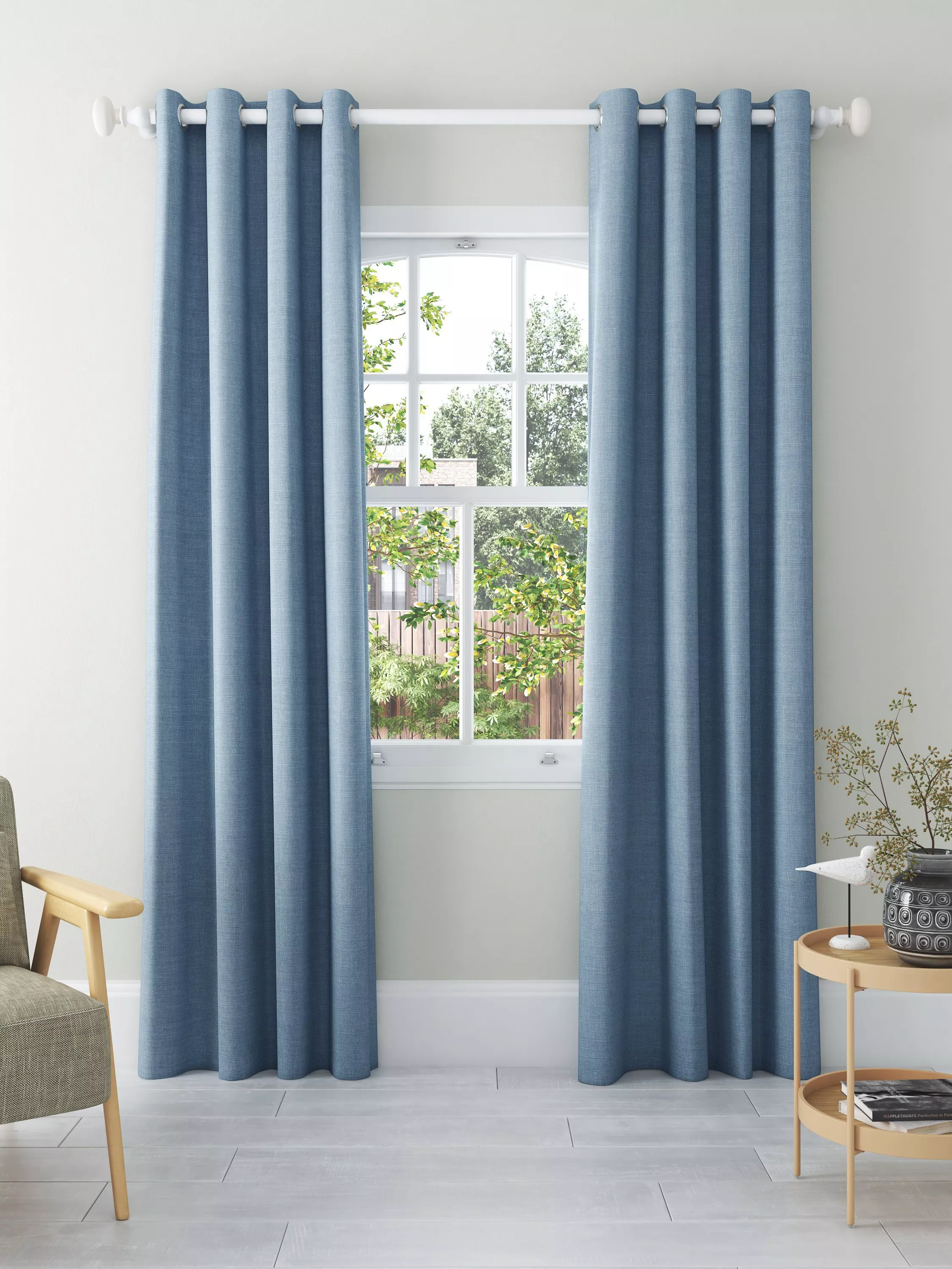 These curtains are plain-coloured with a textured weave that makes them an easy go-to option. The eyelet heading gives them a more contemporary look with large, even folds and the blackout lining both eliminates light and lends a full look to the curtains, improving the drape and enhancing the vibrancy of the pattern. Pair with our matching textured weave tiebacks, available to buy in a pack of two.