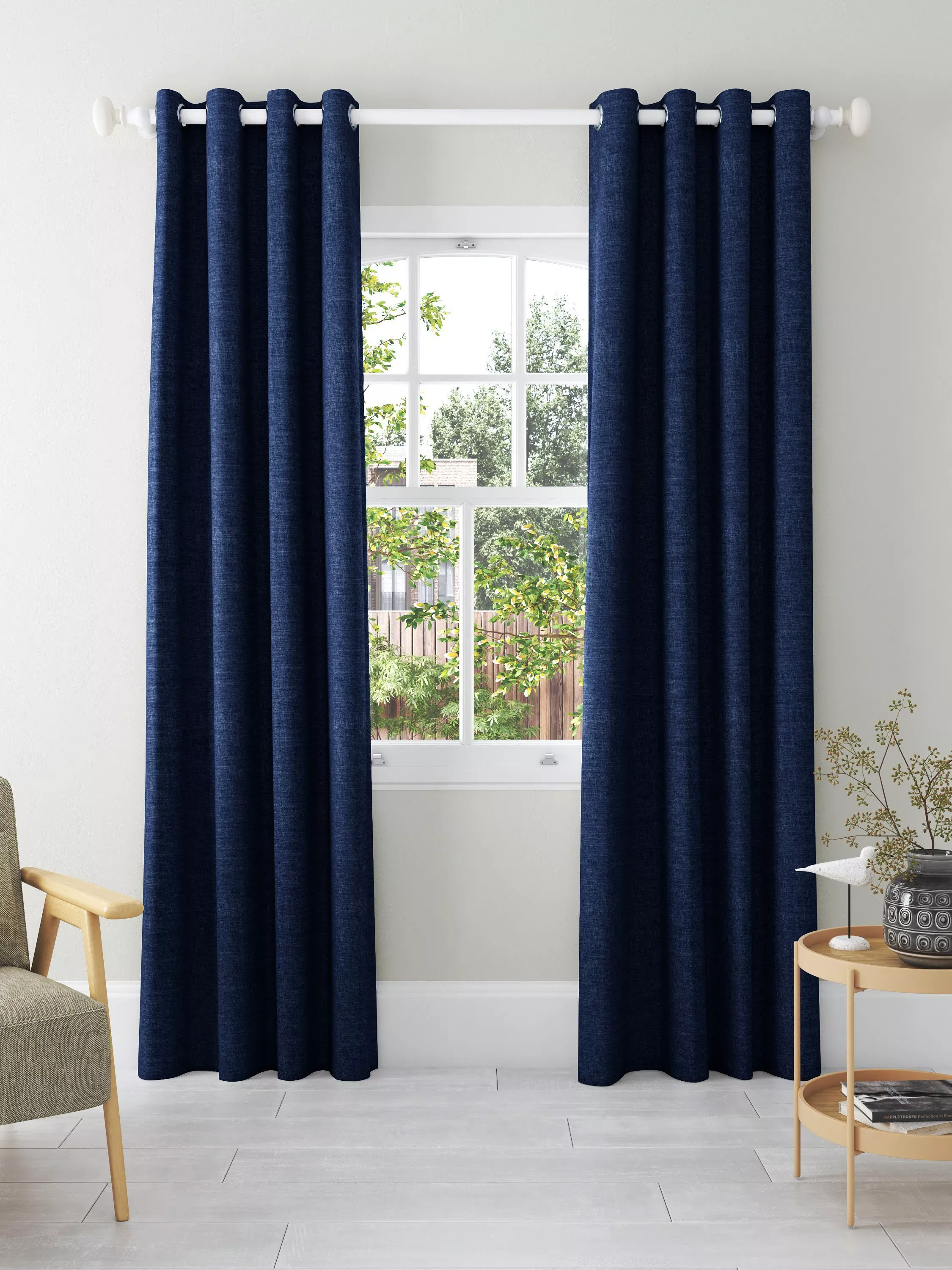 These curtains are plain-coloured with a textured weave that makes them an easy go-to option. The eyelet heading gives them a more contemporary look with large, even folds and the blackout lining both eliminates light and lends a full look to the curtains, improving the drape and enhancing the vibrancy of the pattern. Pair with our matching textured weave tiebacks, available to buy in a pack of two.