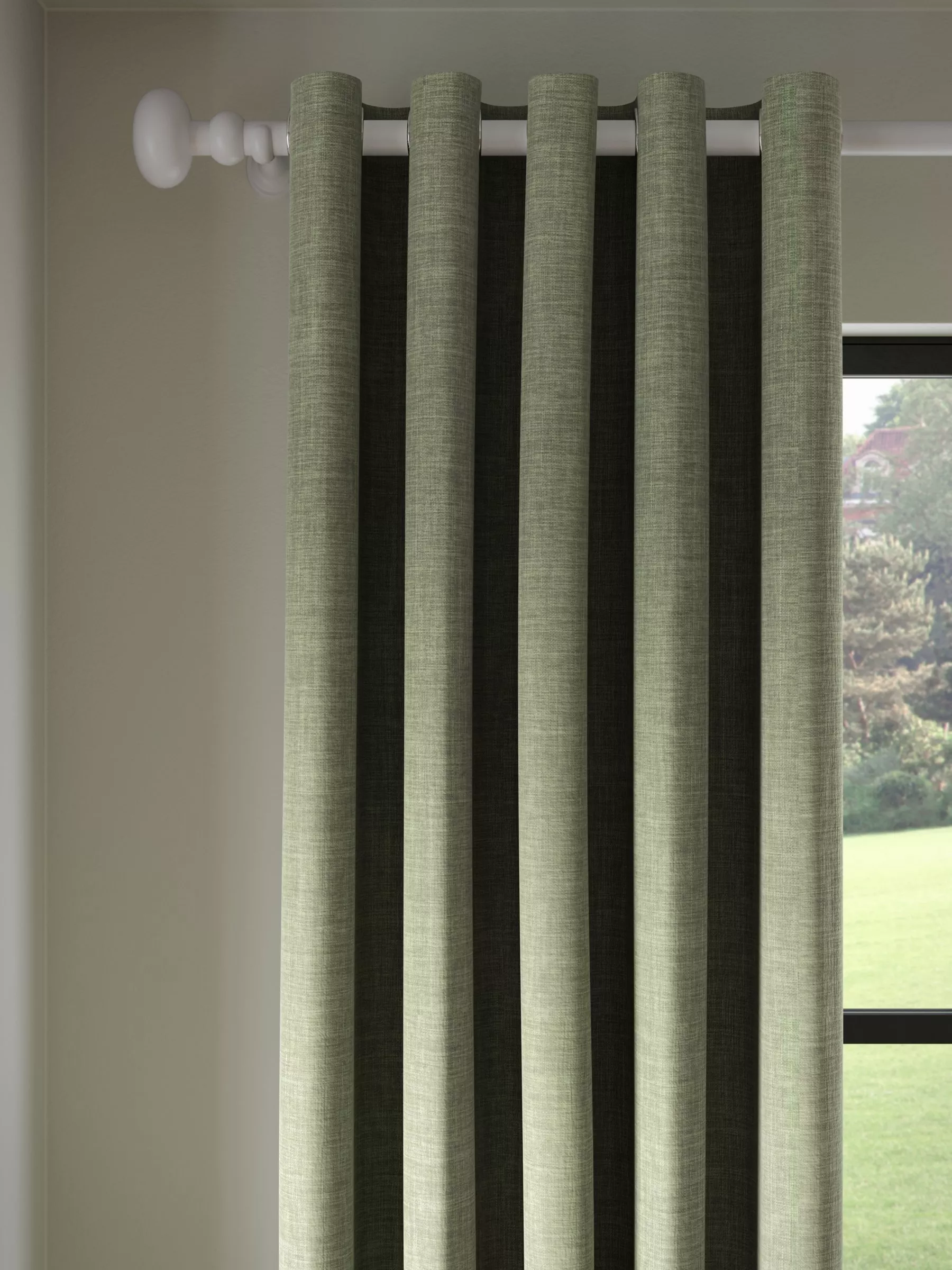 These curtains are plain-coloured with a textured weave that makes them an easy go-to option. The eyelet heading gives them a more contemporary look with large, even folds and the blackout lining both eliminates light and lends a full look to the curtains, improving the drape and enhancing the vibrancy of the pattern. Pair with our matching textured weave tiebacks, available to buy in a pack of two.
