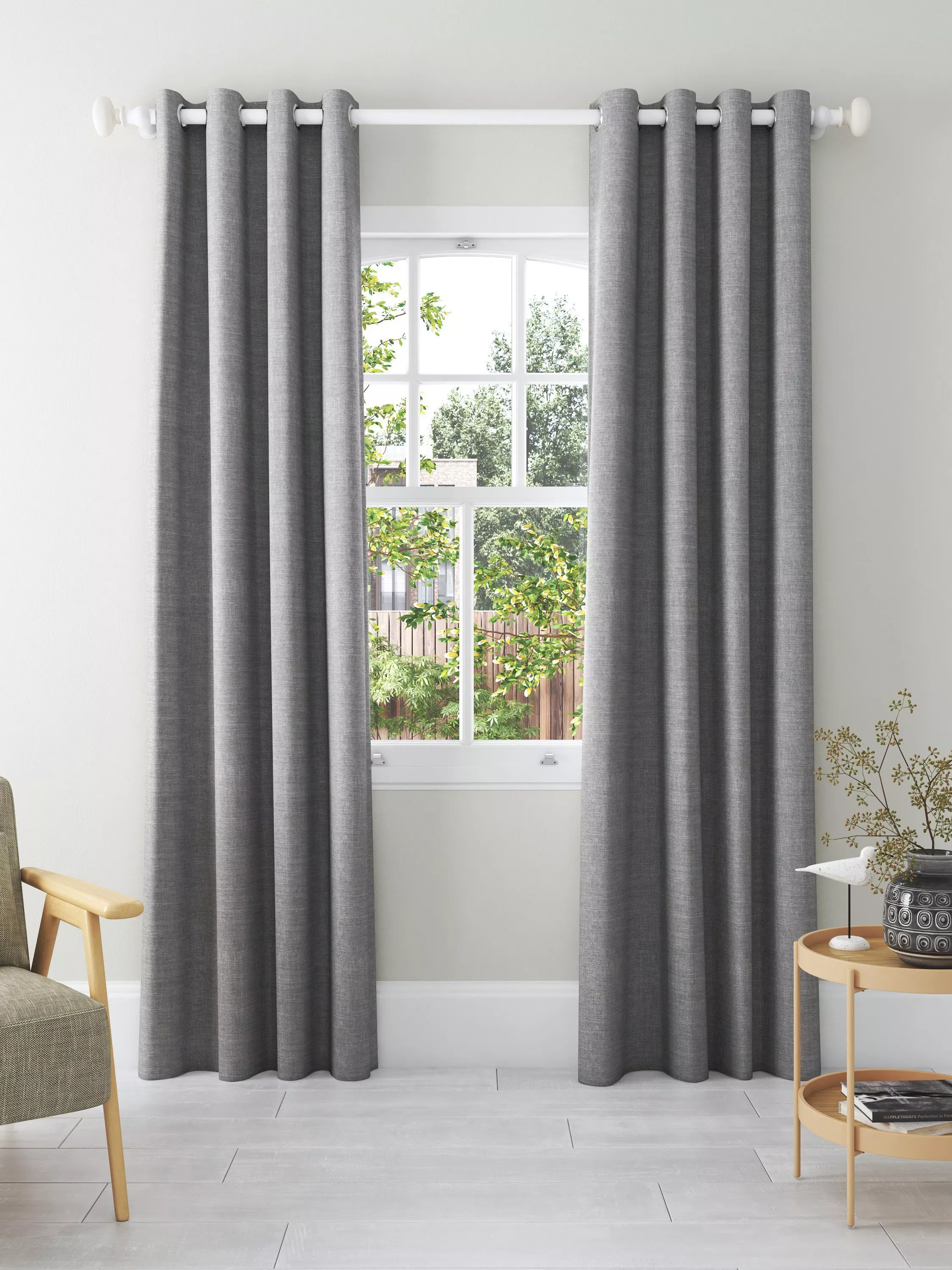 These curtains are plain-coloured with a textured weave that makes them an easy go-to option. The eyelet heading gives them a more contemporary look with large, even folds and the blackout lining both eliminates light and lends a full look to the curtains, improving the drape and enhancing the vibrancy of the pattern. Pair with our matching textured weave tiebacks, available to buy in a pack of two.