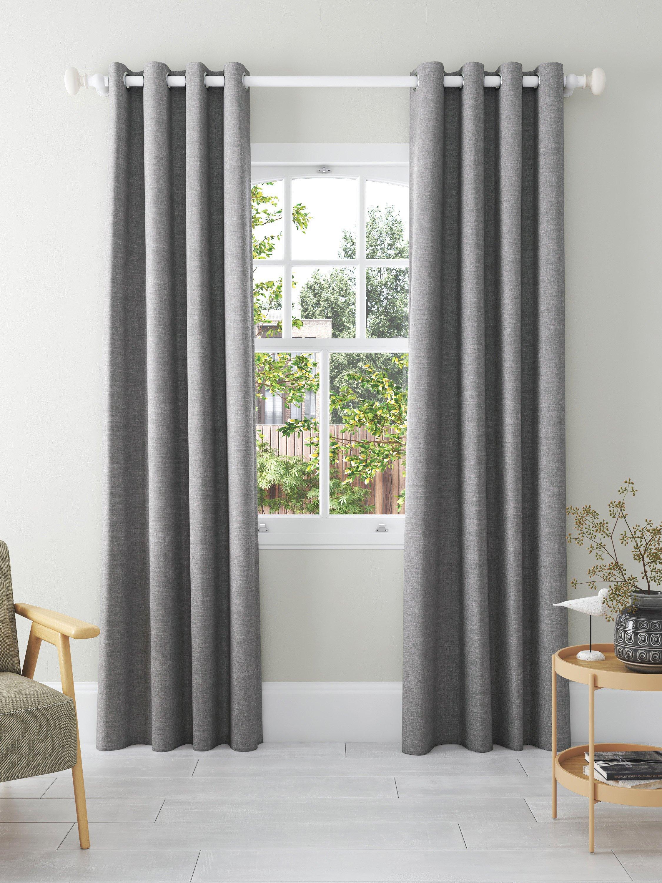 John LewisTextured Weave Pair Blackout Lined Eyelet Curtains, Storm