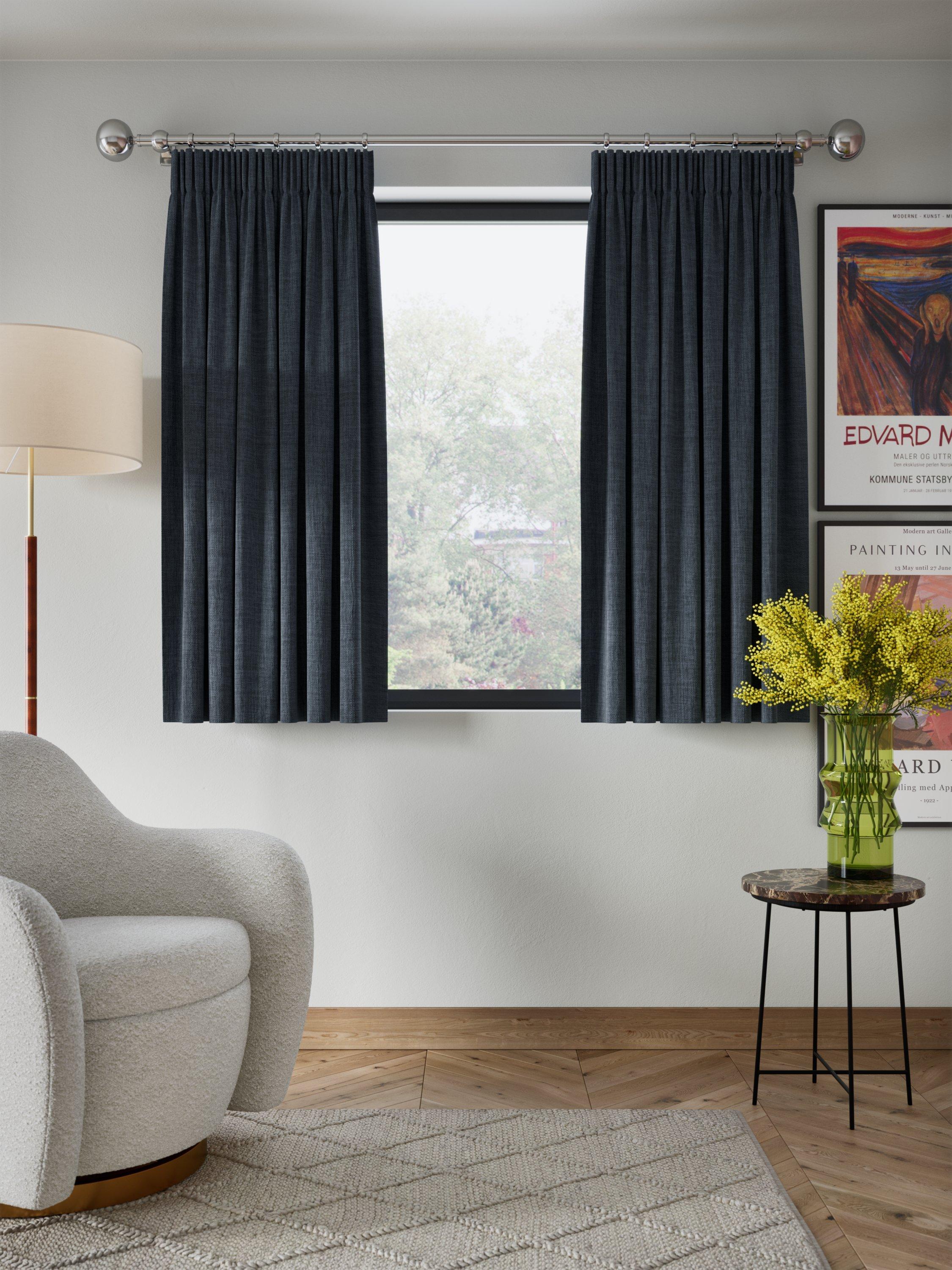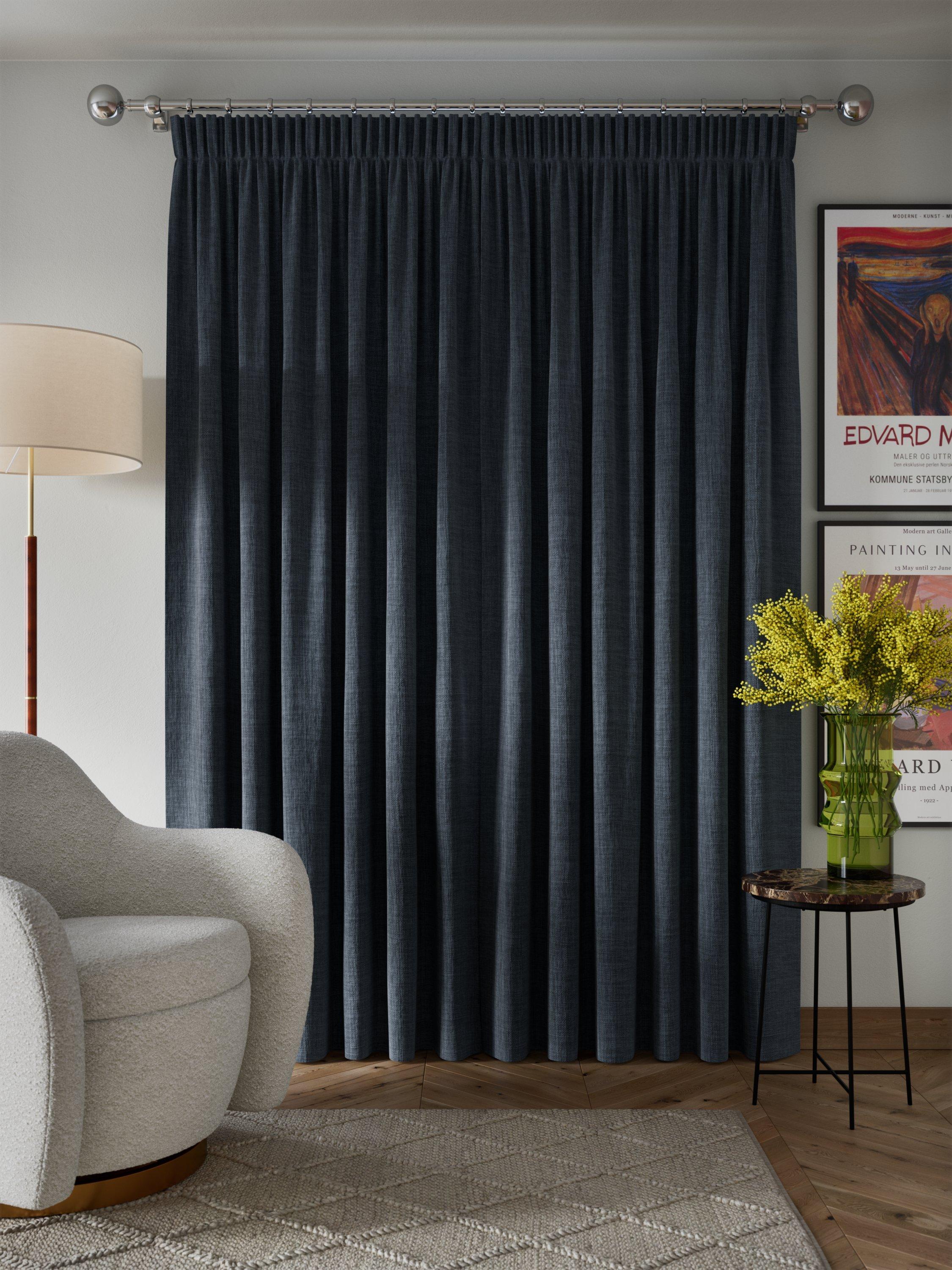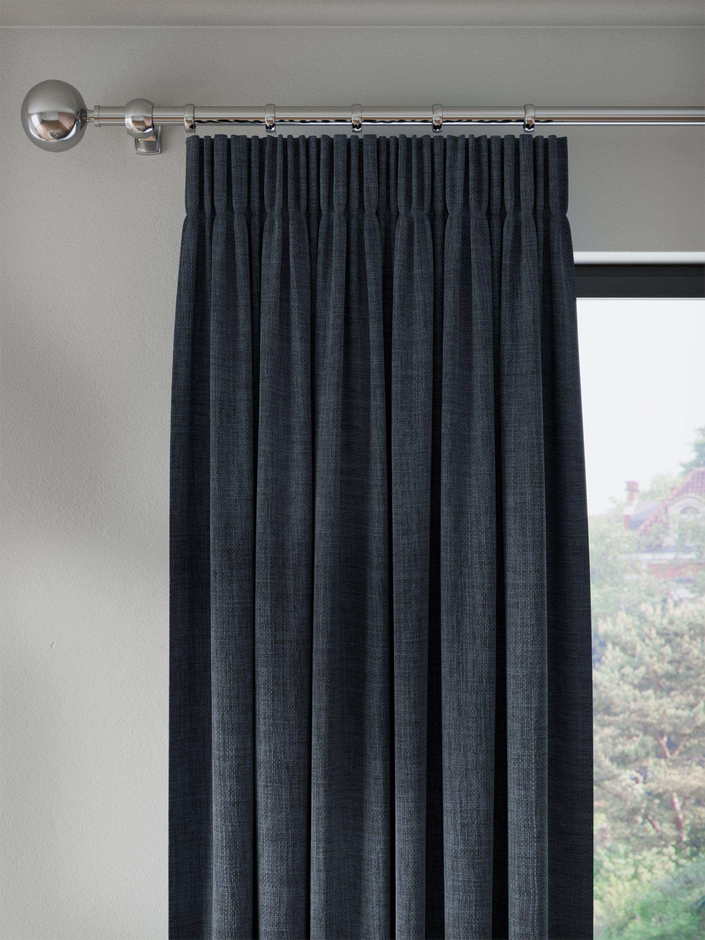 John LewisTextured Weave Pair Blackout Lined Pencil Pleat Curtains, Loch Blue, W228 x Drop 182cm