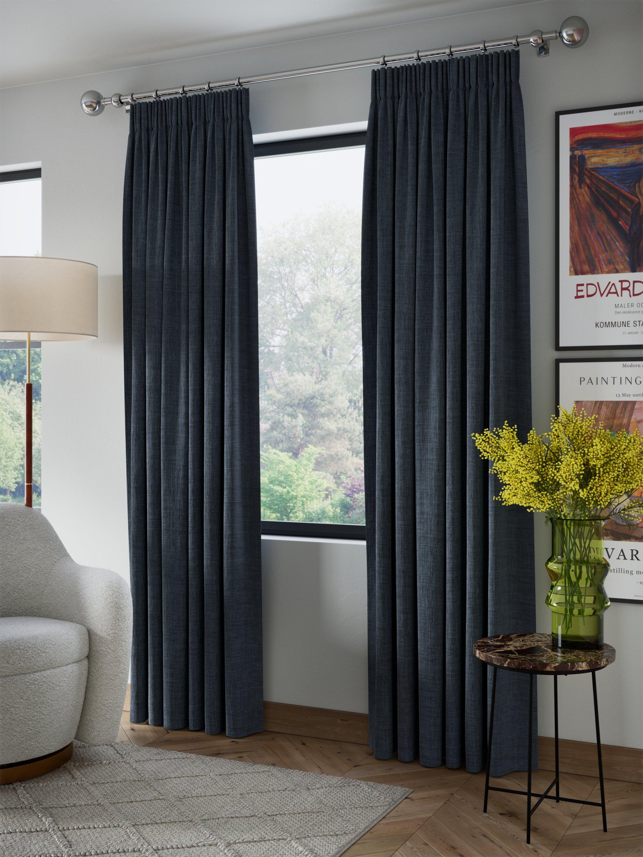 Plain-coloured with a textured weave. The pencil pleat heading creates small, neat folds at the top of the curtain and the blackout lining both eliminates light and lends a full look to the curtains, improving the drape and enhancing the vibrancy of the pattern. Pair with our matching textured weave tiebacks, available to buy in a pack of two.