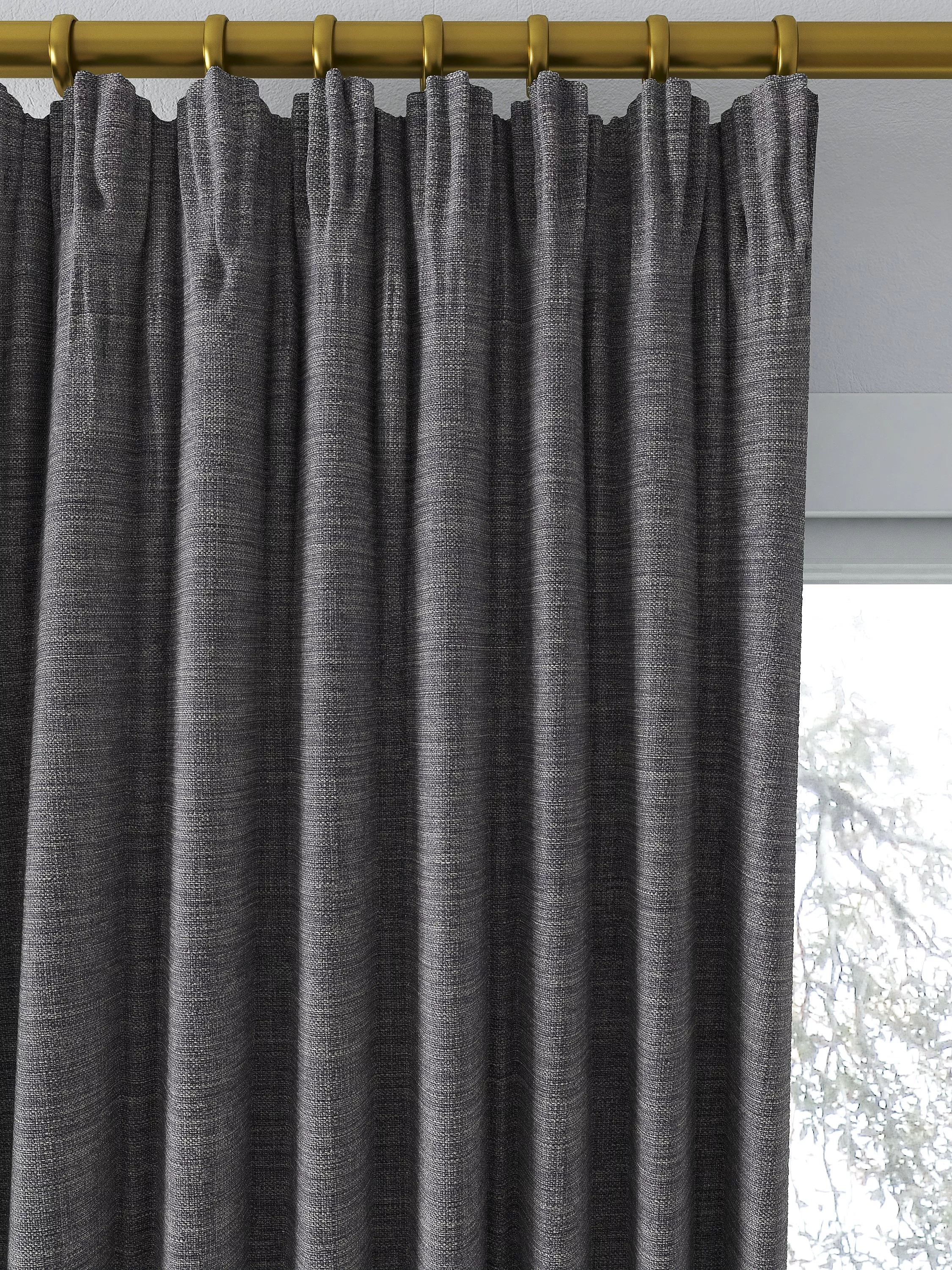 John LewisTextured Weave Pair Blackout Lined Pencil Pleat Curtains, Steel, W167 x Drop 137cm
