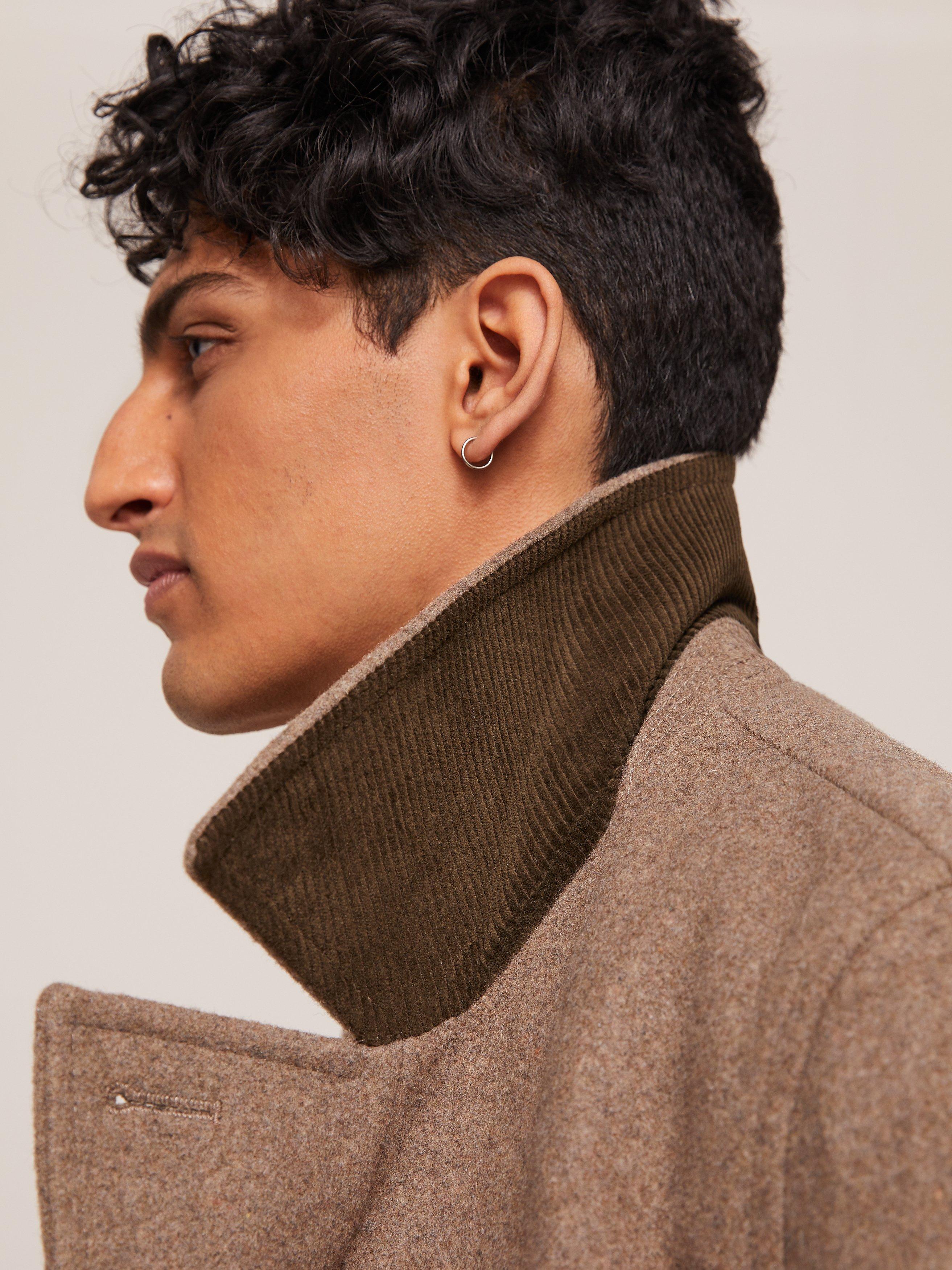 We have sourced an especially heavy compact wool blend, weighing in at 1 kilo per metre. The result is a robust, timeless piece of outerwear with signature details such as our corduroy lined under-collar and chest pockets.