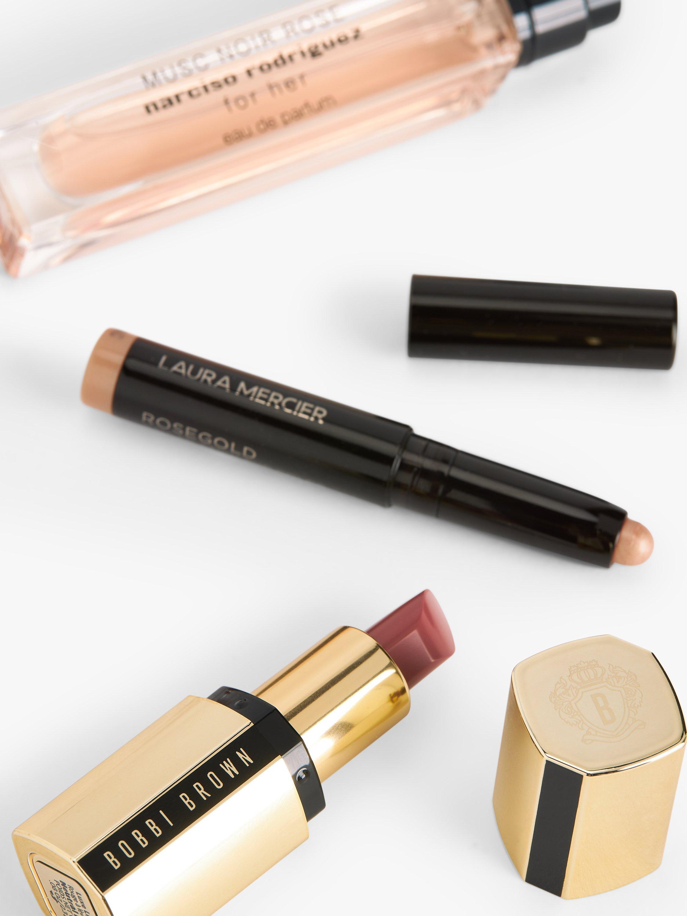 An assortment of 3 deluxe shimmer icons, which include Laura Mercier, Narciso Rodriguez and Bobbi Brown.