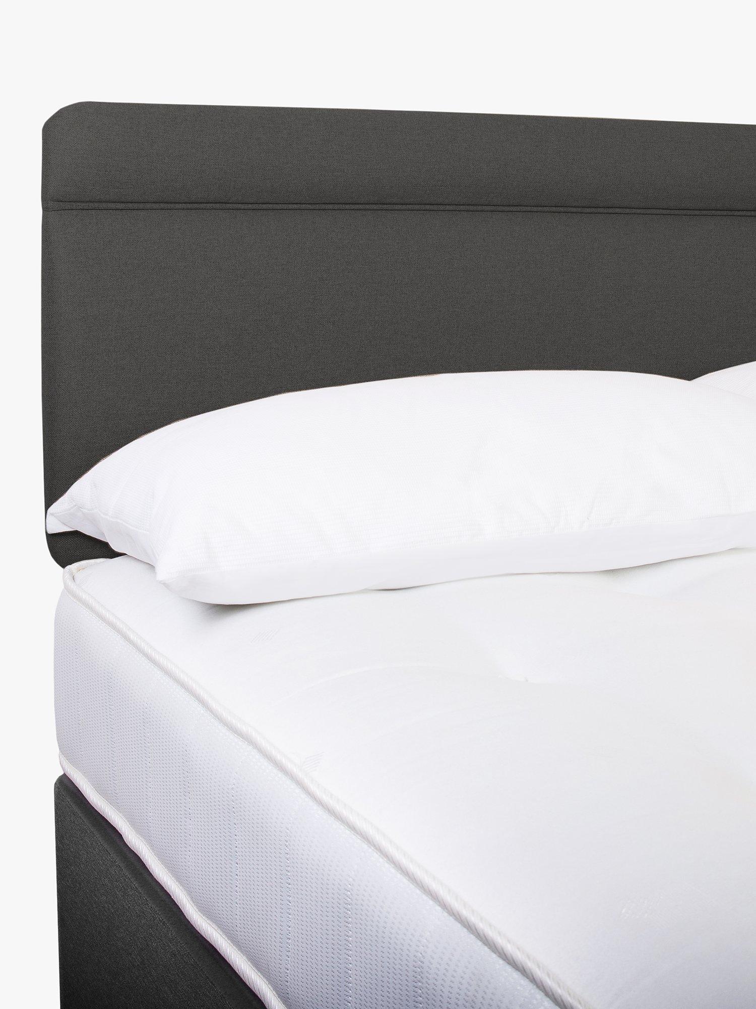 Made in the UK, our Theale headboard has a simple design with curved edges and a seam detail across the top. It's a modern and padded attachment for your upholstered divan base and the sturdy wooden slats mean you can fit it easily at your desired height.