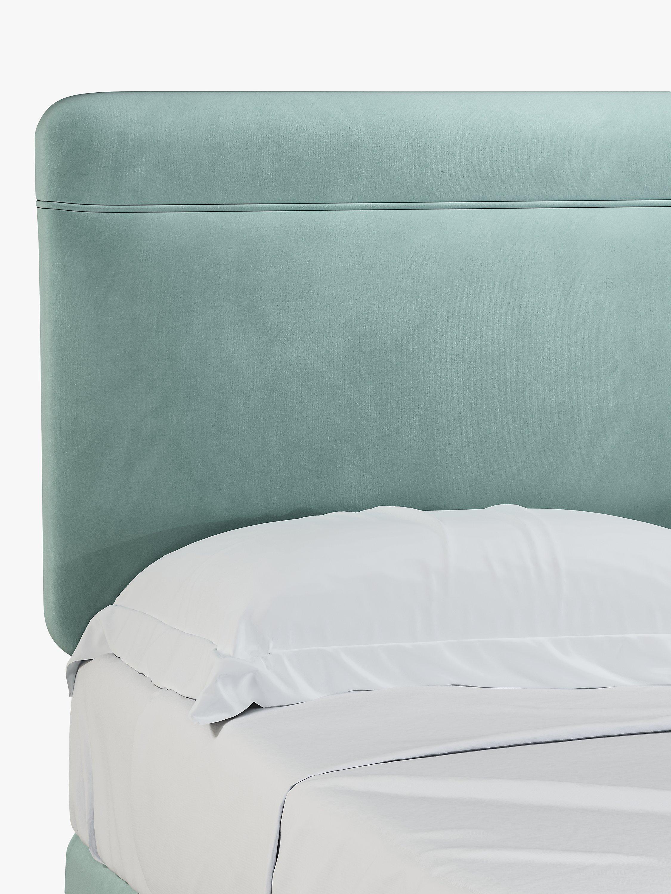 Made in the UK, our Theale headboard has a simple design with curved edges and a seam detail across the top. It's a modern and padded attachment for your upholstered divan base and the sturdy wooden slats mean you can fit it easily at your desired height.