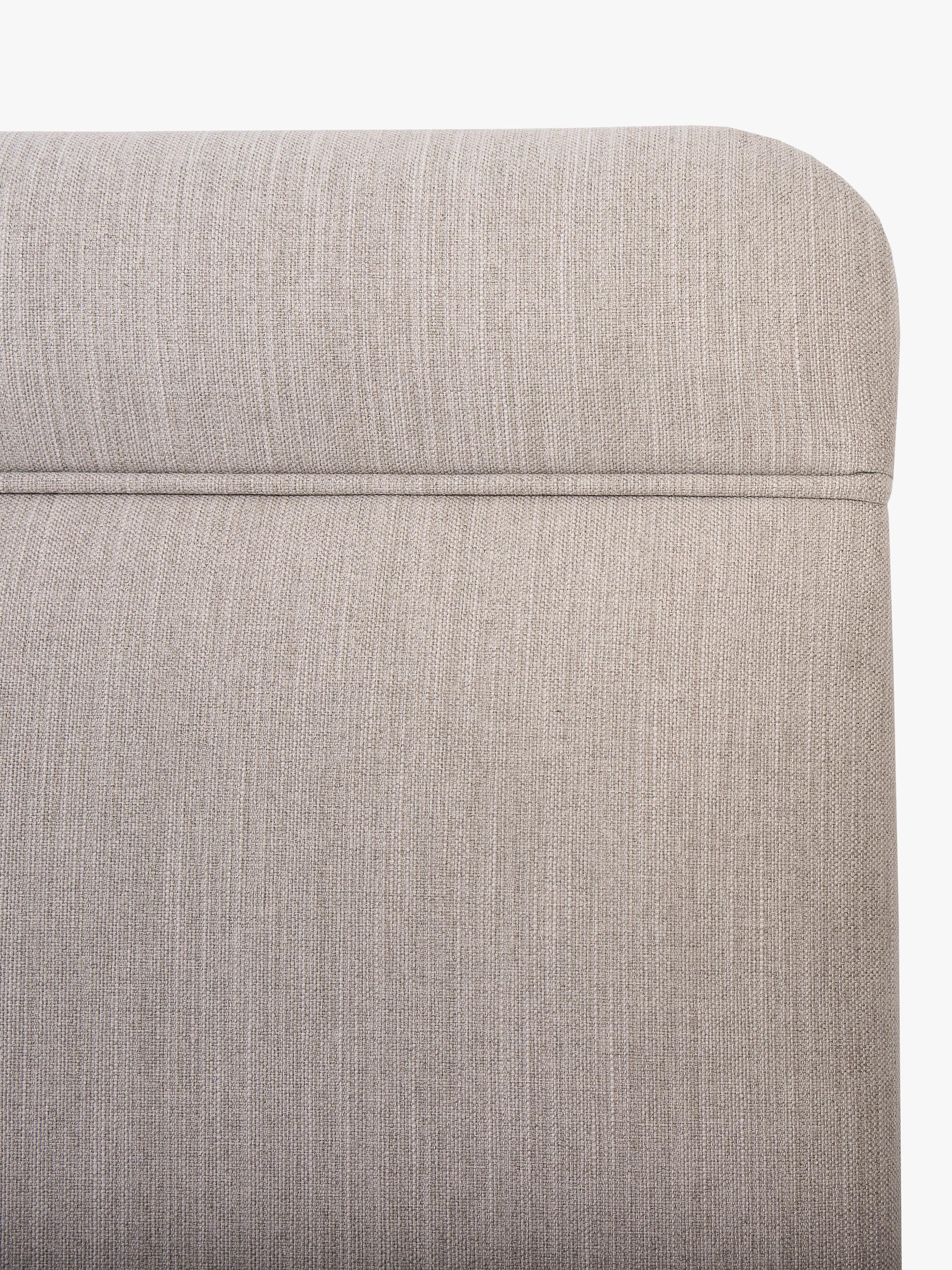 Made in the UK, our Theale headboard has a simple design with curved edges and a seam detail across the top. It's a modern and padded attachment for your upholstered divan base and the sturdy wooden slats mean you can fit it easily at your desired height.
