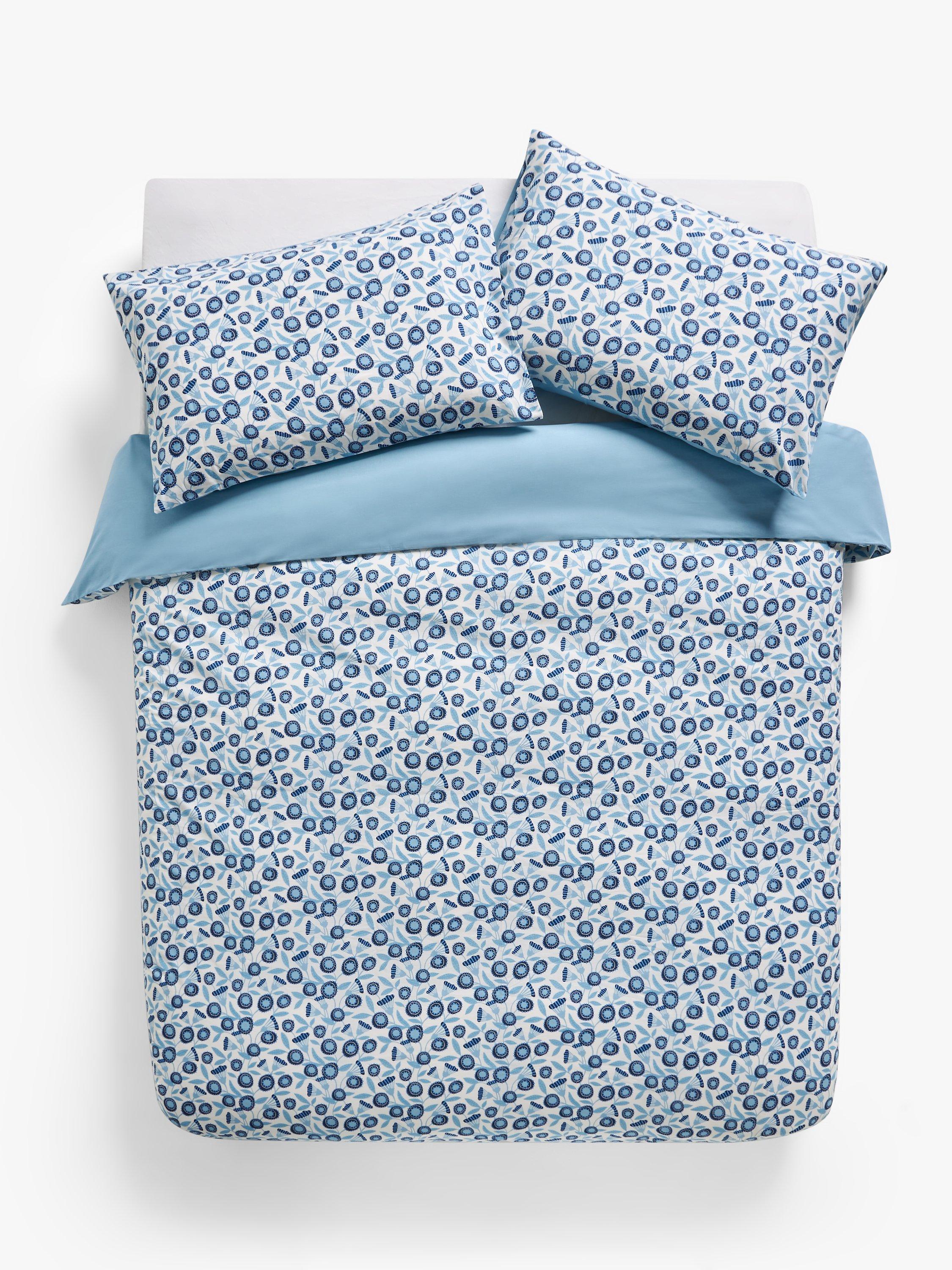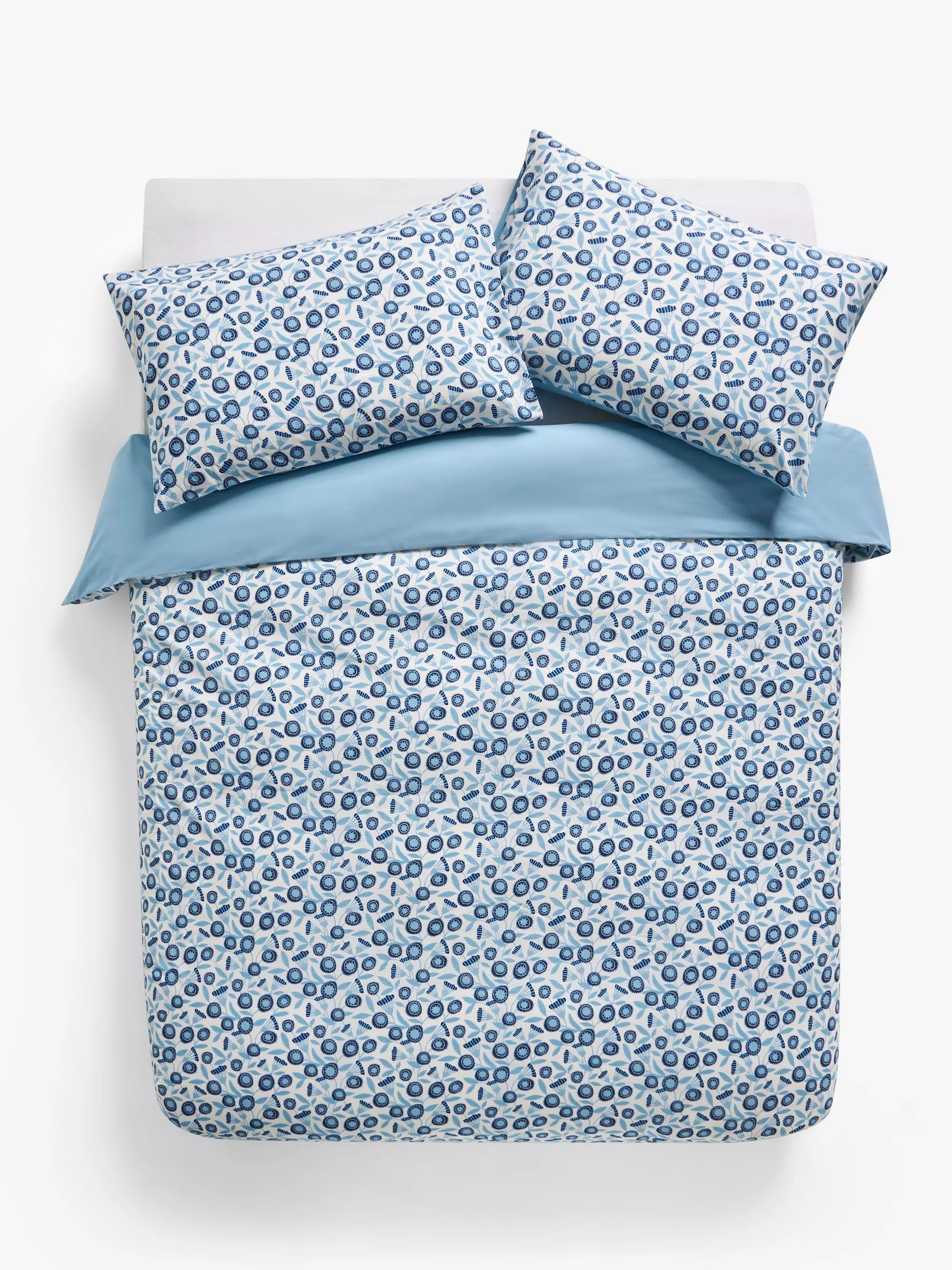 Thora is a pretty Scandi floral in fresh shades of blue and with a plain blue reverse.