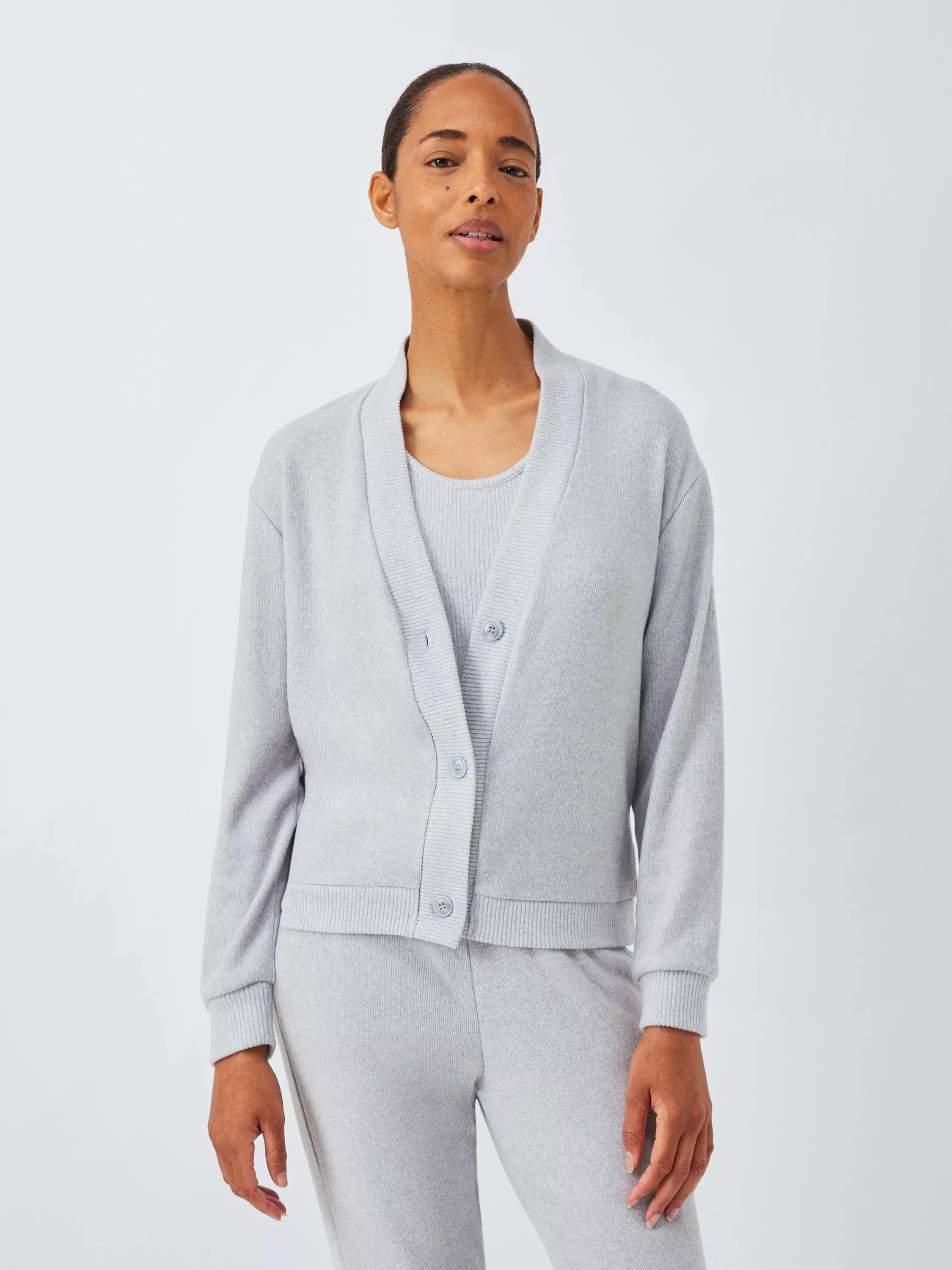 A one and done outfit for your next date with the sofa, this lounge set consists of a ribbed vest top, cardigan, and side stripe bottoms.