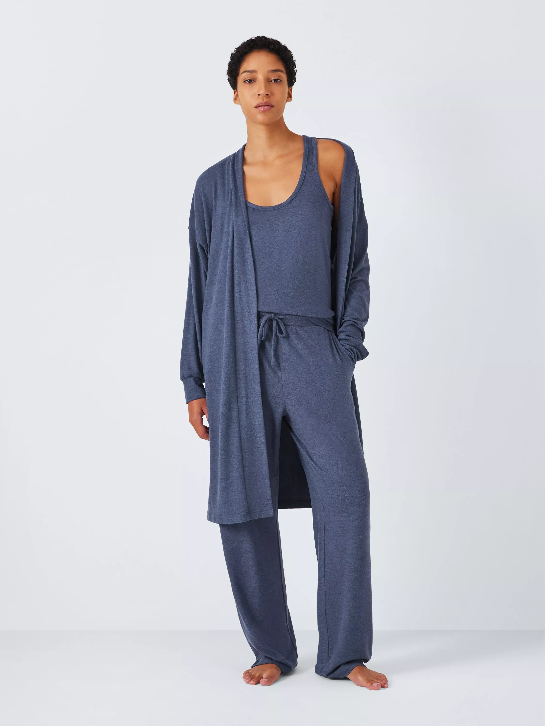 A one-and-done outfit for your next date with the sofa, this lounge set consists of a vest top, longline cardigan, and jersey bottoms.