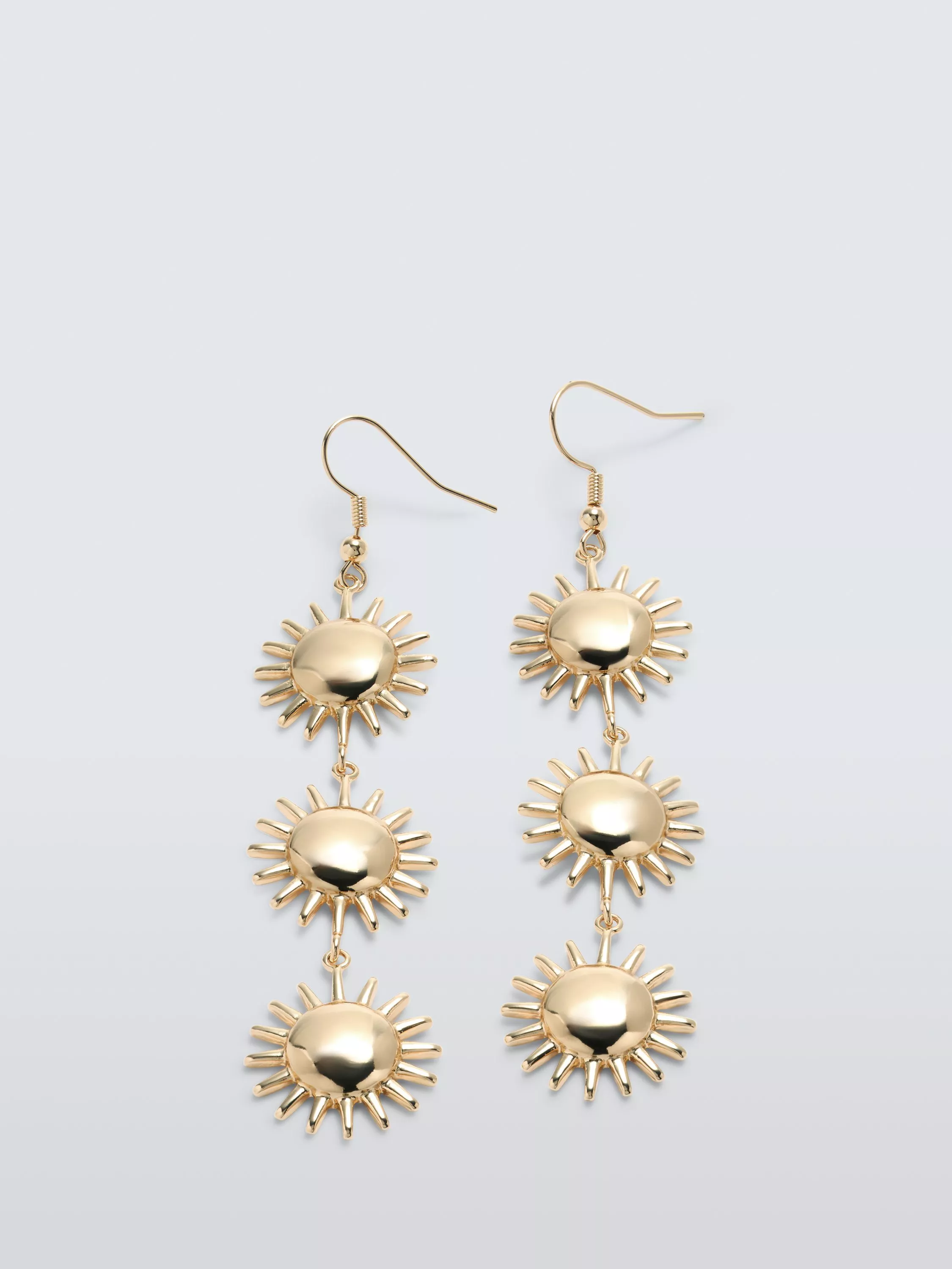These highly polished three suns long drop earrings add some quirky style to your outfit.