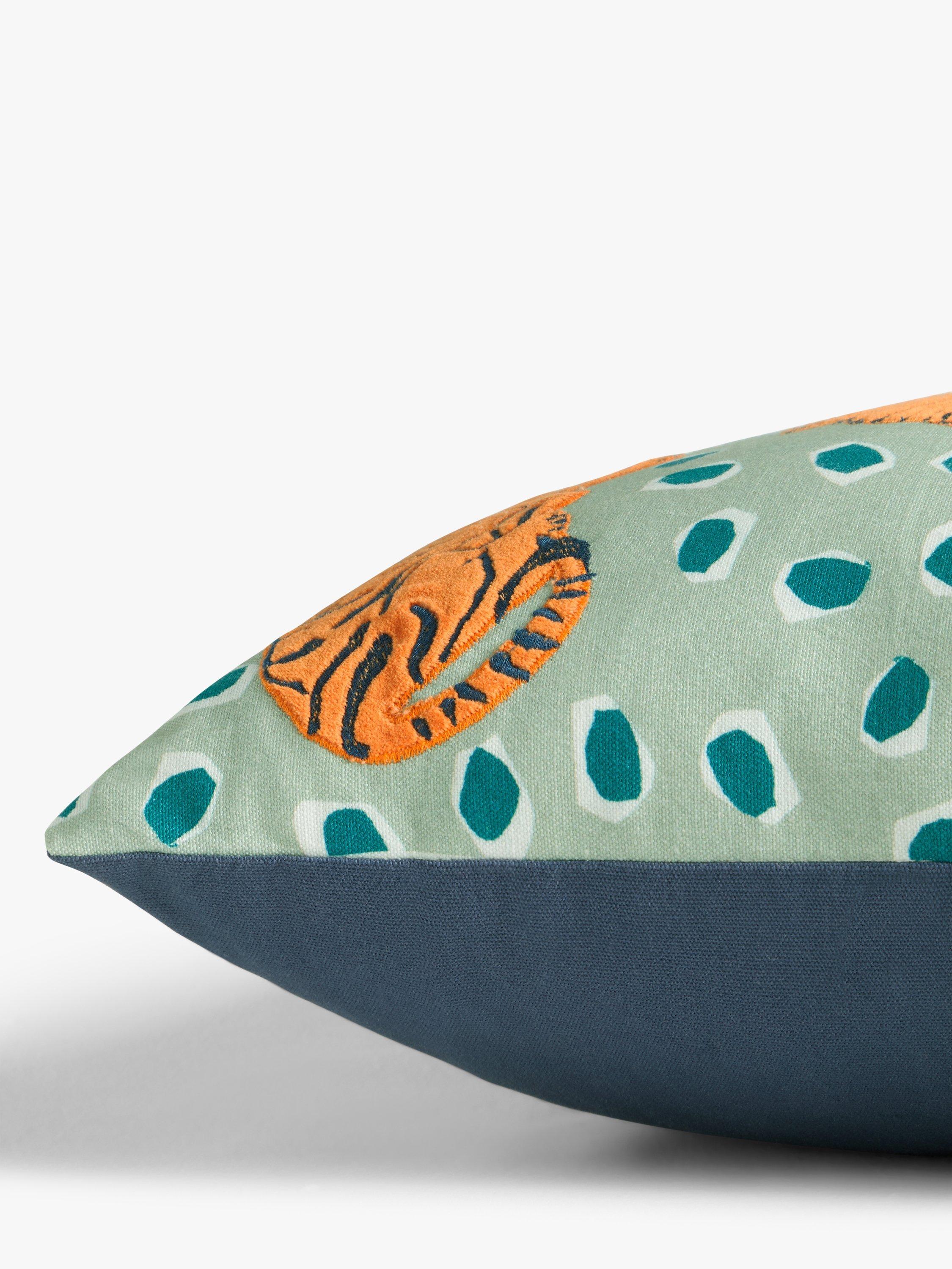 Digital printing, embroidery and applique come together to create this contemporary and quirky cushion - an easy to way to character and colour to your sofa or bed.