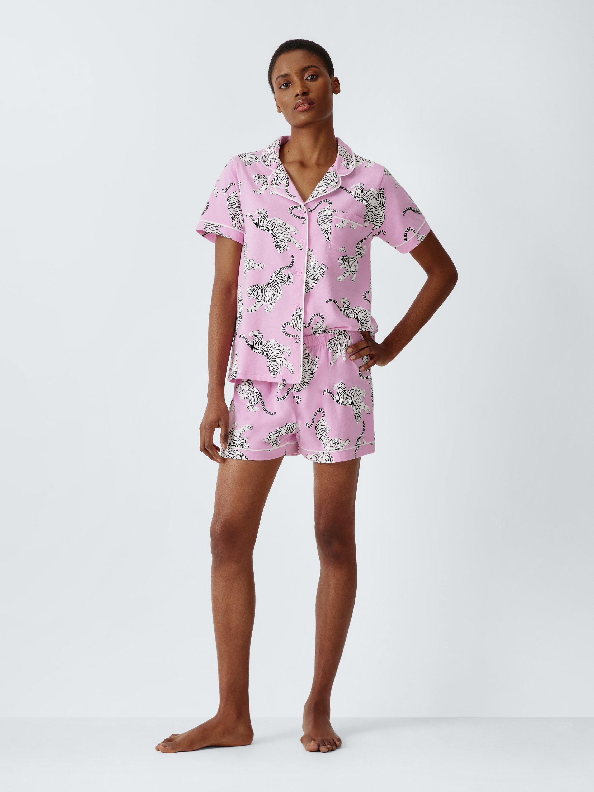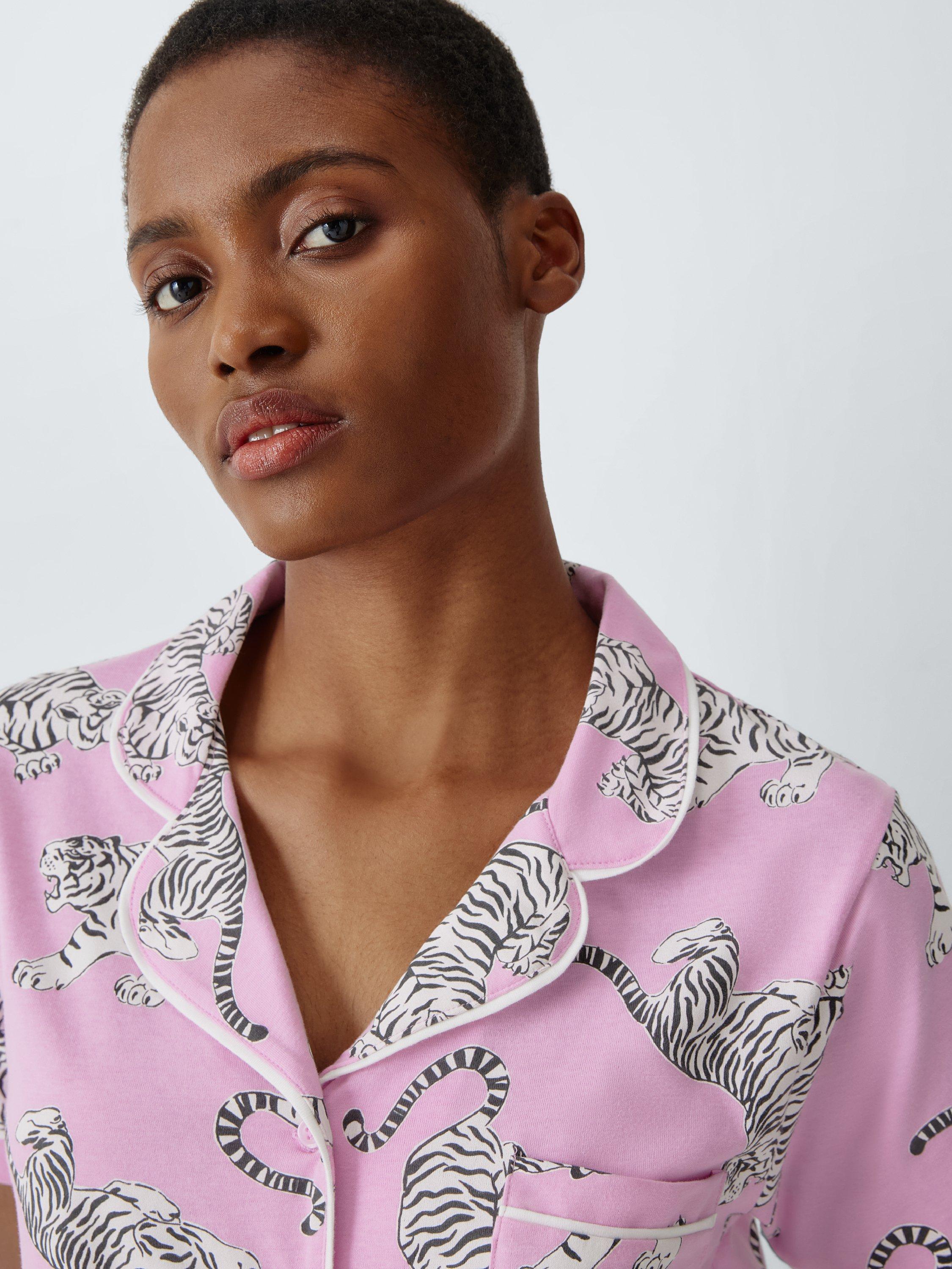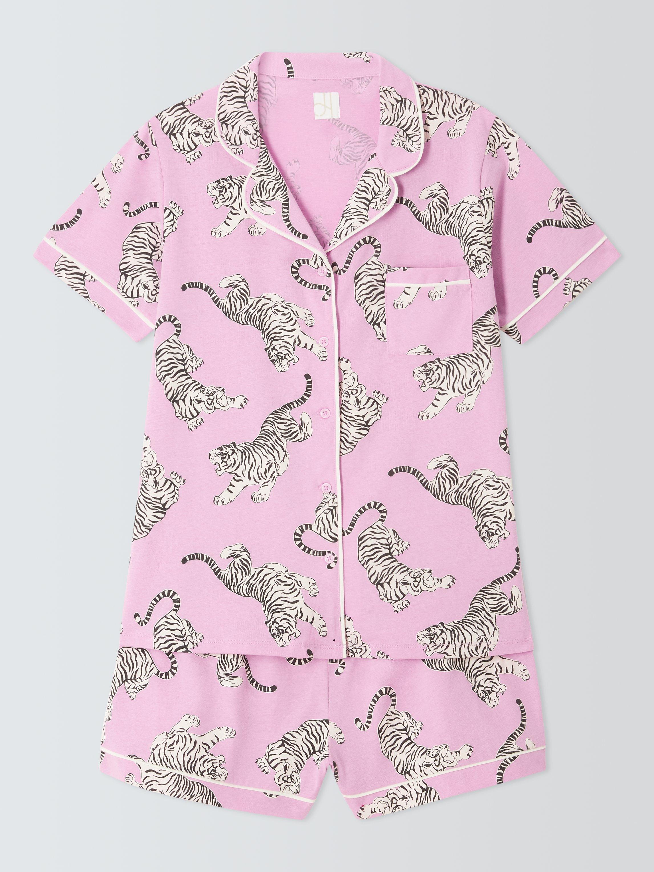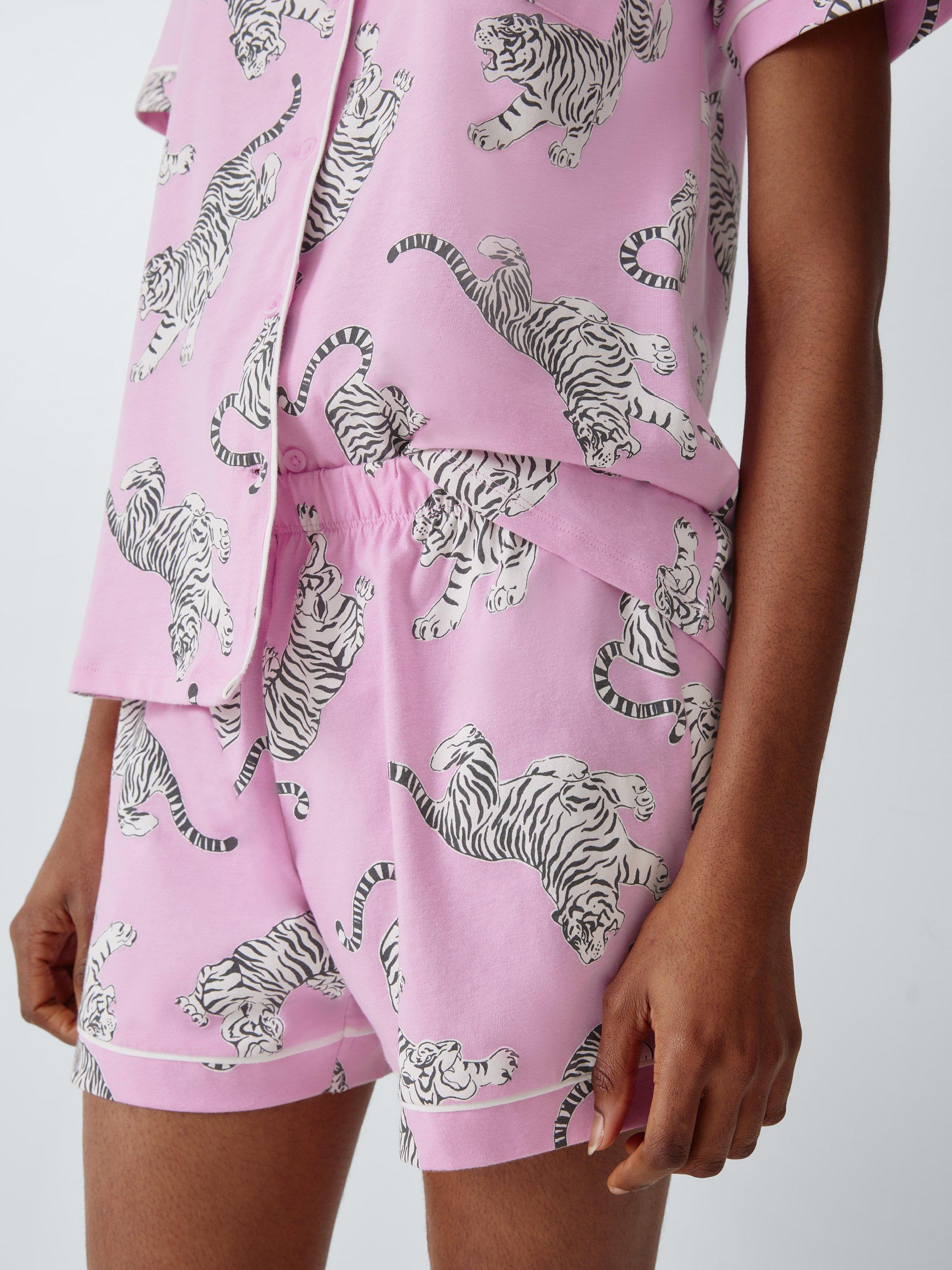 A classic, short pure cotton pyjama set with a wild tigers print throughout.