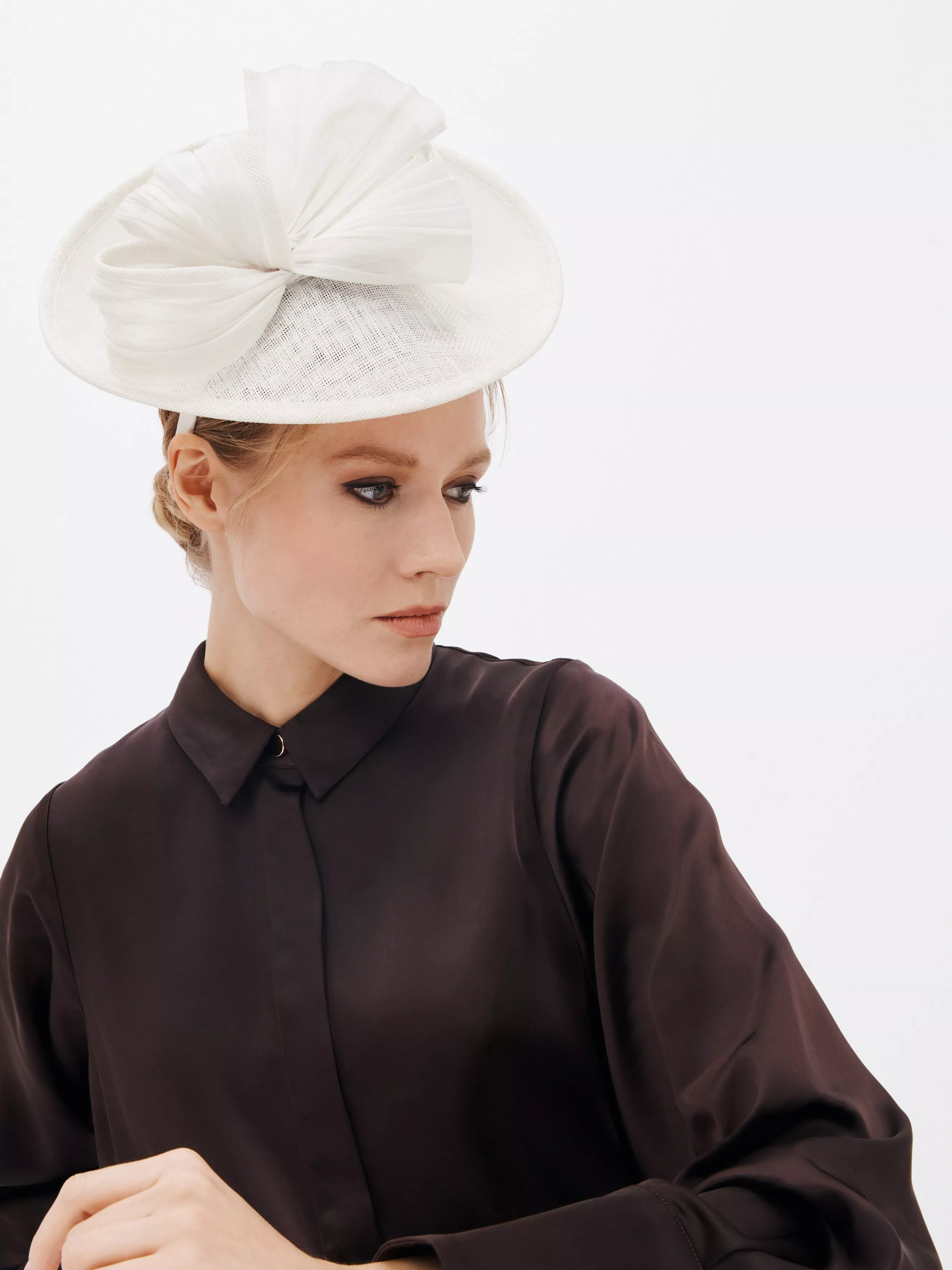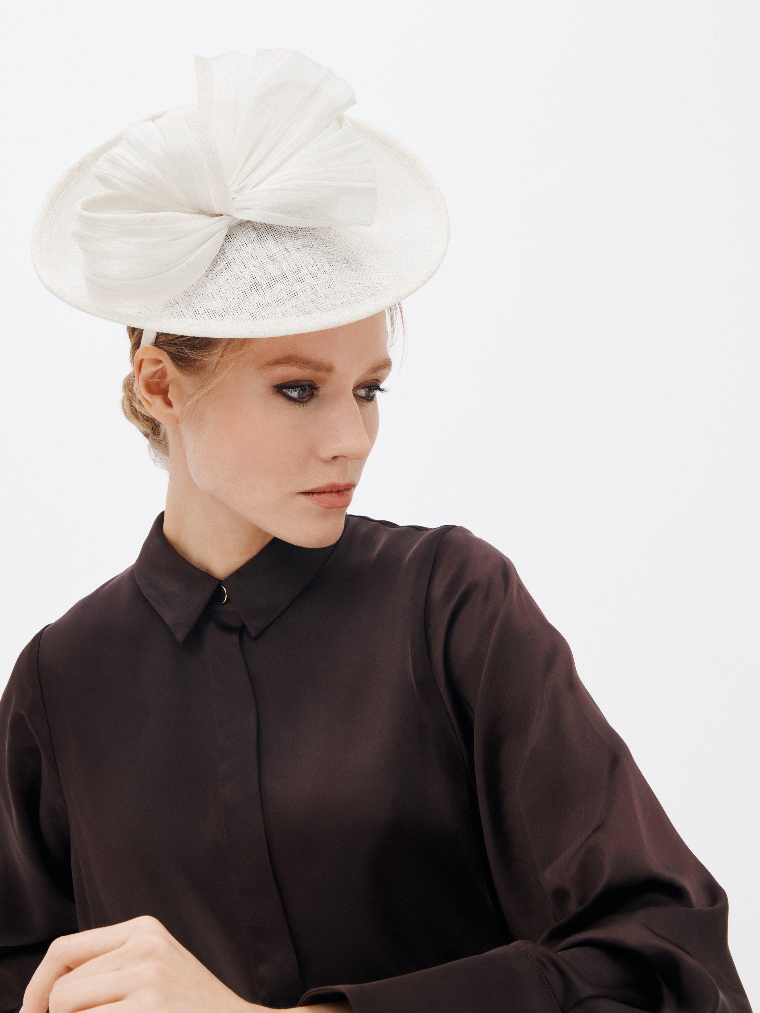 A sophisticated fascinator to complement a formal outfit, this occasionwear comes with a beautiful textured bow accent and sits on a headband for a comfortable fit.
