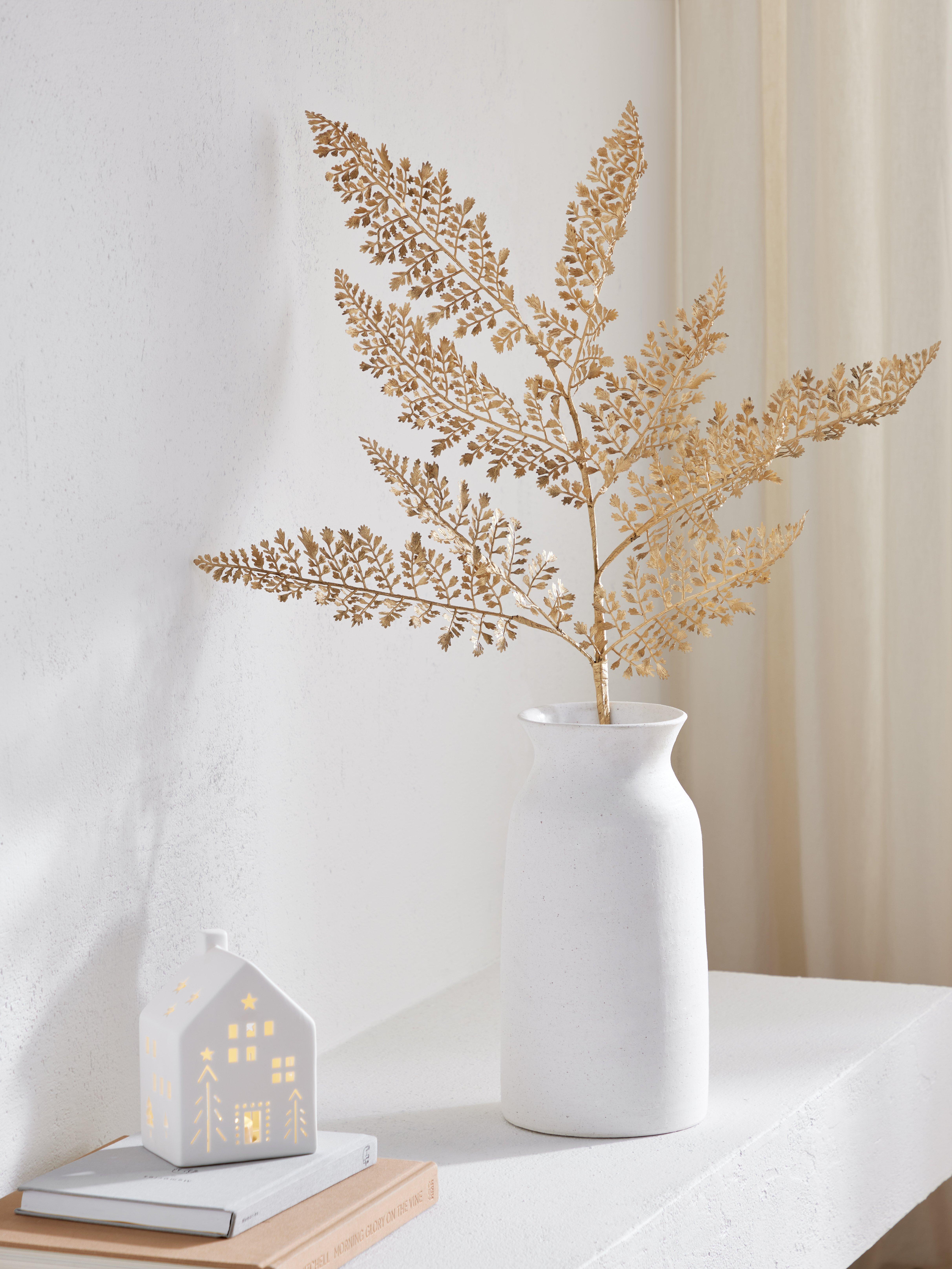 Shimmering gold leaves on slender stems to bring elegant sparkle and refined texture to wreaths, bouquets, and festive décor.