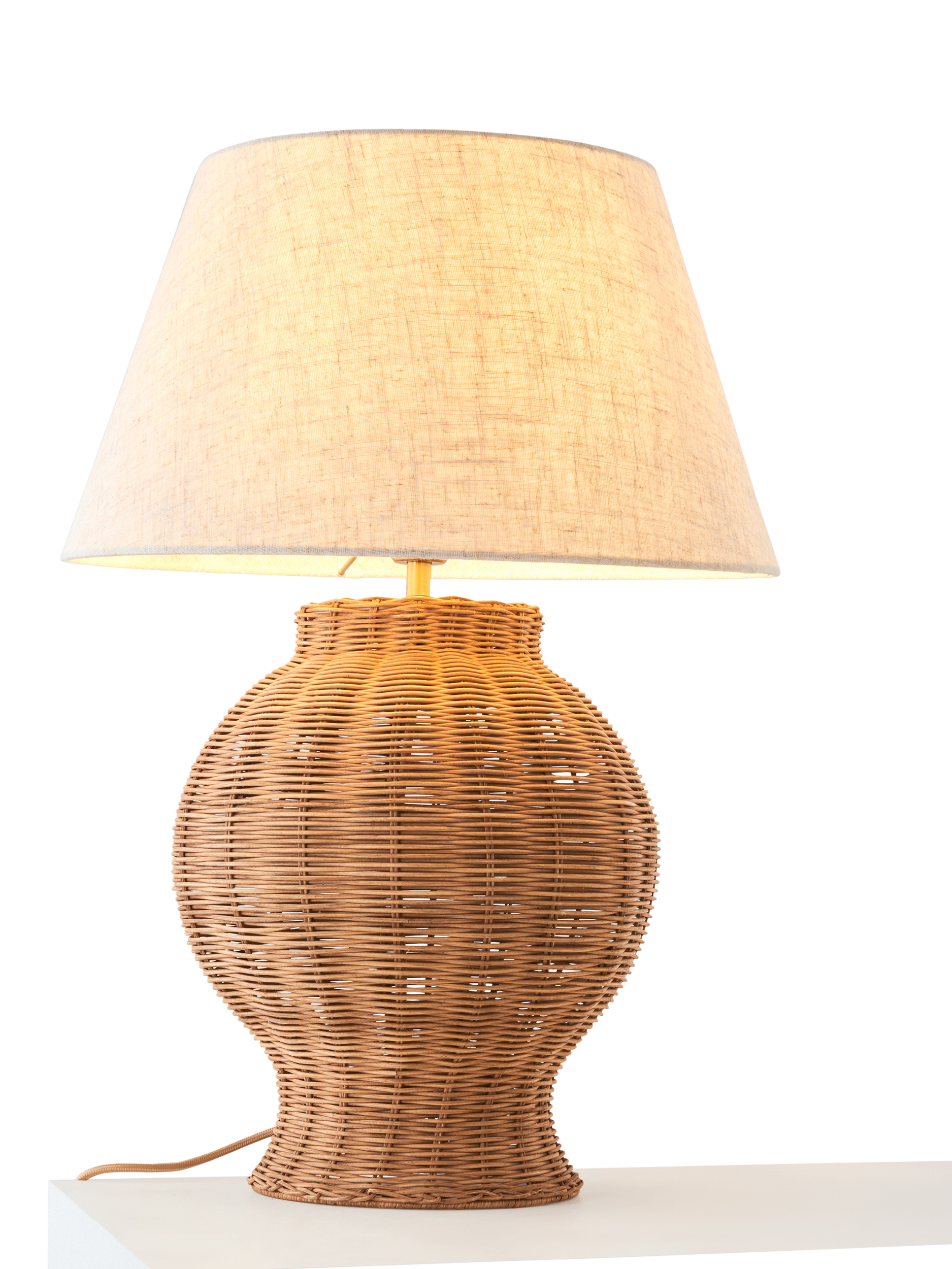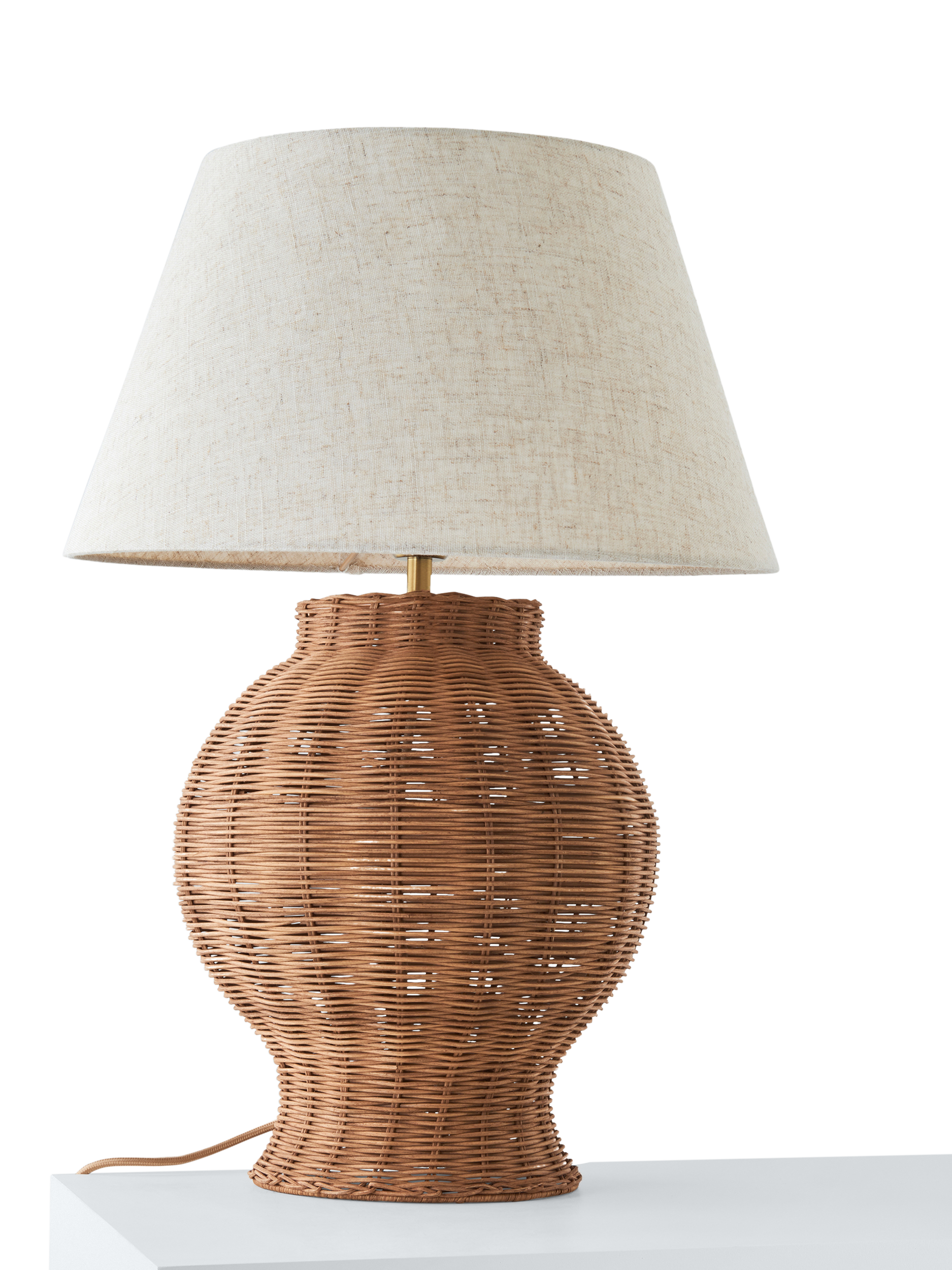 Our Tisse woven rattan table lamp adds texture and a gentle, natural touch to your space with its chestnut brown tone and warm brass detailing. Each piece is skillfully handmade while staying true to the beautiful woven design.